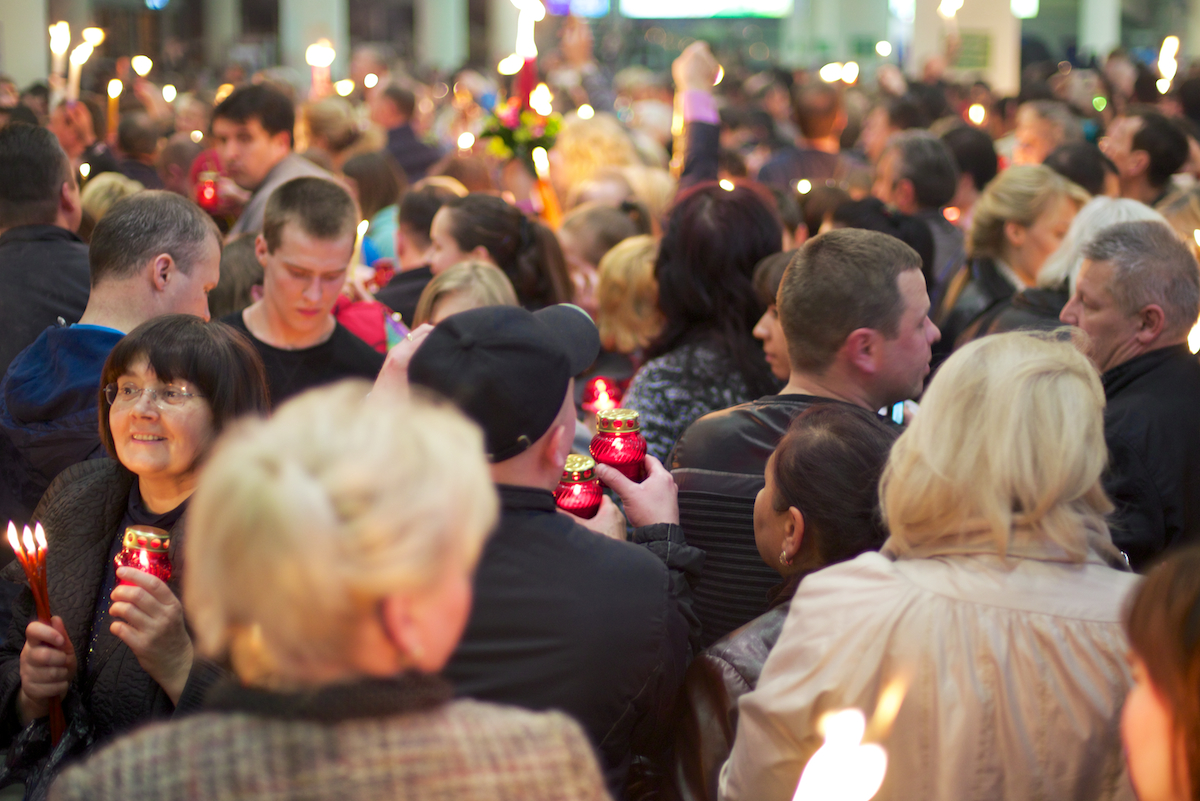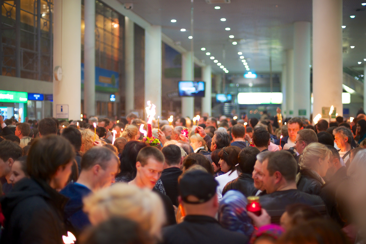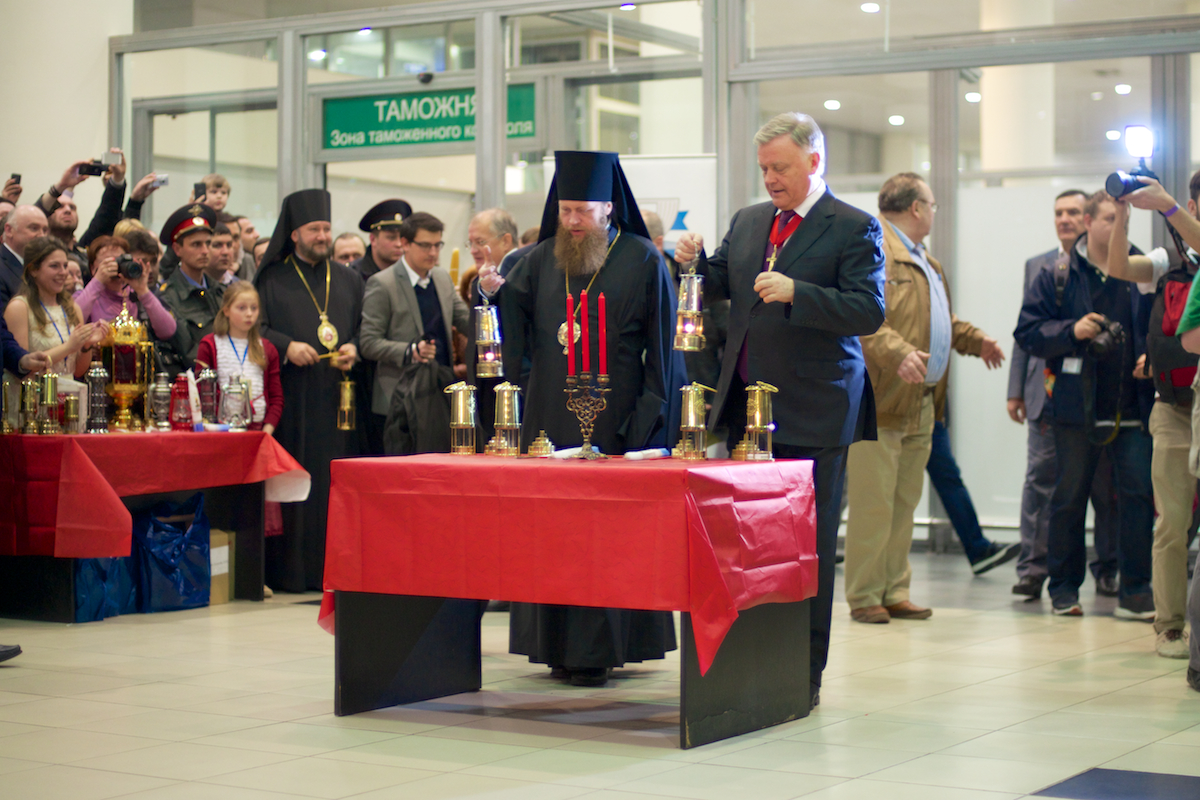За несколько часов до прибытия рейса в международном терминале В аэропорта Внуково собрались представители епархий Русской Православной Церкви, а также все желающие прикоснуться к Благодатному огню, снисходящему в храме Гроба Господня в Иерусалиме. Получить Благодатный огонь со Святой земли смогли и пассажиры, оказавшиеся в момент встречи делегации из Иерусалима в зале ожидания терминала.