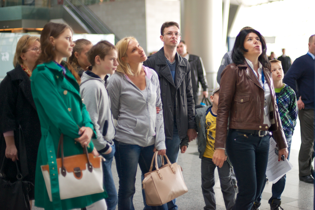 Представители аэропорта встретили экскурсантов в зале вылета возле стоек регистрации авиакомпании «Трансаэро». После приветственного вступительного слова и краткого рассказа об аэропорте Внуково, экскурсия продолжилась в зале вылета, где гости осмотрели острова регистрации на рейсы авиакомпании «Трансаэро» и ознакомились с процессом регистрации пассажиров и багажа. Далее экскурсанты прошли в сектор внутренних рейсов посадочной галереи, где ознакомились с сервисной инфраструктурой.