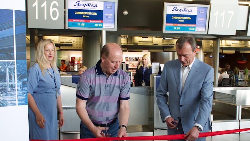 «Я поздравляю наших пассажиров, отправляющихся в путешествие в наш Симферополь, на борту авиакомпании „Якутия“. По собственному опыту знаю, что Крым — одно из самых красивых и комфортных мест отдыха не только в России, но и в мире. Давний партнер аэропорта Внуково — авиакомпания „Якутия“ вместе с нами прошла путь технического переоснащения. Аэропорт Внуково строил новый терминал, реконструировал взлетно-посадочные полосы, а авиакомпания занималась обновлением парка самолетов. Сегодня вы летите на новом самолете, Boeing 737 и, что приятно, самолет почти на 100 % заполнен. Мы надеемся, что вам понравится полет вместе с „Якутией“ из полностью обновленного аэропорта Внуково», — сказал на открытии рейса В. Е. Александров.