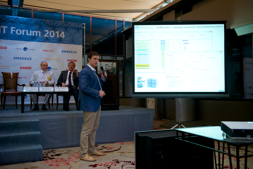 С докладом «Информационные технологии как действенный инструмент предотвращения задержек рейсов» 27 мая выступил заместитель ИТ-директора международного аэропорта «Внуково» Виталий Трошкин.