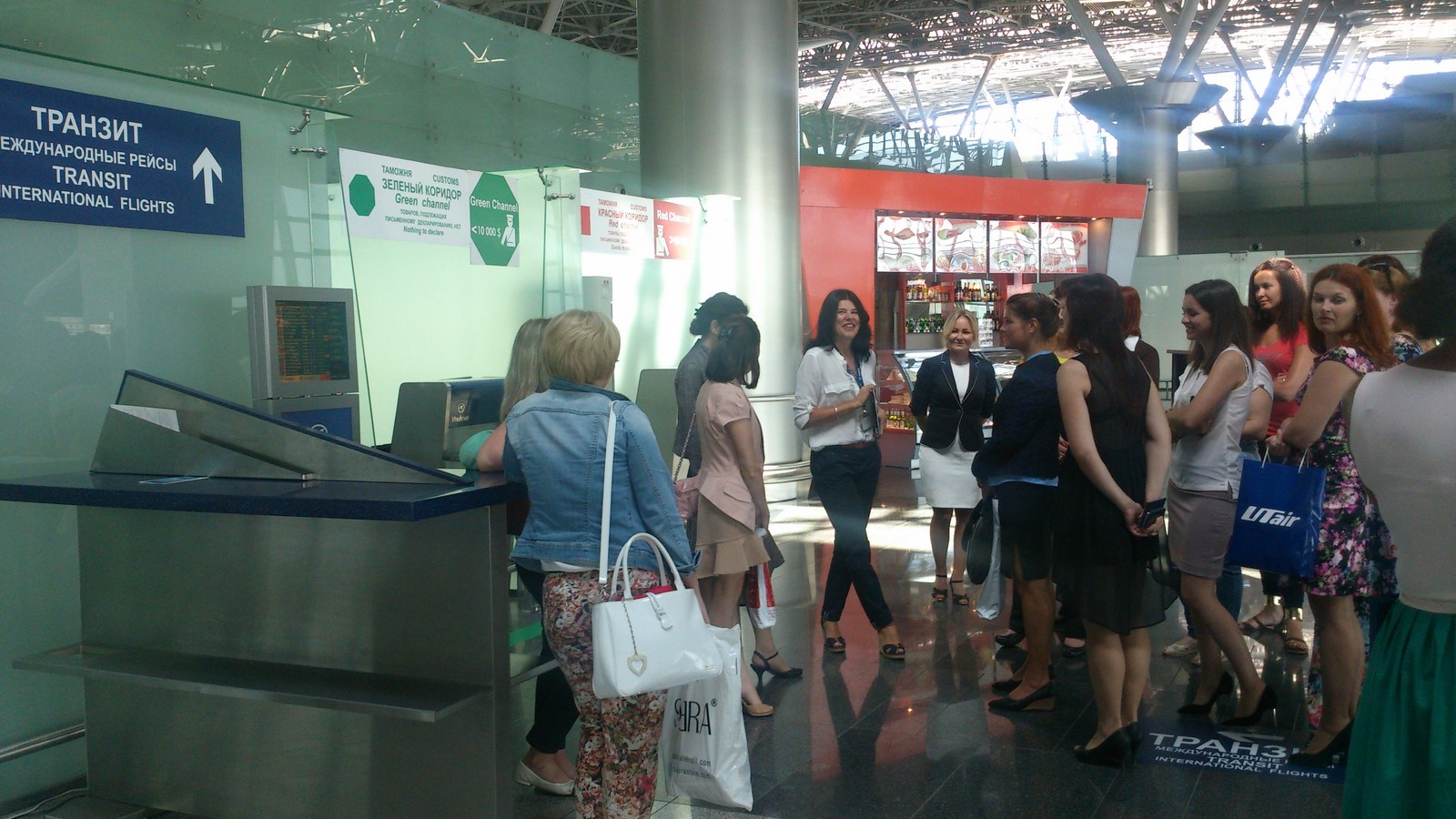 В рамках ознакомительного тура гостям продемонстрировали офисы авиакомпаний «ЮТэйр» и «Трансаэро», расположенные в офисной зоне на верхнем уровне терминала А.