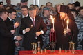 Делегацию, которая доставила огонь, возглавили председатель попечительского совета Фонда Андрея Первозванного Владимир Якунин и епископ Красногорский Иринарх.