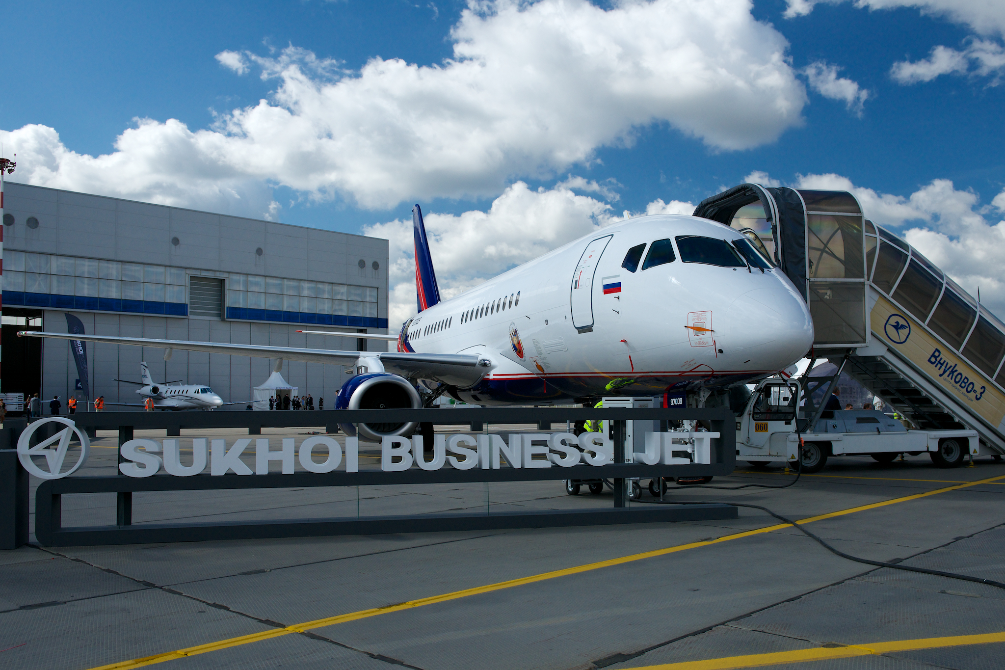В церемонии открытия приняли участие глава Федерального агентства воздушного транспорта РФ Александр Васильевич Нерадько, председатель совета директоров ОАО «Международный аэропорт Внуково» Виталий Анатольевич Ванцев, президент ОАО «Объединенная авиастроительная корпорация» Михаил Асланович Погосян и генеральный директор Jet Transfer Александр Юрьевич Евдокимов.