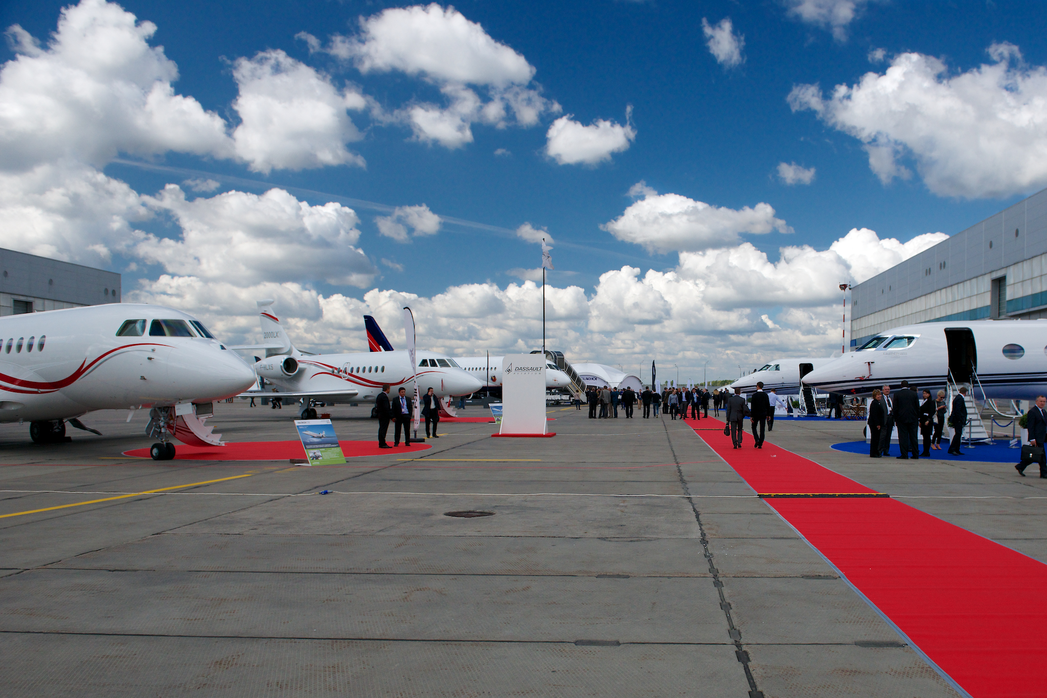 В выставочном павильоне представлено более 100 стендов таких компаний как ABS Jets, Aerotrans, Bombardier, AgustaWestland, ASR Cessna Aircraft, Dassault Aviation, AviaGroup, BART, Delta Aerotaxi, Eurocopter, Gulfstream, Hawker, IR Bell Helicopter, Jet Group, Jet Aviation, Qatar Executive, RusAero, Tulpar, RusJet.