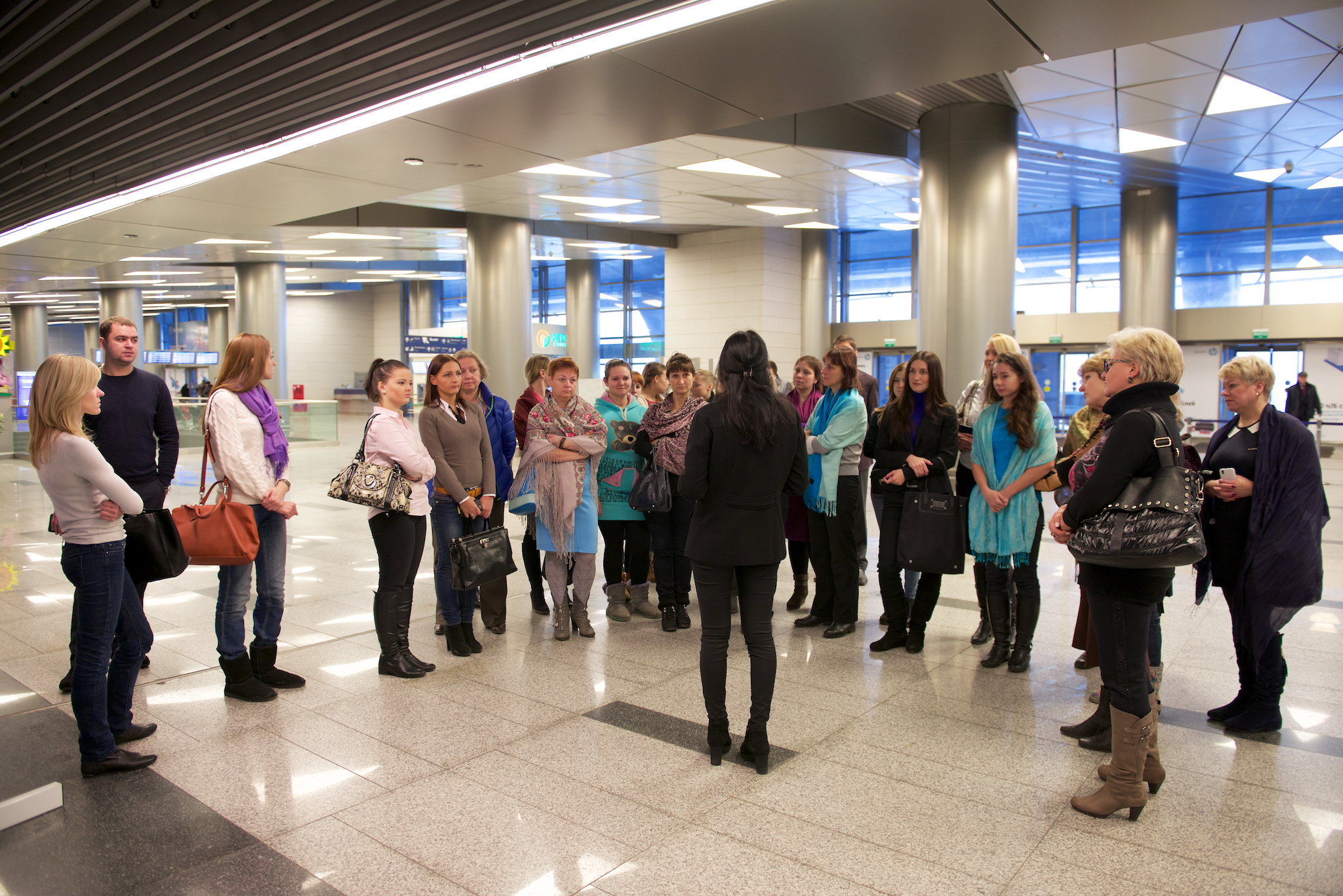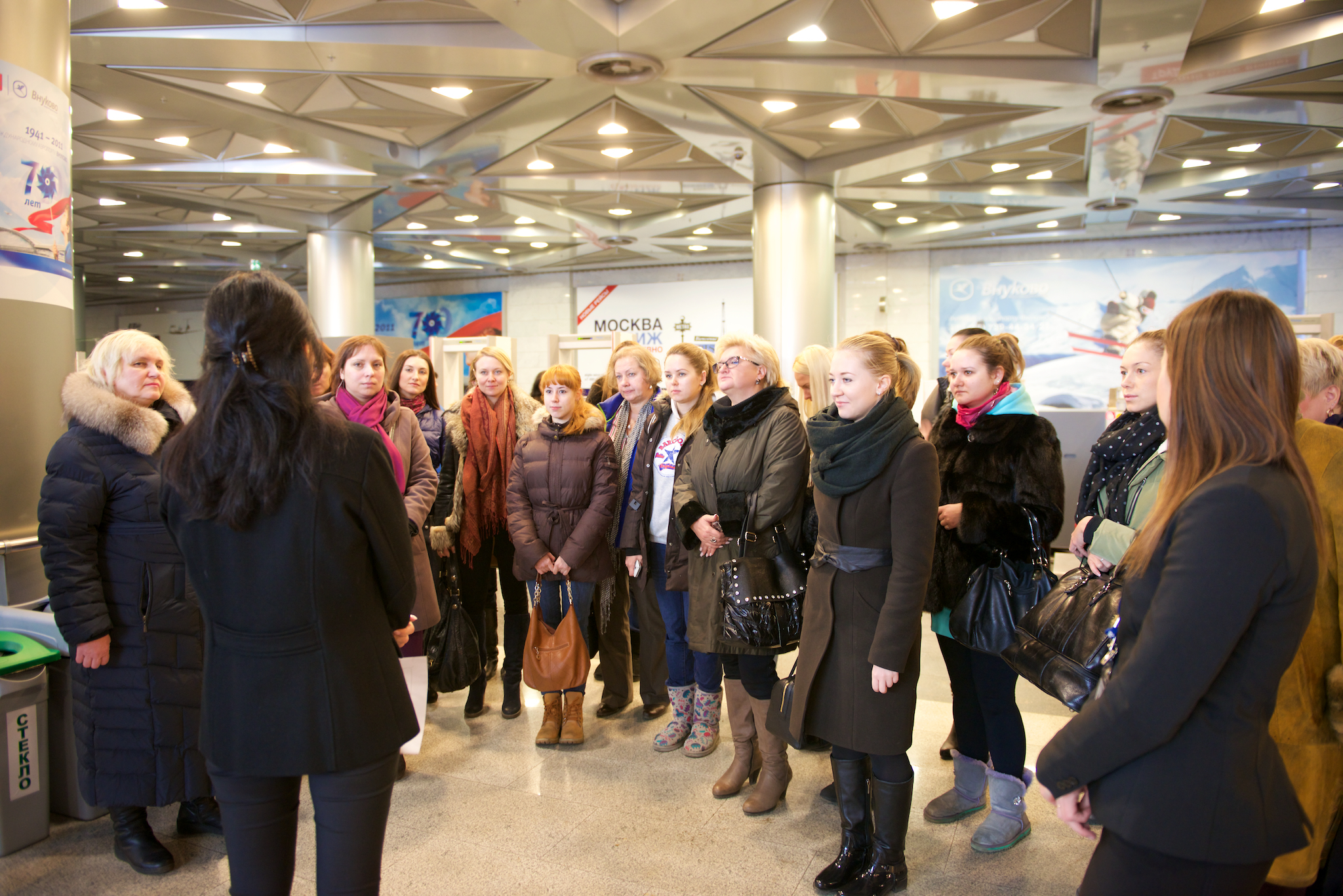 Экскурсия началась с подземного уровня основного терминала аэропорта Внуково — терминала А. Уникальной особенностью терминала среди аэровокзальных комплексов России является встроенная в него подземная железнодорожная станция, на которую прибывают комфортабельные поезда «Аэроэкспресс» с Киевского вокзала. С платформы, избегая выхода на улицу и длинных переходов, пассажиры попадают сразу на подземный уровень терминала.