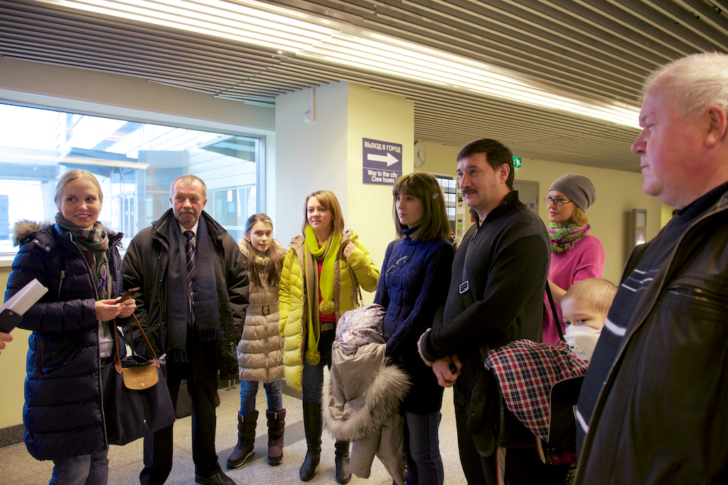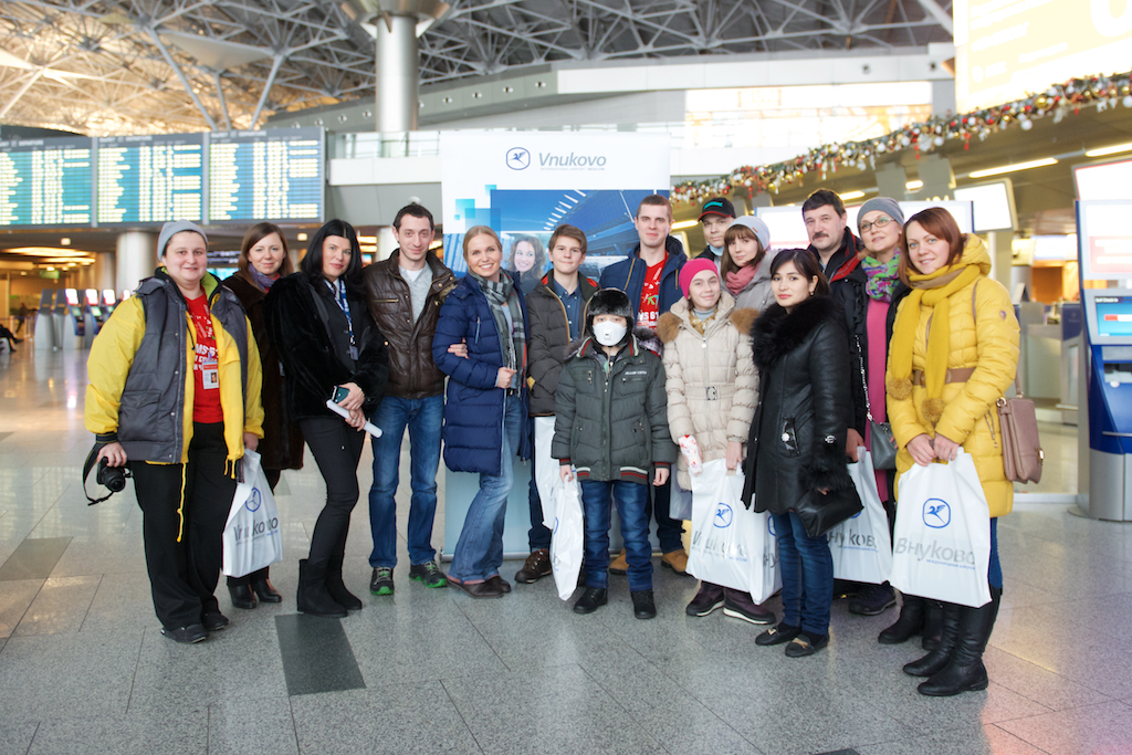 Представители аэропорта встретили экскурсантов в зале вылета возле стоек регистрации авиакомпании «Трансаэро». После приветственного вступительного слова и небольшого рассказа об аэропорте Внуково, экскурсия продолжилась посадочной галерее внутрироссийских рейсов. Через панорамные окна терминала А была отлично видна вся работа на перроне аэропорта: буксировка воздушных судов, заправка, антиобледенительная обработка. И дети, и сопровождающие их взрослые, не отрываясь, наблюдали за процессами обслуживания воздушных судов.