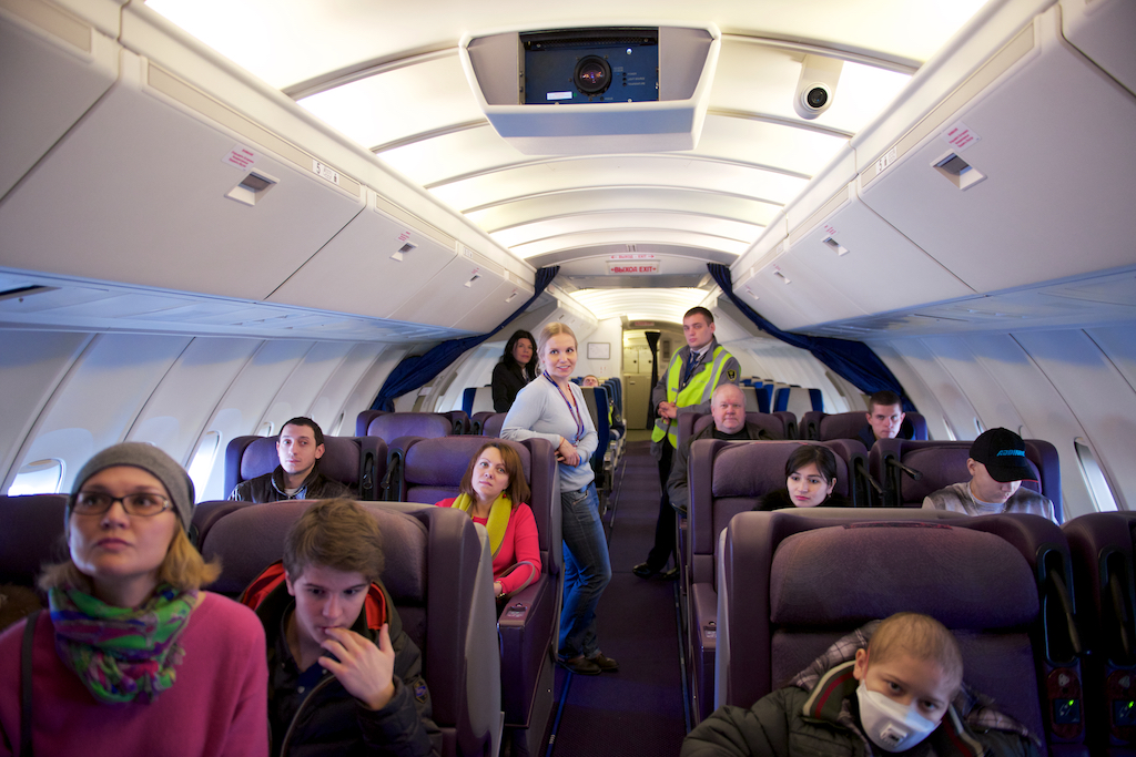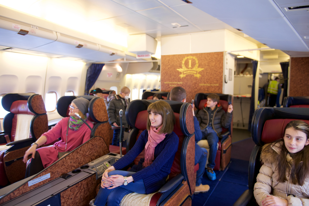 Впрочем, самое интересное ждало участников экскурсии впереди. Гости прошли на перрон через Брифинг — недоступное для обычных пассажиров место, где экипажи воздушных судов готовятся к предстоящим полётам. Конечной точкой непродолжительной поездки на перронном автобусе стал один из самых больших пассажирских самолётов в мире — лайнер Boeing 747 авиакомпании «Трансаэро», в котором представлены все классы обслуживания: эконом, бизнес и Империал.