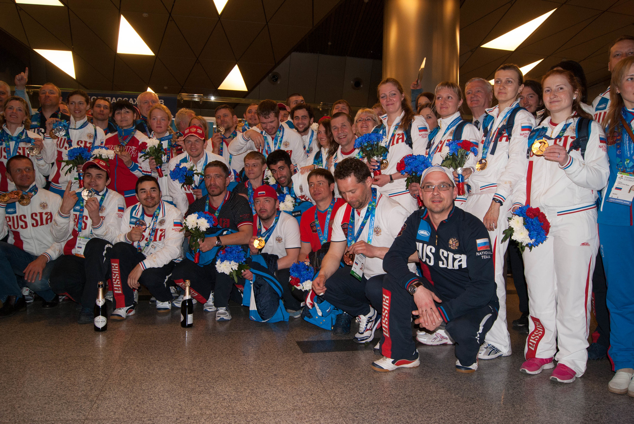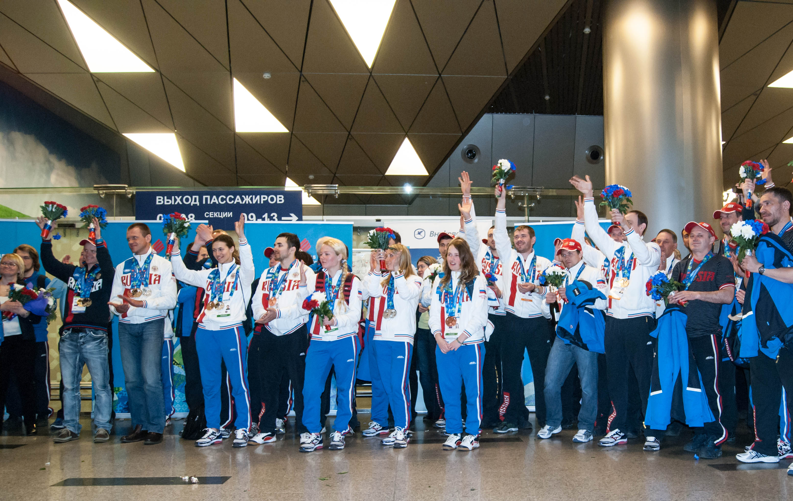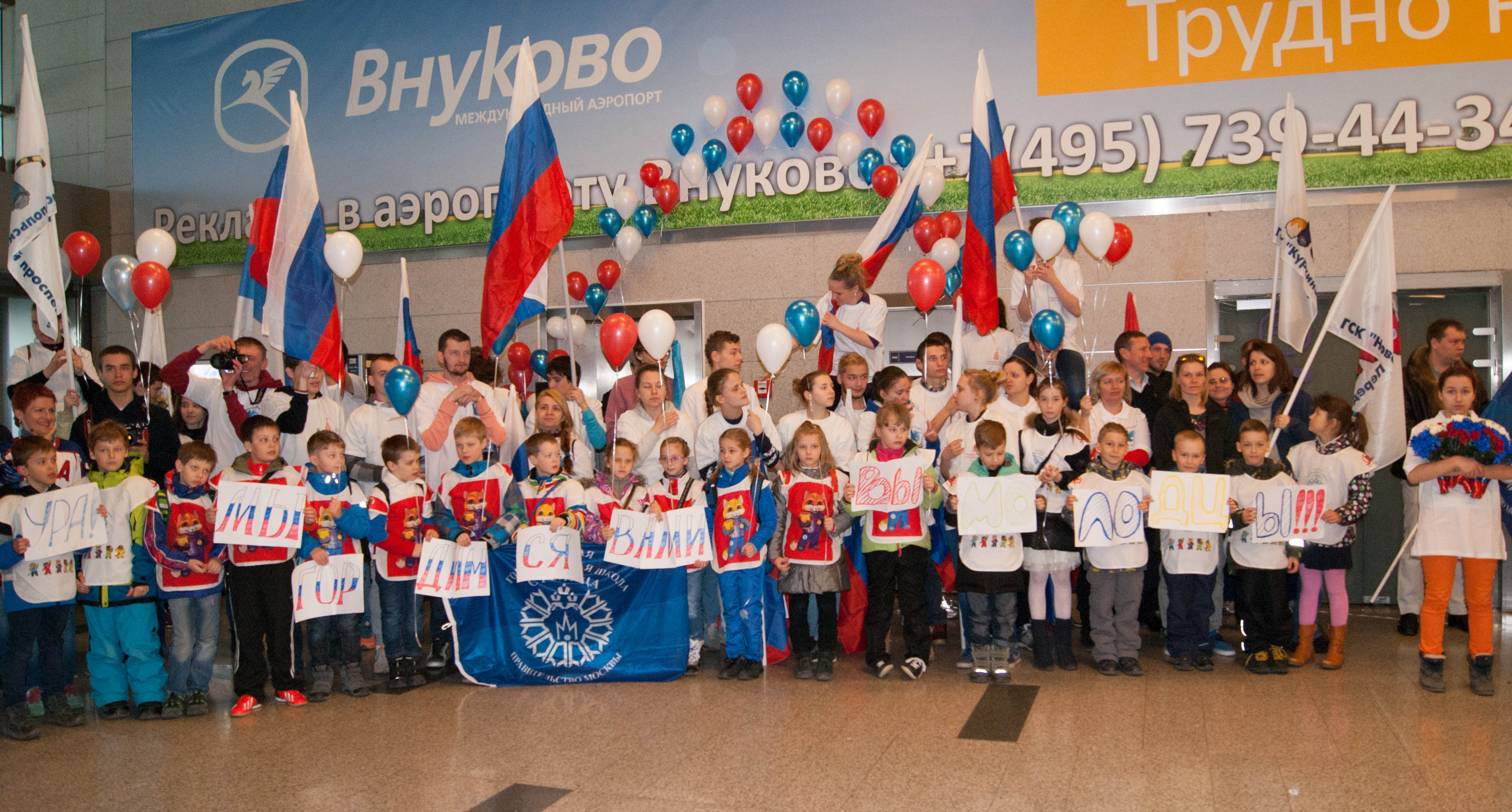 Международный аэропорт Внуково 6 апреля встретил из Ханты-Мансийска Российскую сборную команду XVIII Сурдлимпийских зимних игр 2015.