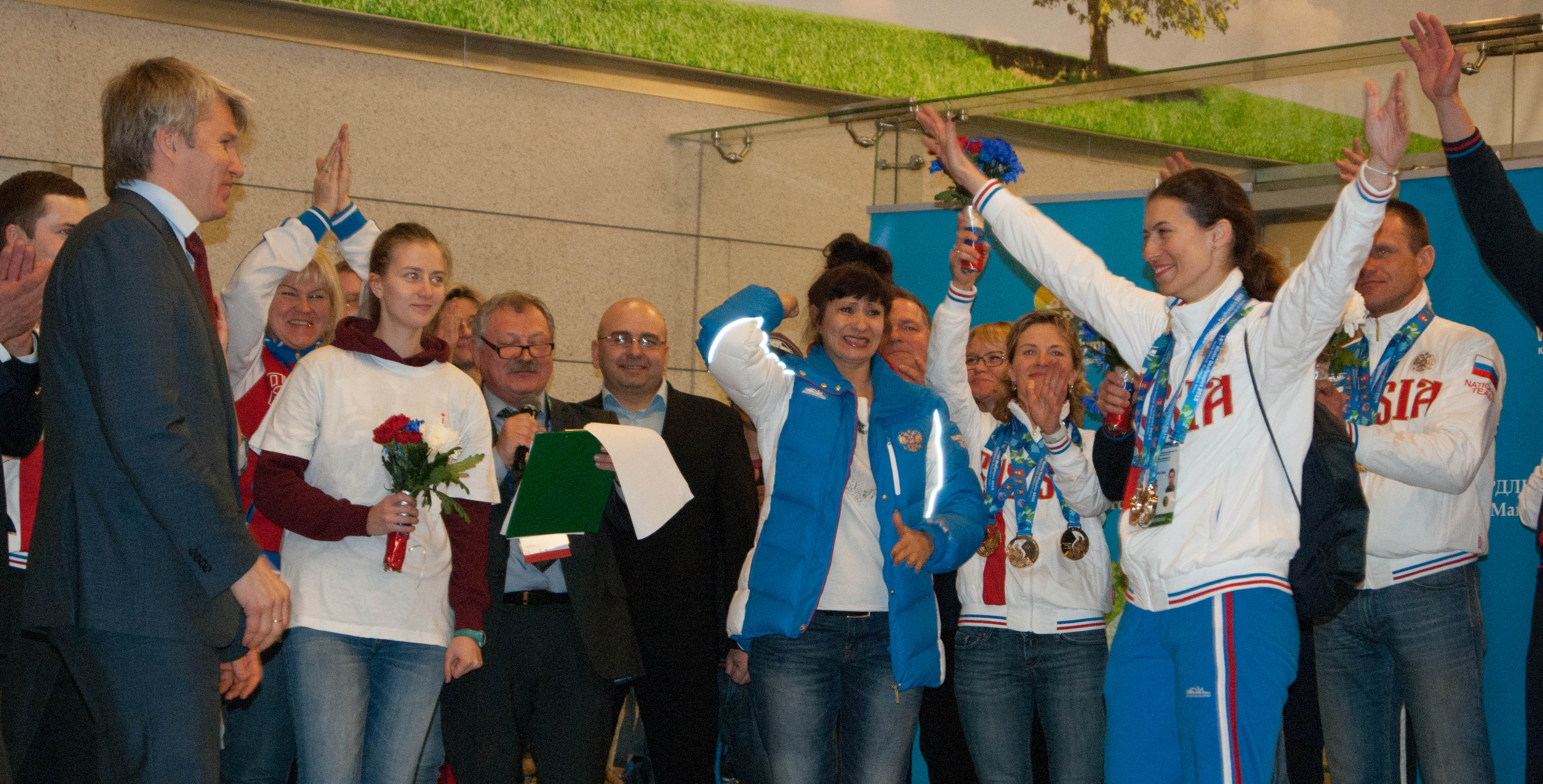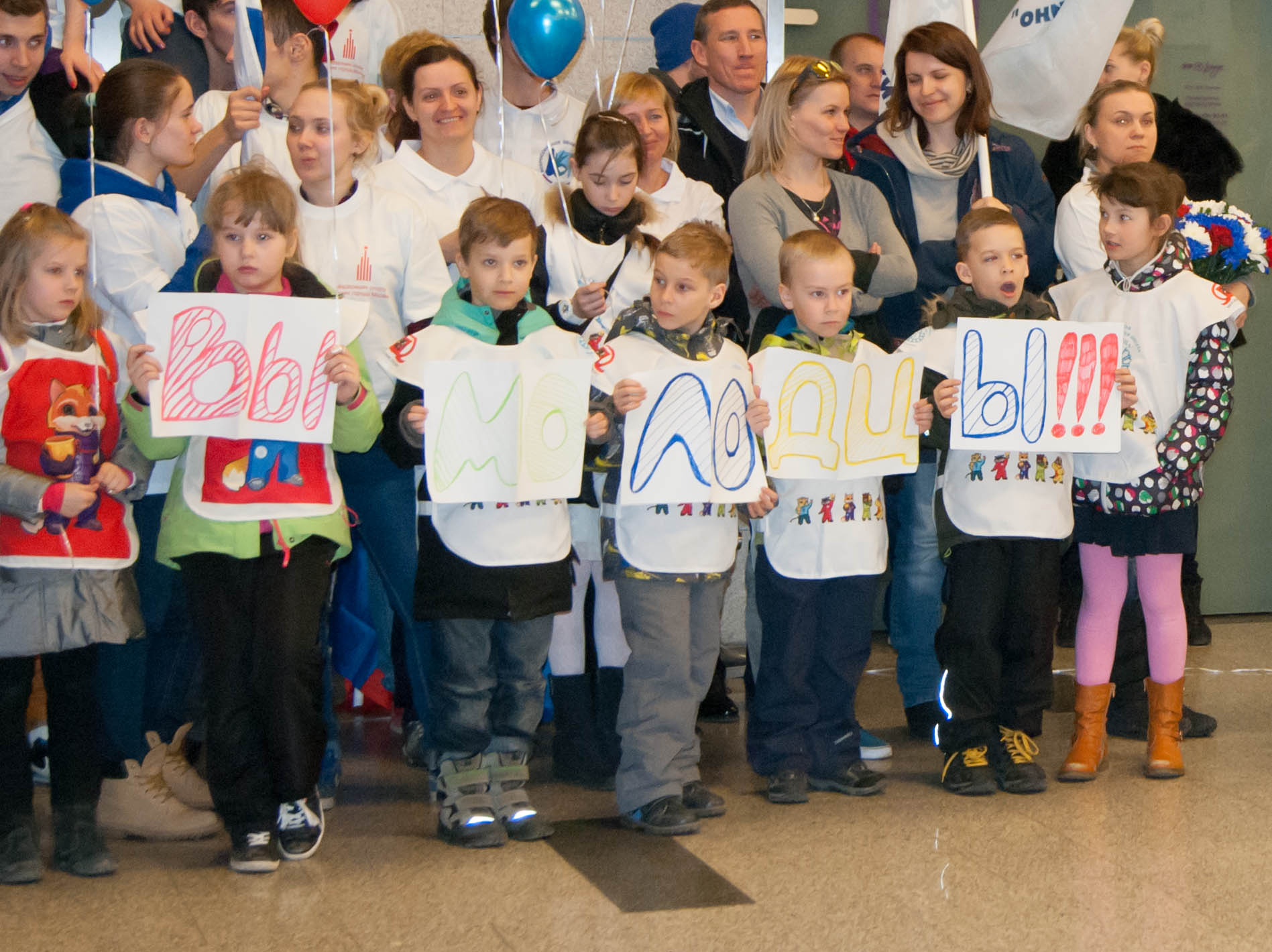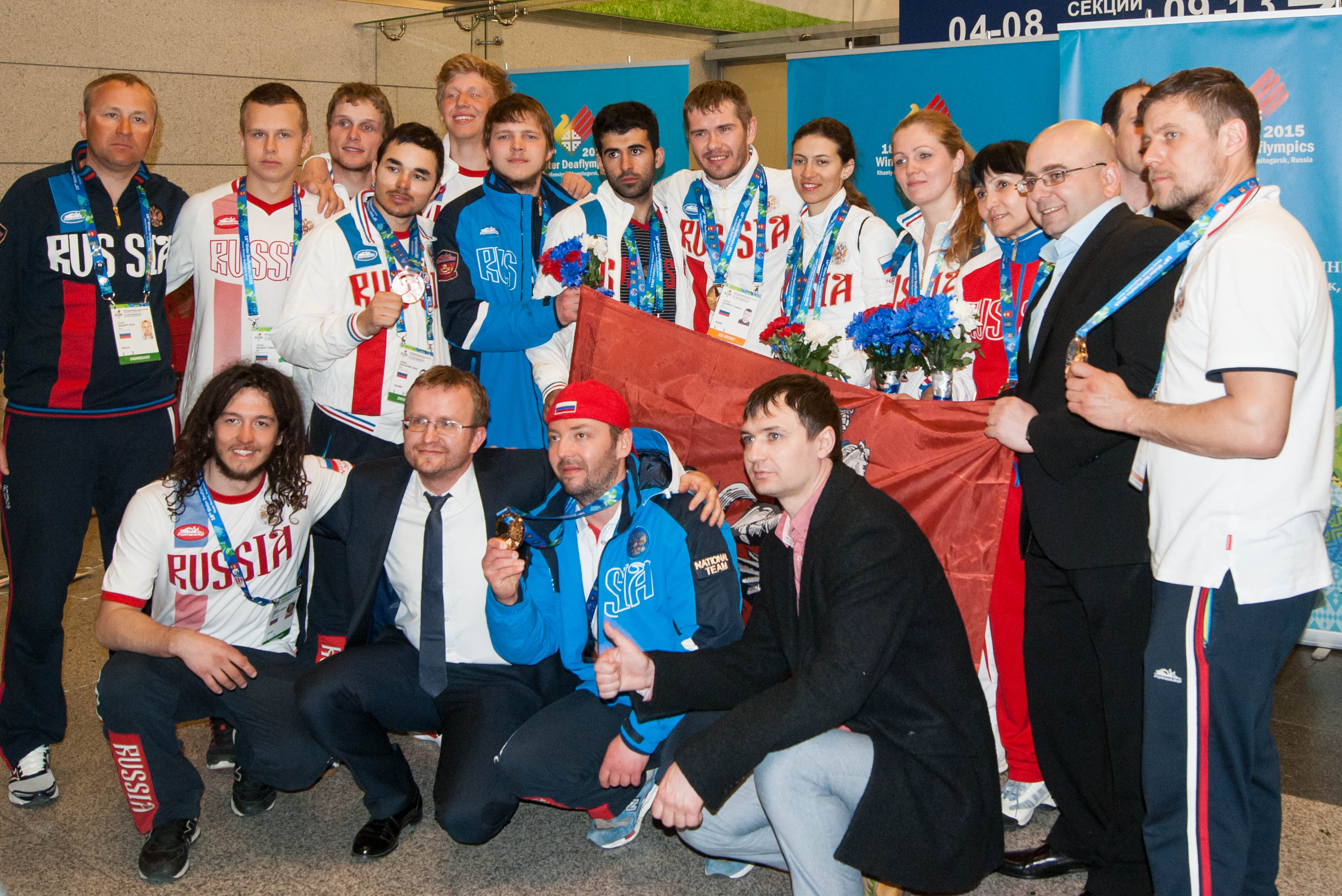 Международный аэропорт Внуково 6 апреля встретил из Ханты-Мансийска Российскую сборную команду XVIII Сурдлимпийских зимних игр 2015.