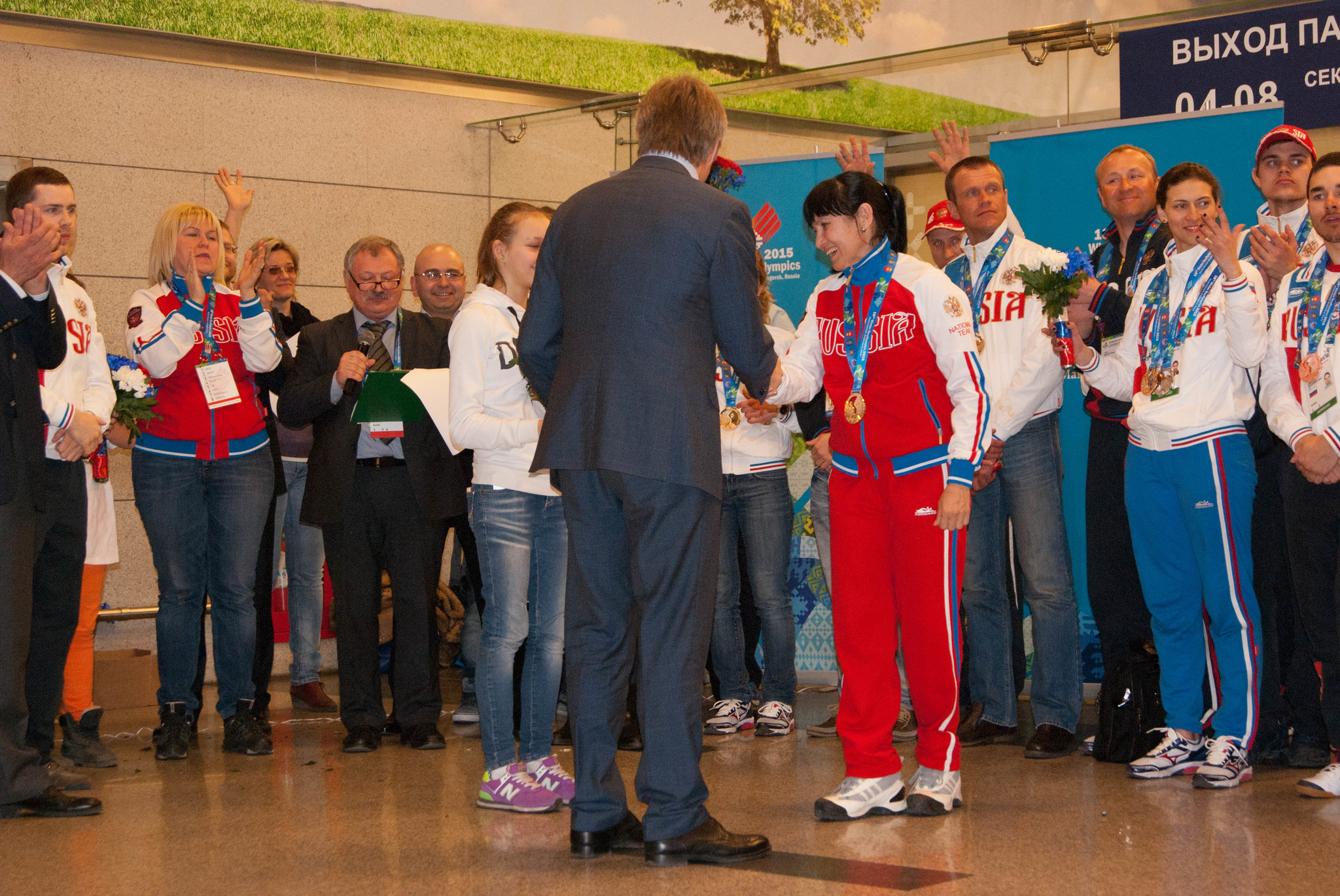Сборную России, занявшую первое место в общекомандном зачете, поздравили заместитель министра спорта РФ Павел Колобков и первый заместитель руководителя Департамента физической культуры и спорта города Москвы Николай Гуляев.