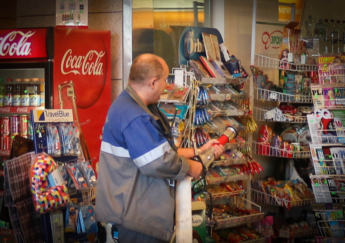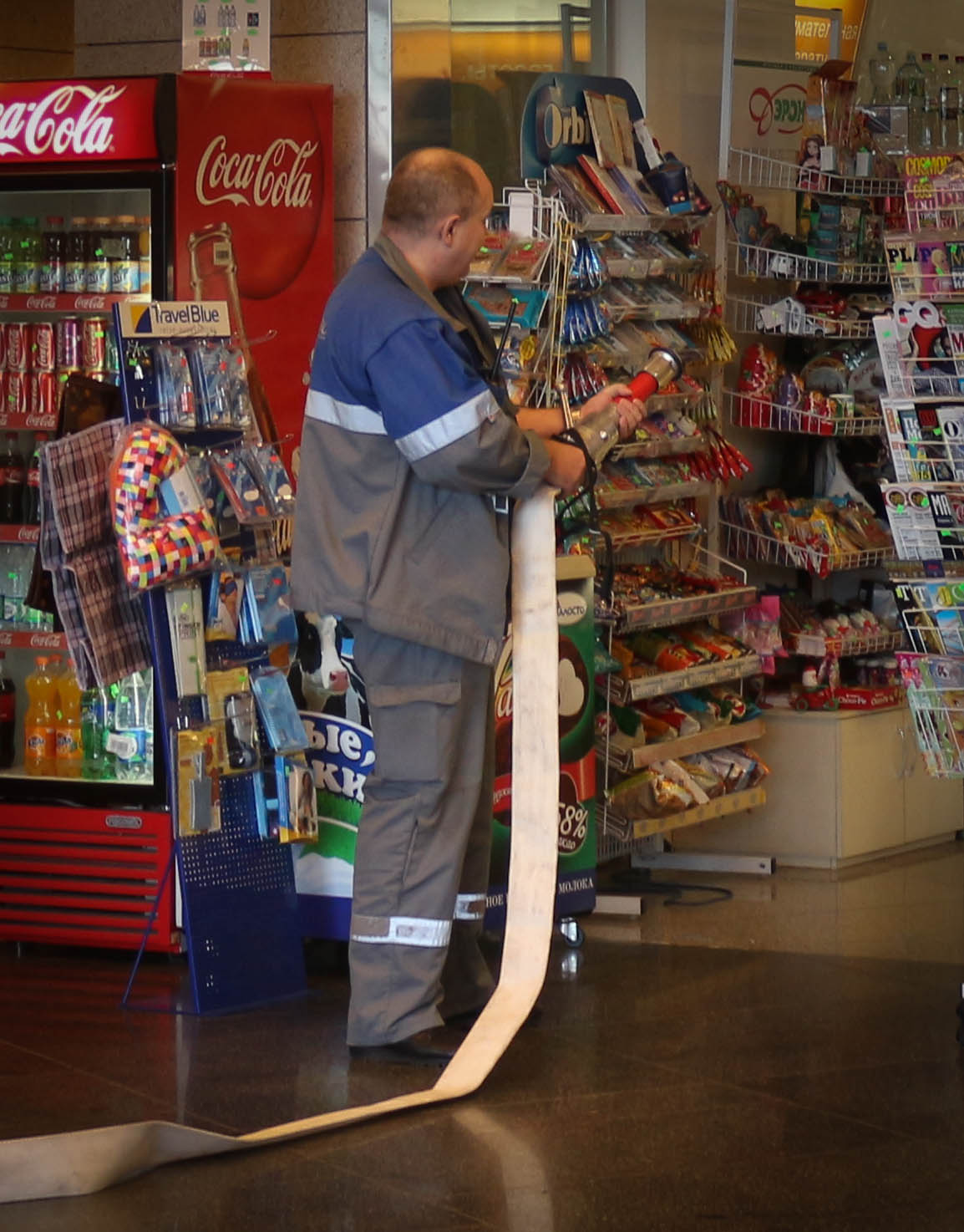 По сценарию тренировки проводили в четыре этапа: три подготовительных, включающих в себя как теоретические, так и практические занятия со всеми категориями сотрудников, а также проверка систем автоматической противопожарной защиты объекта. На четвертом этапе было имитировано возникновение очага возгорания от короткого замыкания электропроводки в холодильной установке в помещении магазина с прессой. Основную часть программы составили мероприятия по отработки взаимодействия всех причастных служб и подразделений, после поступившего сигнала о пожаре на станцию пожарной сигнализации. В ходе тренировки необходимо было незамедлительно приступить к тушению очага при помощи первичных средств пожаротушения, оперативно эвакуировать сотрудников и пассажиров из зданий терминалов А, D и В, организовать взаимодействие с пожарным подразделением СПАСОП.
