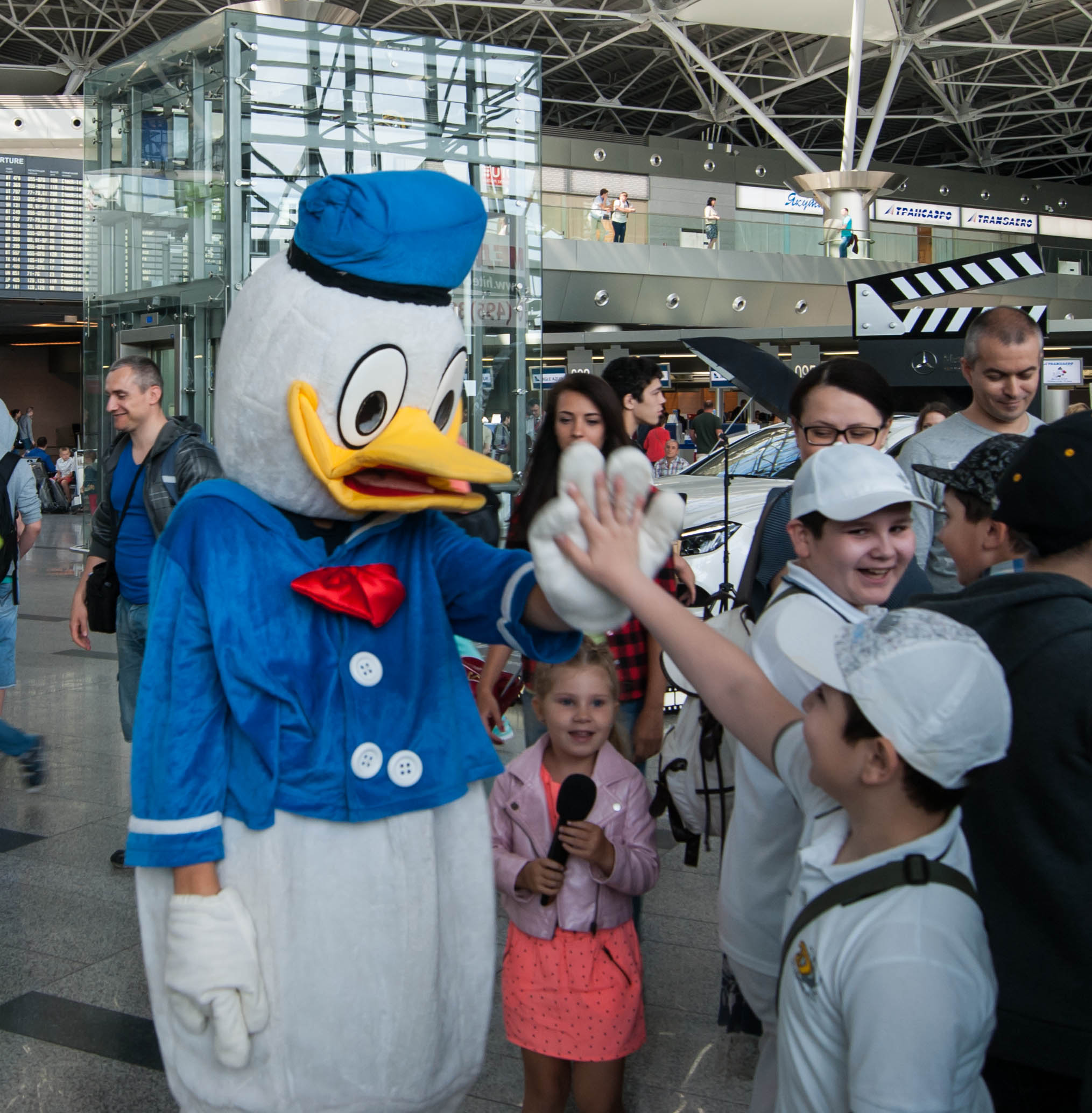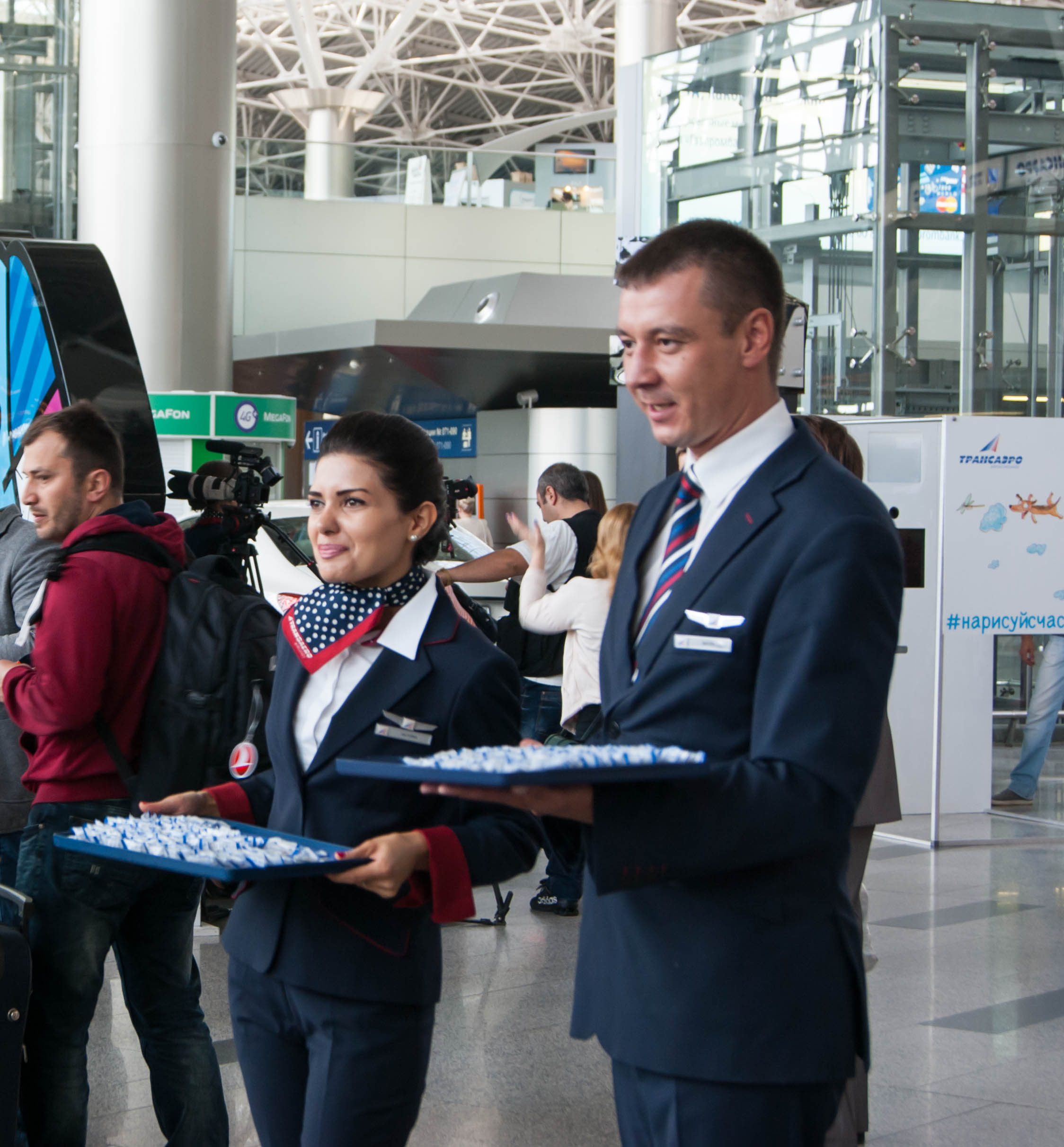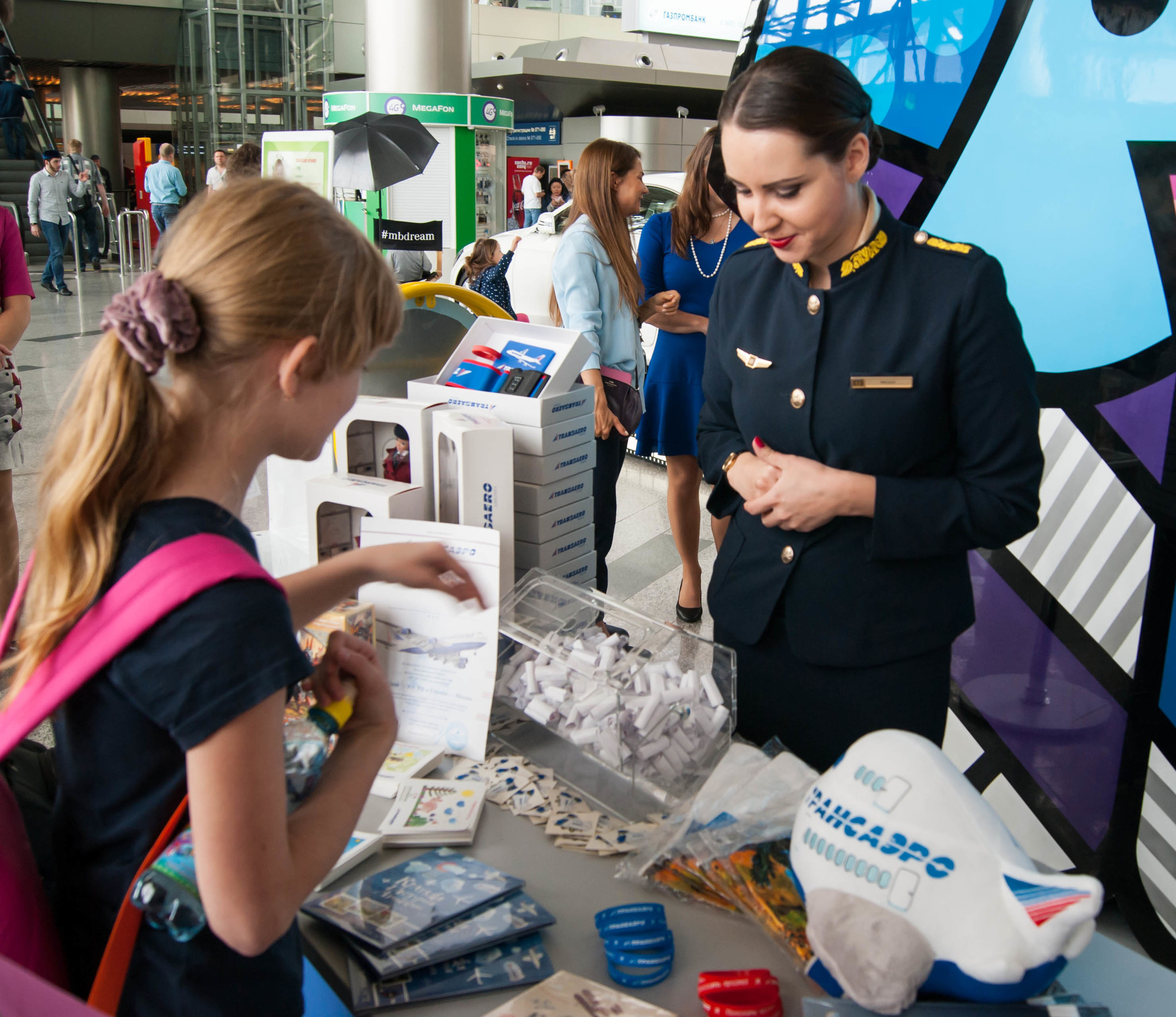 Пассажиров и гостей аэропорта ожидало множество приятных сюрпризов. На входе в здание аэровокзала их встречали персонажи популярных мультфильмов, в зоне регистрации пассажиров ожидали веселые фокусы от заслуженного артиста России, режиссера театра и цирка Владимира Иванова. Волонтеры-сотрудники «Трансаэро» и фонда «Счастливый мир» научили юных пассажиров искусству оригами, создав с ними из бумажных самолетов целый воздушный флот. В специально установленной фотобудке любой желающий за символический благотворительный взнос мог организовать для себя короткую фотосессию и получить моментальные фотографии. У стоек регистрации «Трансаэро» пассажирам предлагалось принять участие в беспроигрышной благотворительной лотерее. Каждому попытавшему удачу бортпроводники «Трансаэро» вручали не только выигранный приз, но и специальный подарок – багажные наклейки, для дизайна которых использовались рисунки подопечных фонда «Счастливый мир» и победителей конкурса детского конкурса «Нарисуй счастье». Главным призом благотворительной лотереи стал сертификат на бесплатный перелет «Трансаэро» на два лица в любой город России или Европы, который достался Жасмине Вениаминовой из Москвы.
