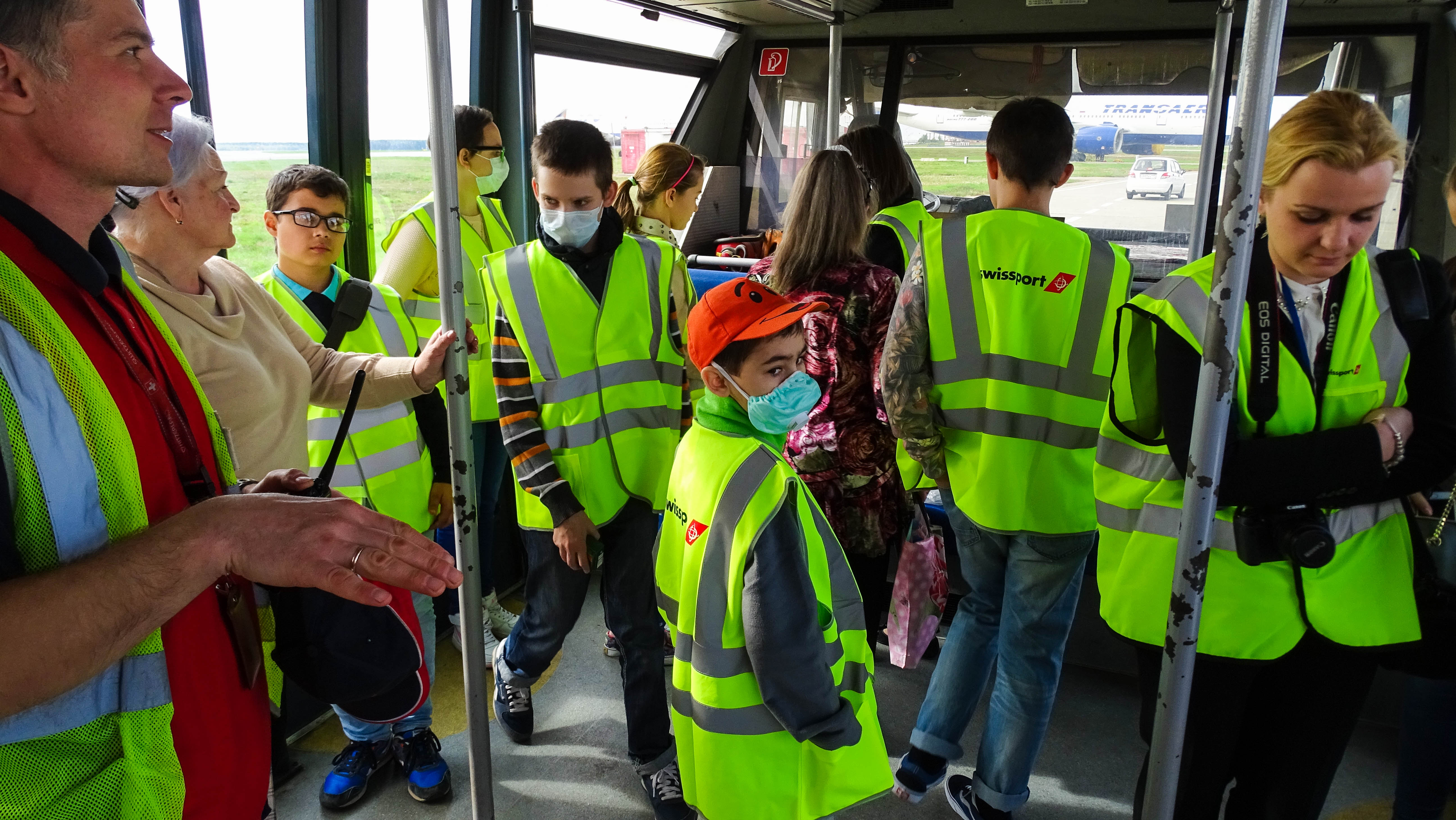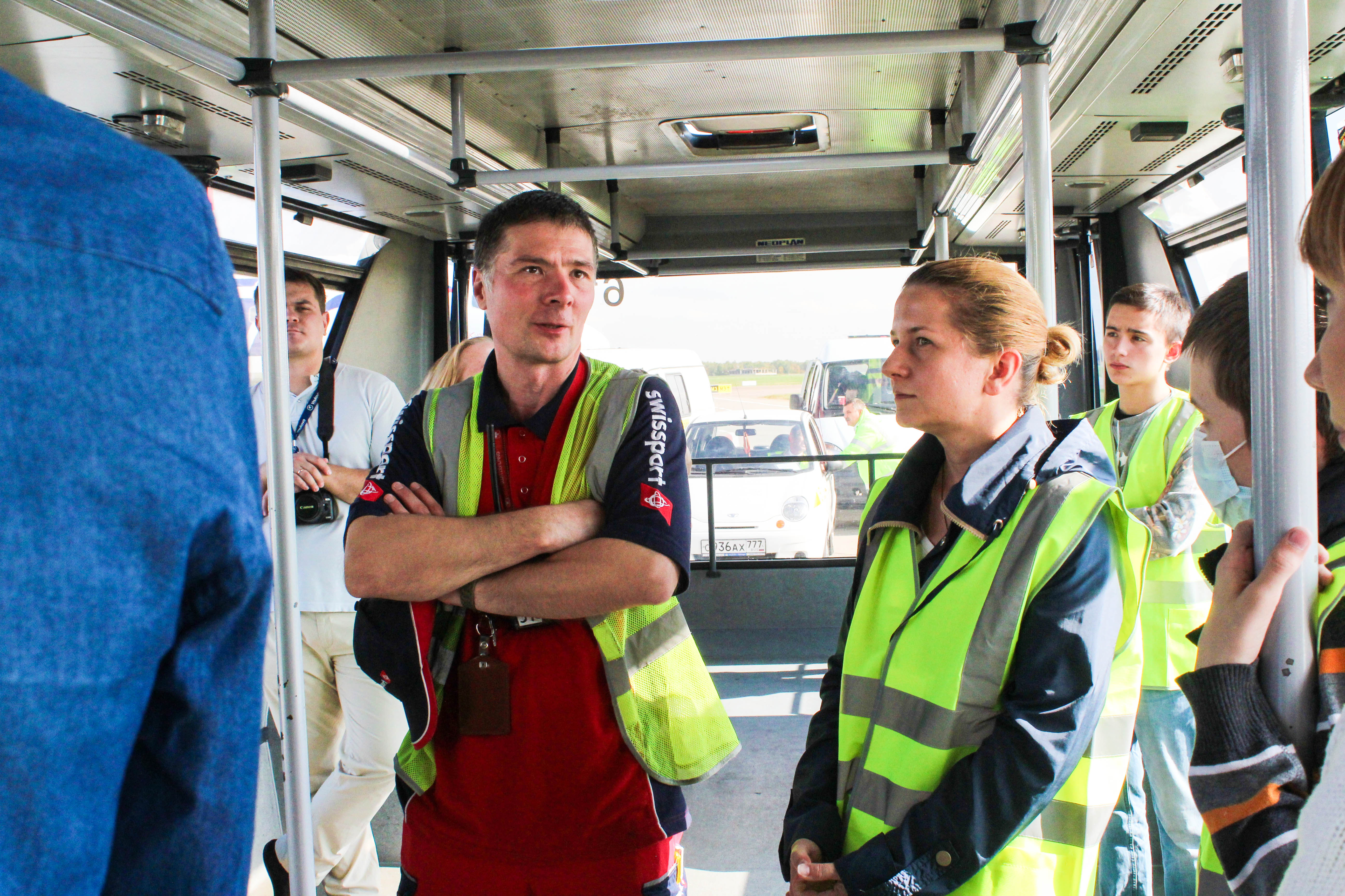 В этот день сбылась еще одна мечта ребят – побывать на перроне аэропорта и увидеть, как обслуживают воздушные суда. Из окна автобуса дети наблюдали за погрузкой бортового питания и багажа, подачей трапа, работой специальной техники и, конечно, за взлетом и посадкой самолетов. Представитель Службы перронного обеспечения Swissport Russia рассказал маленьким экскурсантам обо всех рабочих процессах наземного обслуживания и подробно ответил на многочисленные вопросы детей о работе аэропорта и авиакомпаний. Все желающие смогли примерить фирменные желтые жилеты хендлингового оператора и сфотографироваться в них на память.