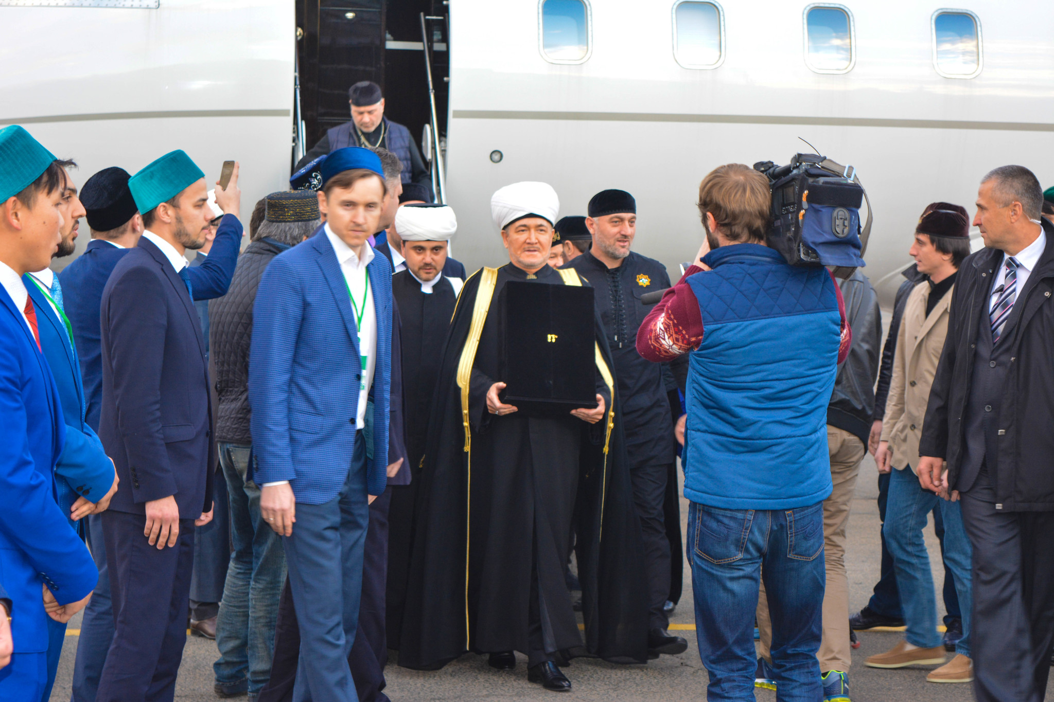 Реликвию сопровождали духовный лидер российских мусульман, Председатель Совета муфтиев России и Духовного управления мусульман Российской Федерации Муфтий Шейх Равиль Гайнутдин и Советник Главы ЧР, депутат Государственной Думы ФС РФ Адам Султанович Делимханов.