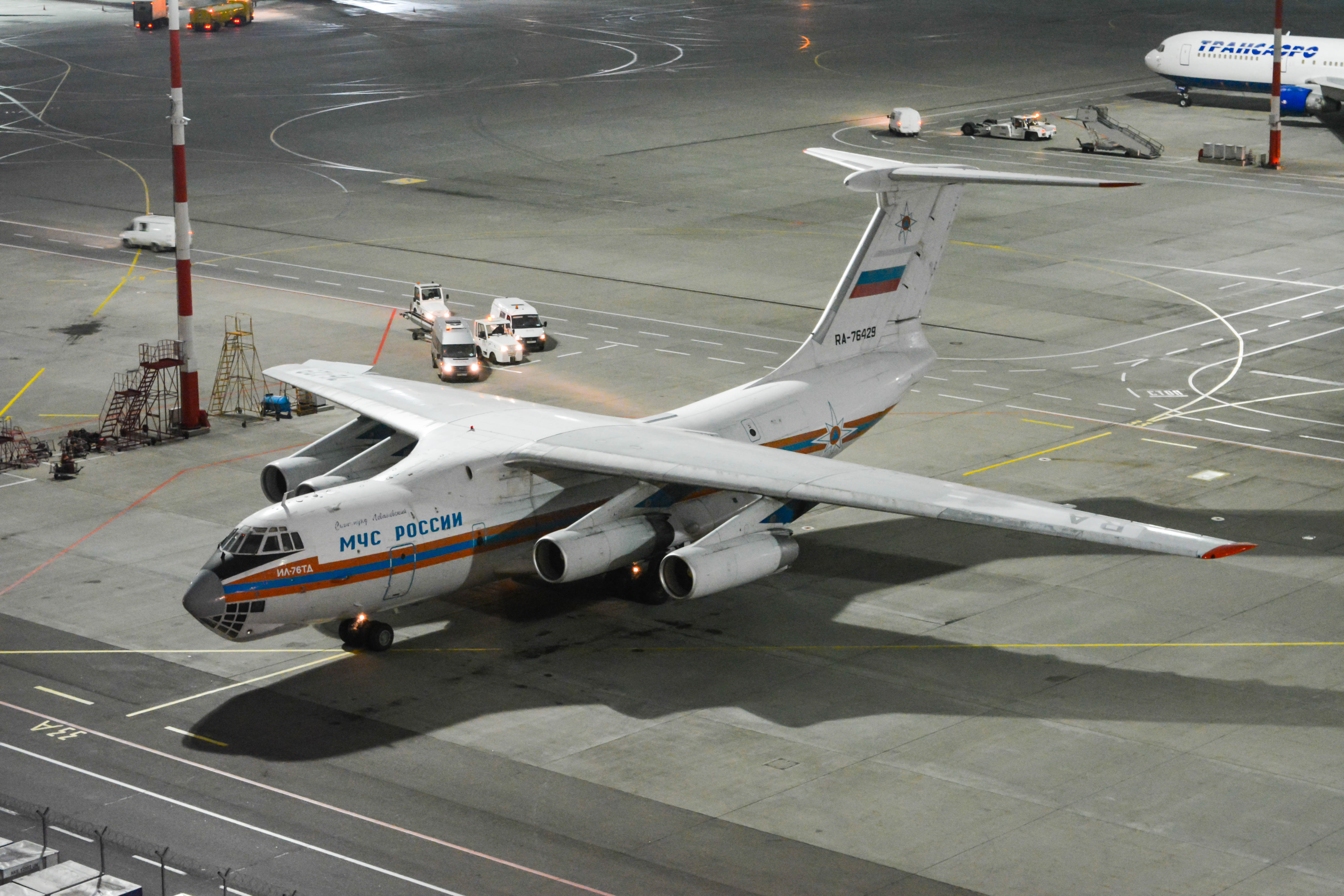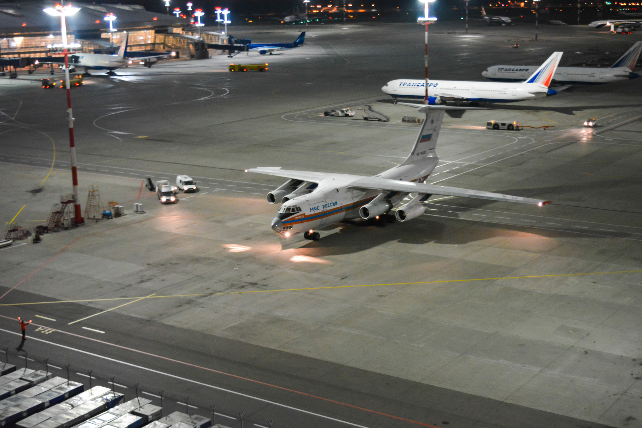 Несколько часов назад во Внуково приземлилось грузовое судно МЧС из Шарм-эль-Шейха, на борту которого находилось 16800 тонн багажа туристов. Прибывший багаж регистрируется наземными службами аэропорта Внуково, затем проверяется службами безопасности аэропорта, сортируется и передается на хранение в специально отведенные места для последующей транспортировки.