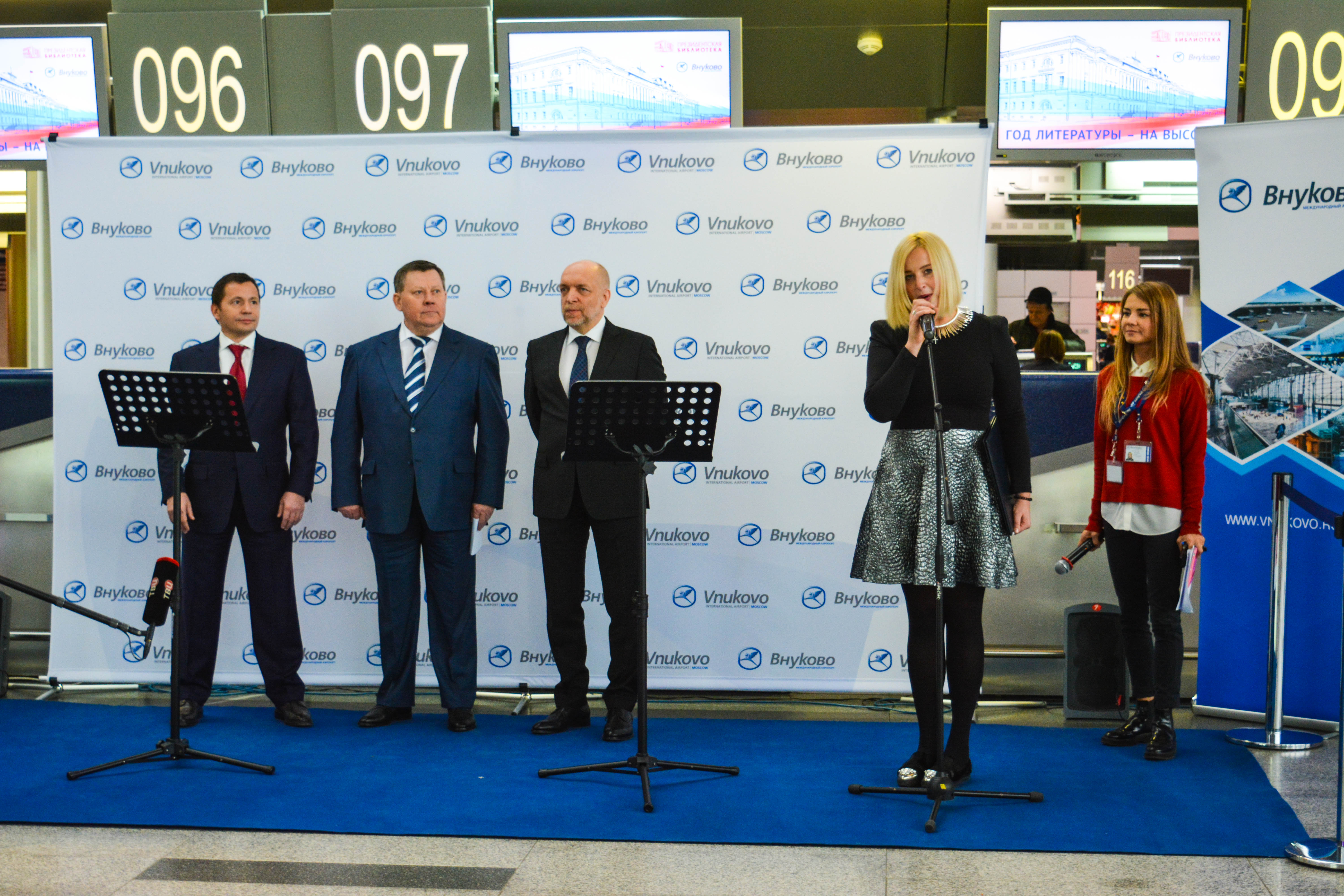 «Рад приветствовать гостей в аэропорту Внуково на презентации проекта «Год литературы: продолжение на высоте». Обеспечение комфортного пребывания пассажиров в нашем аэропорту – приоритетная задача всего коллектива. И мы рады предоставить новую услугу пассажирам - литературную гостиную. Надеемся, она превратит пространство аэропорта в живую всемирную библиотеку с читателями из разных регионов России и мира. Для того, чтобы наш проект жил долго, мы просим приносить свои любимые книги и оставлять в нашей библиотеке взамен понравившейся. Хотел выразить слова признательности нашим партнерам - Президентской библиотеке и поблагодарить Управление делами Президента РФ, которые всегда поддерживают нас во всех творческих начинаниях», - отметил Виталий Анатольевич Ванцев.