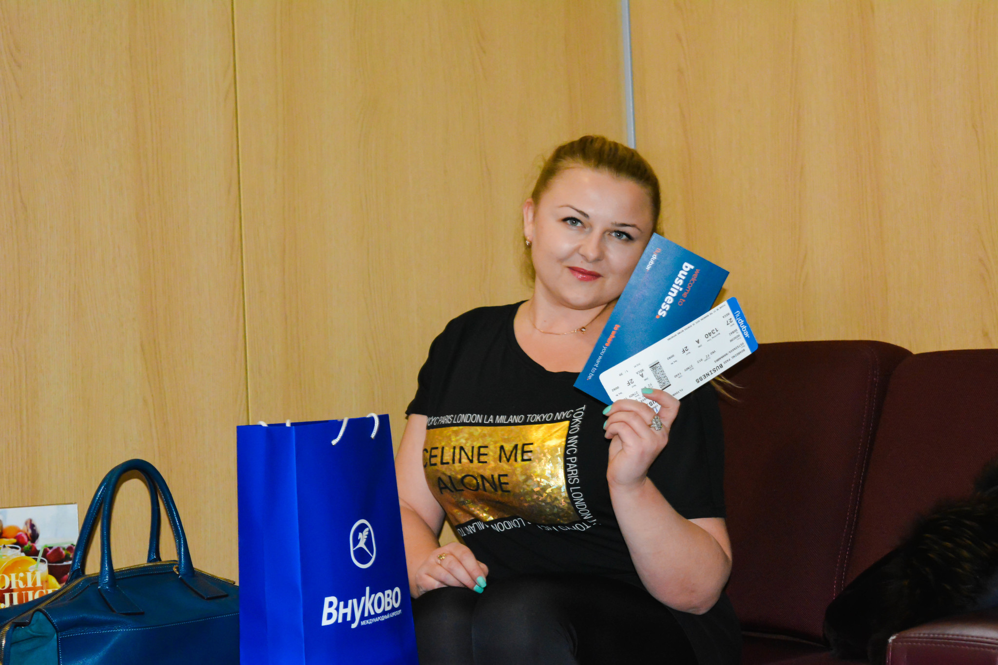 Пятым зарегистрированным на праздничный рейс пассажиром стала Анна Владимировна Устинова из Минска: «Спасибо за подарки и за праздничное настроение и незабываемый день, для меня это стало полной неожиданностью. Я часто летаю в Москву и всегда стараюсь выбирать аэропорт Внуково».