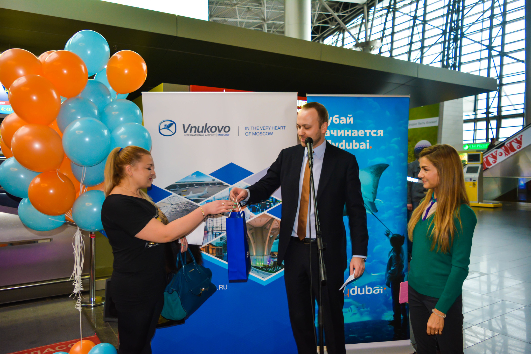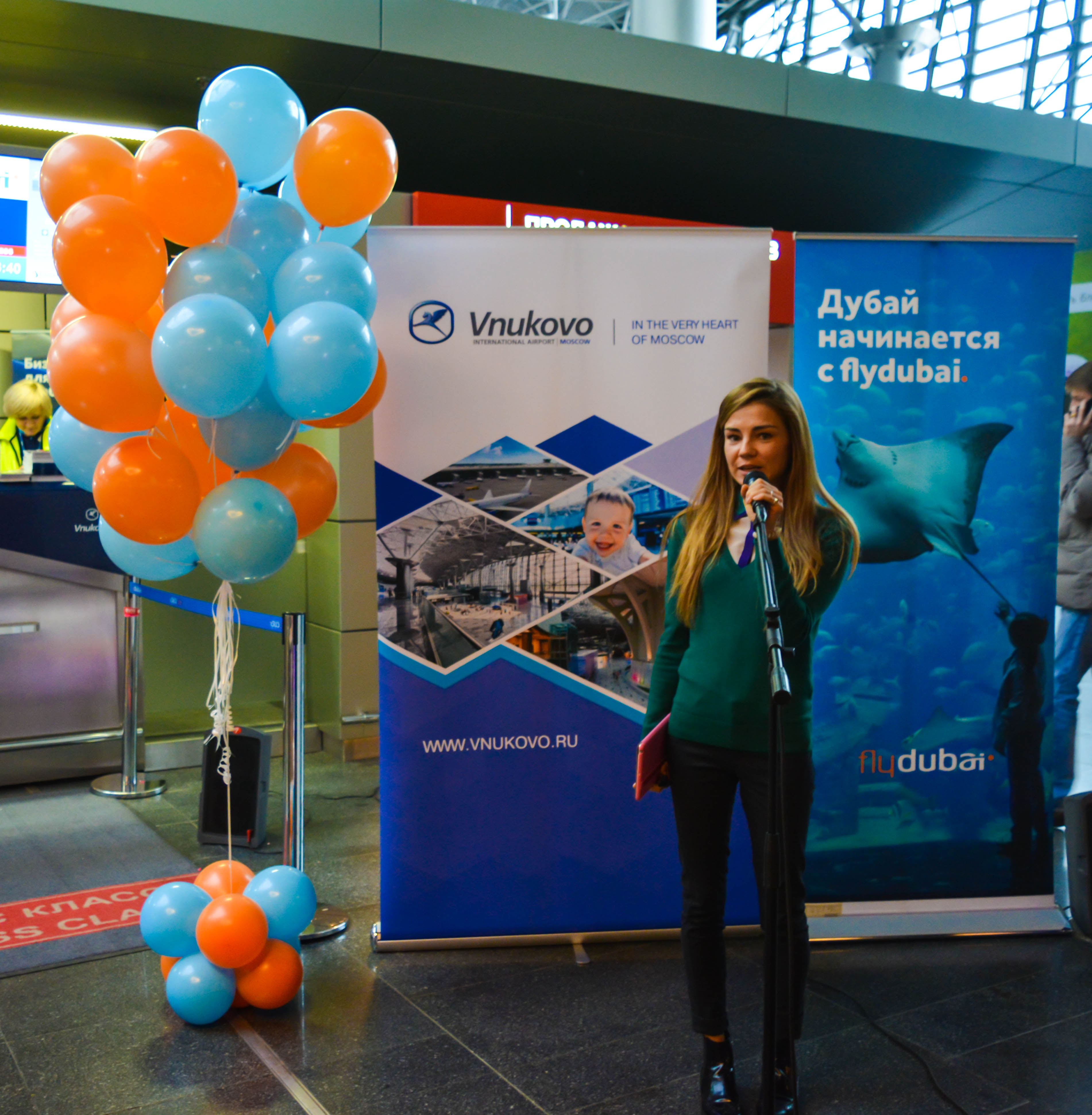 Директор по маркетингу ОАО «Международный аэропорт «Внуково» Кузнецов Антон Викторович поздравил авиакомпанию, пассажиров и гостей мероприятия и отметил: «Сотрудничество с авиакомпанией flydubai – важный показатель для аэропорта Внуково, это говорит о нашем высоком уровне. Приятно, что за время нашего партнерства пассажиры Внуково смогли убедиться, что flydubai — это всегда комфорт, надежность и доступные цены».