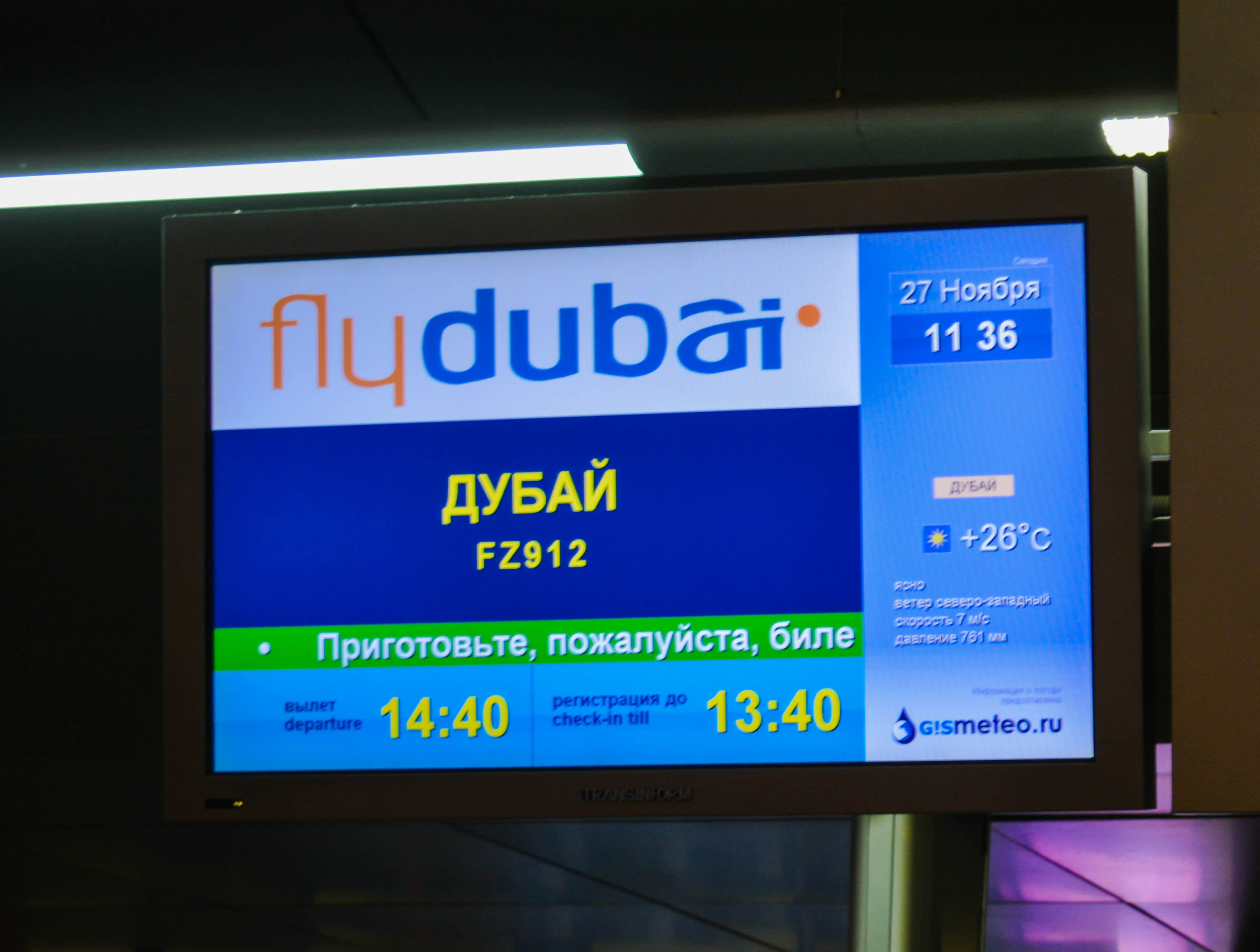 Аэропорт Внуково и авиакомпания flydubai желает пассажирам приятного полета.