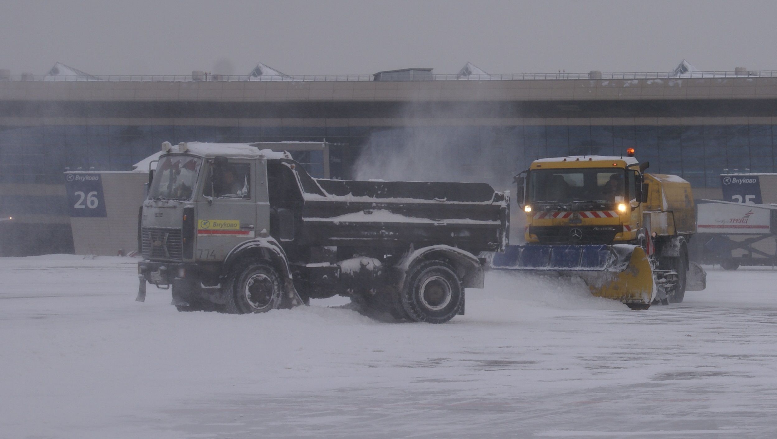 Аэродромная служба в постоянном режиме производит патрульную чистку и непрерывную обработку противогололедными реагентами перрона, а также очистку от снега и льда взлетно-посадочных полос, рулежных дорожек и мест стоянки воздушных судов. Задействовано свыше 50 единиц многофункциональной снегоуборочной техники и спецмашин для распределения химреагентов. Обеспечен необходимый коэффициент сцепления. 11 единиц техники задействовано для обработки самолетов противообледенительной жидкостью.