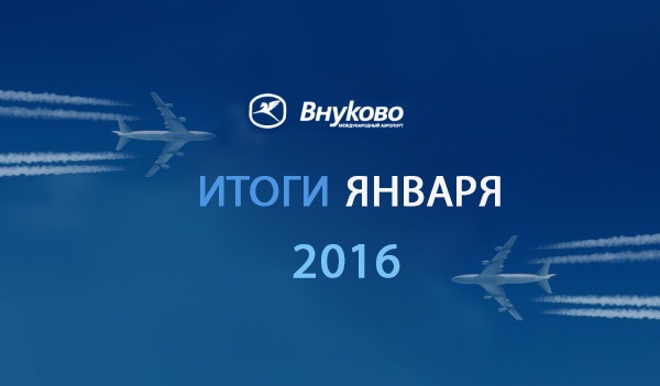 Пассажиропоток аэропорта Внуково в январе 2016 года составил 722,5 тыс. человек, что на 28,2% меньше показателя за аналогичный период 2015 года. Число взлетно-посадочных операций уменьшилось по сравнению с январем 2015 года на 20,2% — до 9 966 ВПО.