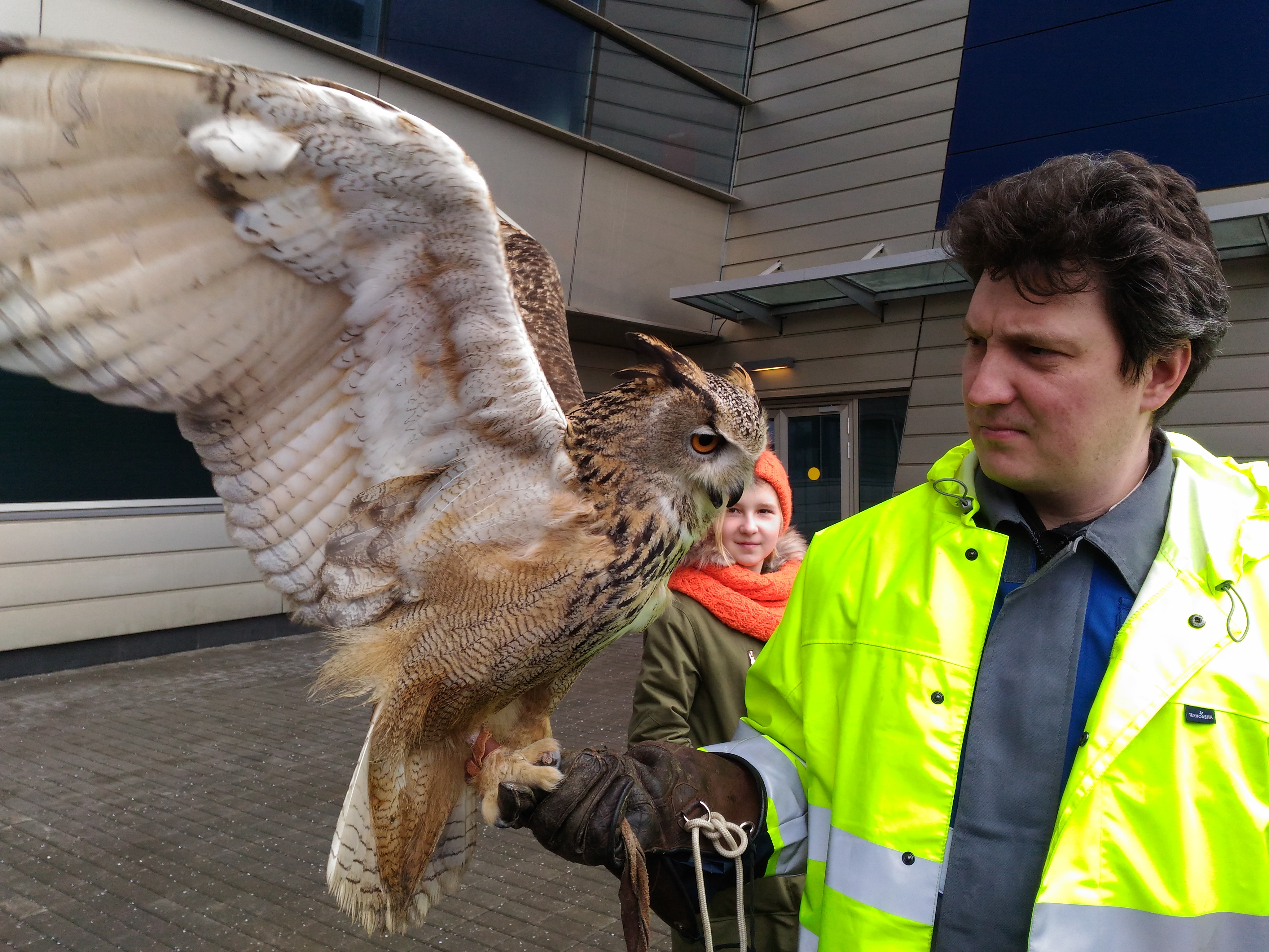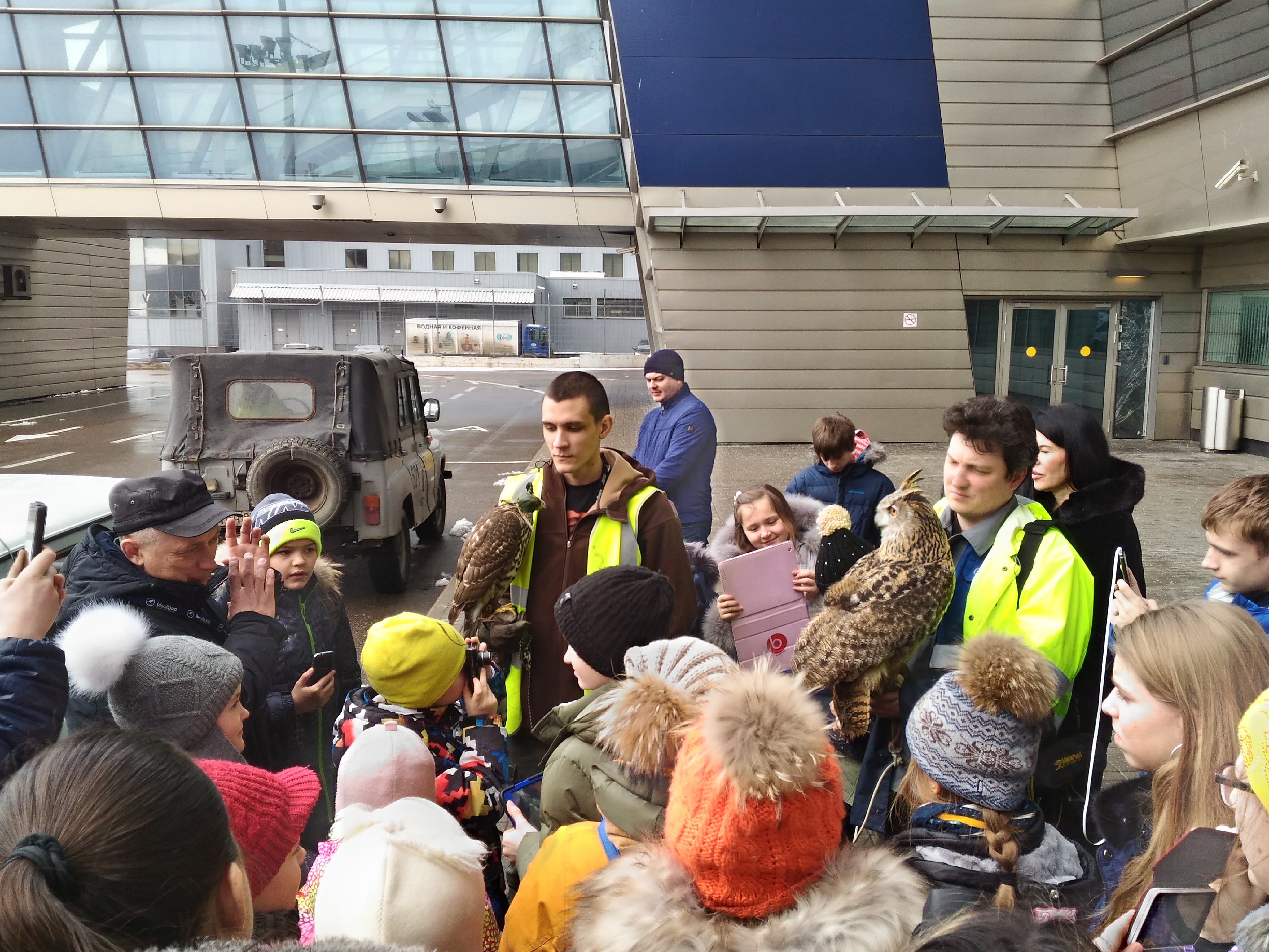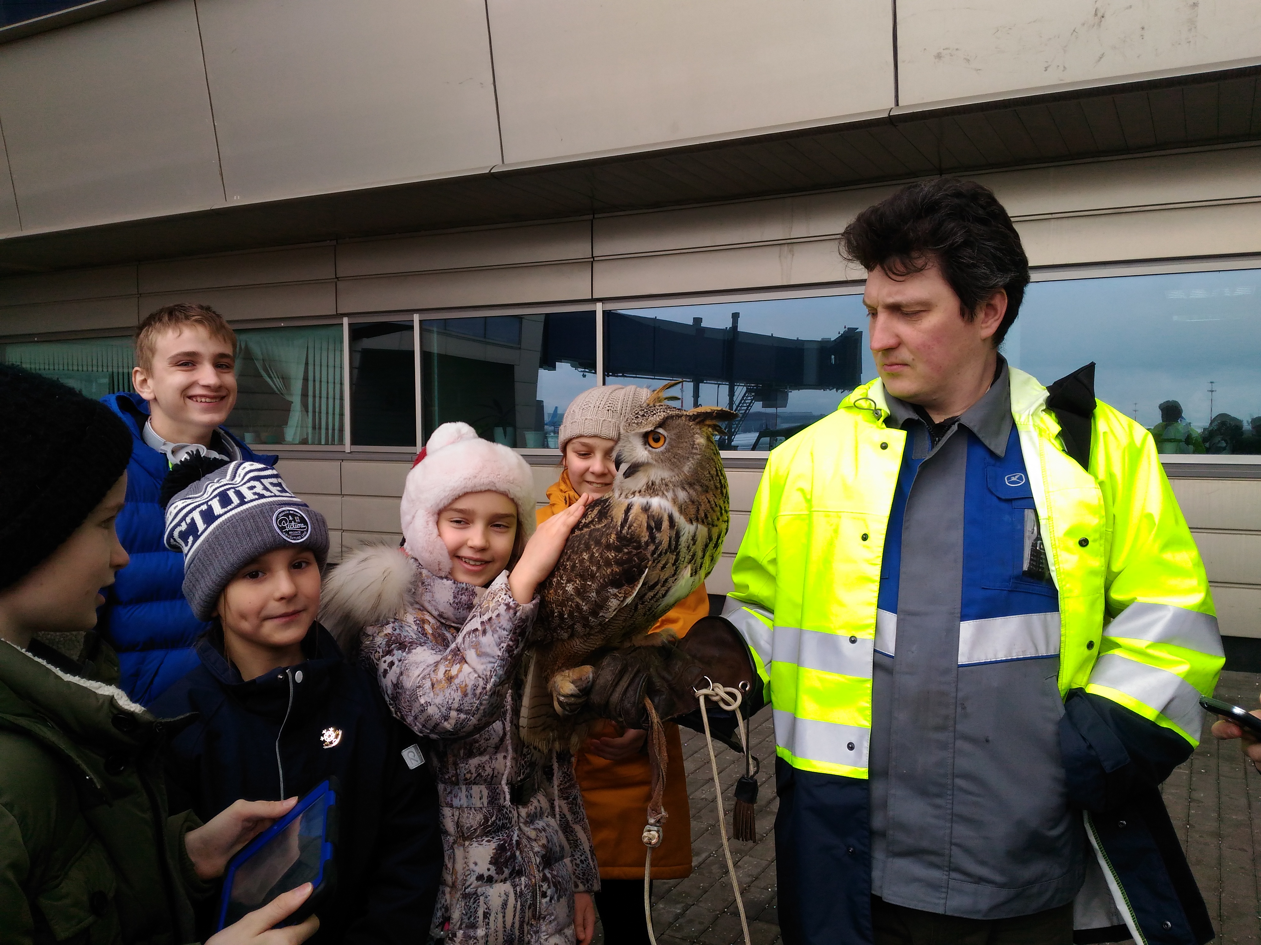 После прохождения спецконтроля, ученики вышли на аэродром, где их встретили сотрудники орнитологической службы, без которой не обходится ни один крупный аэропорт мира. Небольшая бригада специалистов обеспечивает безопасность миллионов пассажиров. Орнитологическая служба Внуково состоит из 4 ловчих птиц, ученикам были продемонстрированы две: ястреб и филин. Их обучают отпугивать птиц, миграция которых проходит через траектории движения самолетов и может привести к авариям.