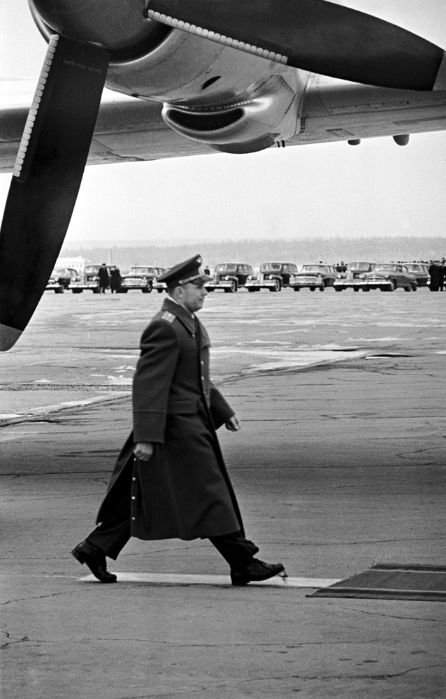 После приземления Юрия Алексеевича Гагарина, никто первоначально не планировал торжественной встречи в Москве с участием руководства страны. Всё решил в последний момент Первый секретарь ЦК КПСС и Председатель Совета Министров СССР Никита Сергеевич Хрущёв. В аэропорту Юрия Гагарина ожидал грандиозный приём. Для аэропорта Внуково это особенно знаменательная дата, именно к нам прилетел первый человек, побывавший в космосе. Огромная толпа народа, журналисты. Самолёт с эскортом торжественным строем прошли над центром Москвы, над Красной площадью, после чего лайнер произвёл посадку в аэропорту Внуково. Самолёт подрулил к центральному зданию аэропорта. И вот, первый в мире космонавт, советский майор Юрий Гагарин широко шагает по ковровой дорожке от трапа самолёта к установленной у кромки взлётного поля правительственной трибуне.