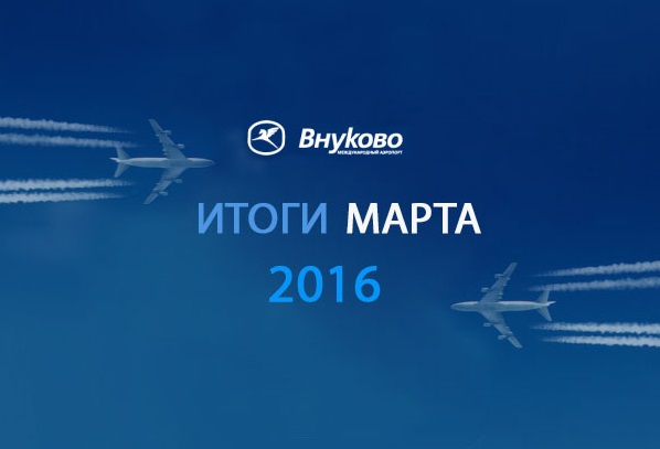 Знаковым событием марта стало начало оперирования во Внуково с периода весенне-летней навигации 2016 года авиакомпаний группы «Аэрофлот», интегрированных под объединенным брендом «Россия». В результате операционной деятельности авиакомпании «Россия» маршрутная сеть аэропорта должна получить развитие как за счет внутренних, так и международных перевозок. В конце марта перевозчик уже выполнял рейсы по направлениям: Краснодар, Ларнака, Махачкала, Минеральные Воды, Ницца, Оренбург, Пафос, Ростов-на-Дону, Санкт-Петербург и Сочи.