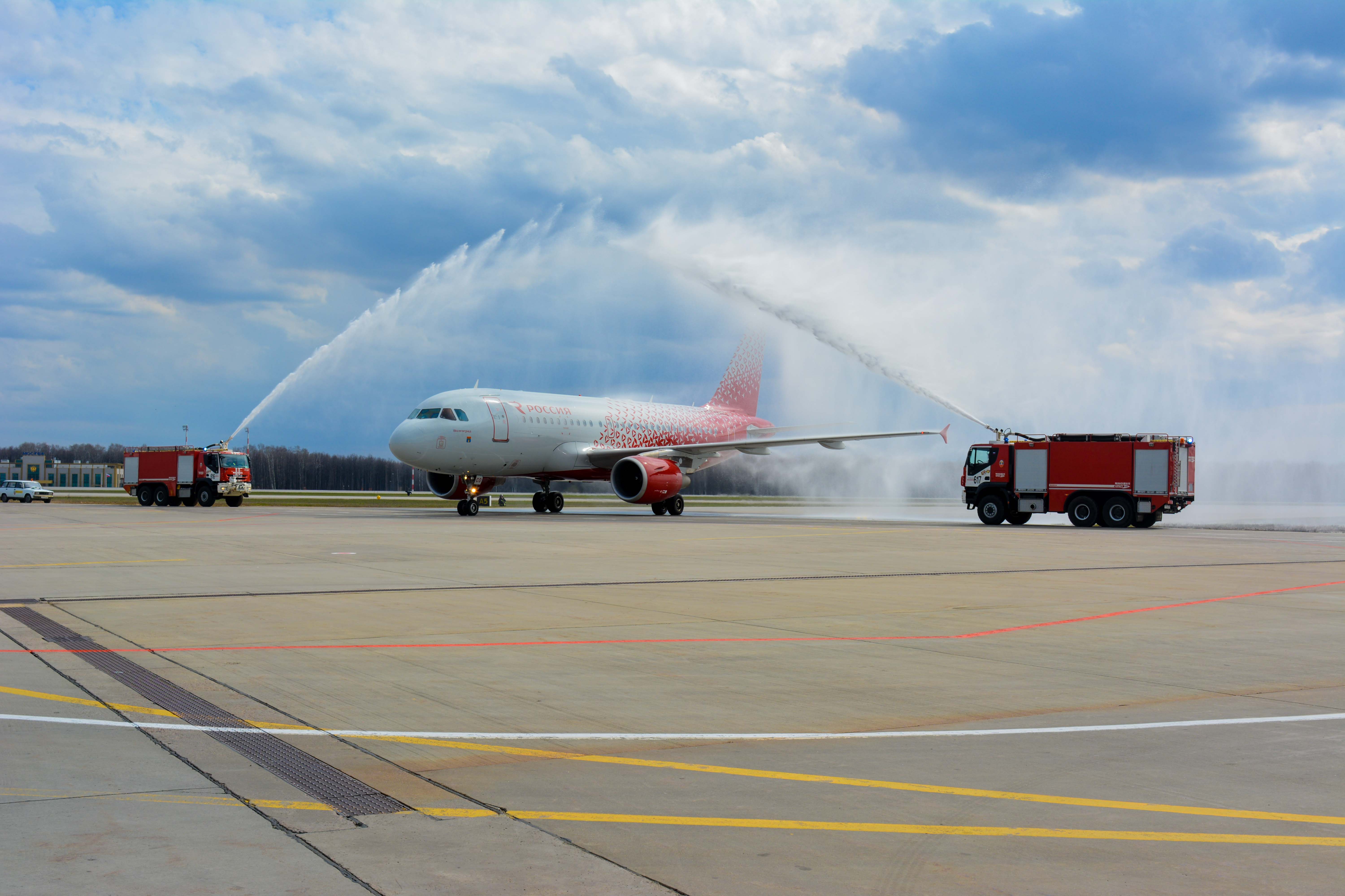 Самолет с бортовым номером VQ-BCO из Санкт-Петербурга (рейс FV6016) приземлился в аэропорту Внуково в 14:20, где его торжественно приветствовали водной аркой из пожарных брандспойтов. Водной аркой традиционно встречают новые самолеты, рейсы и авиакомпании в ведущих аэропортах мира.