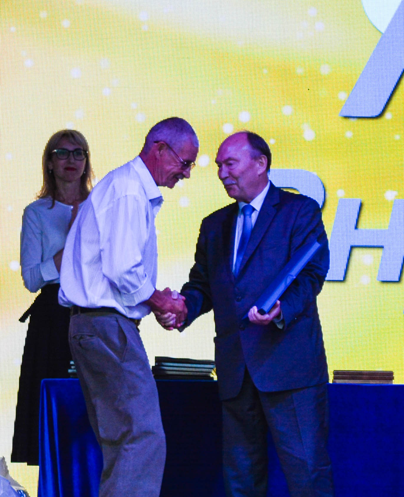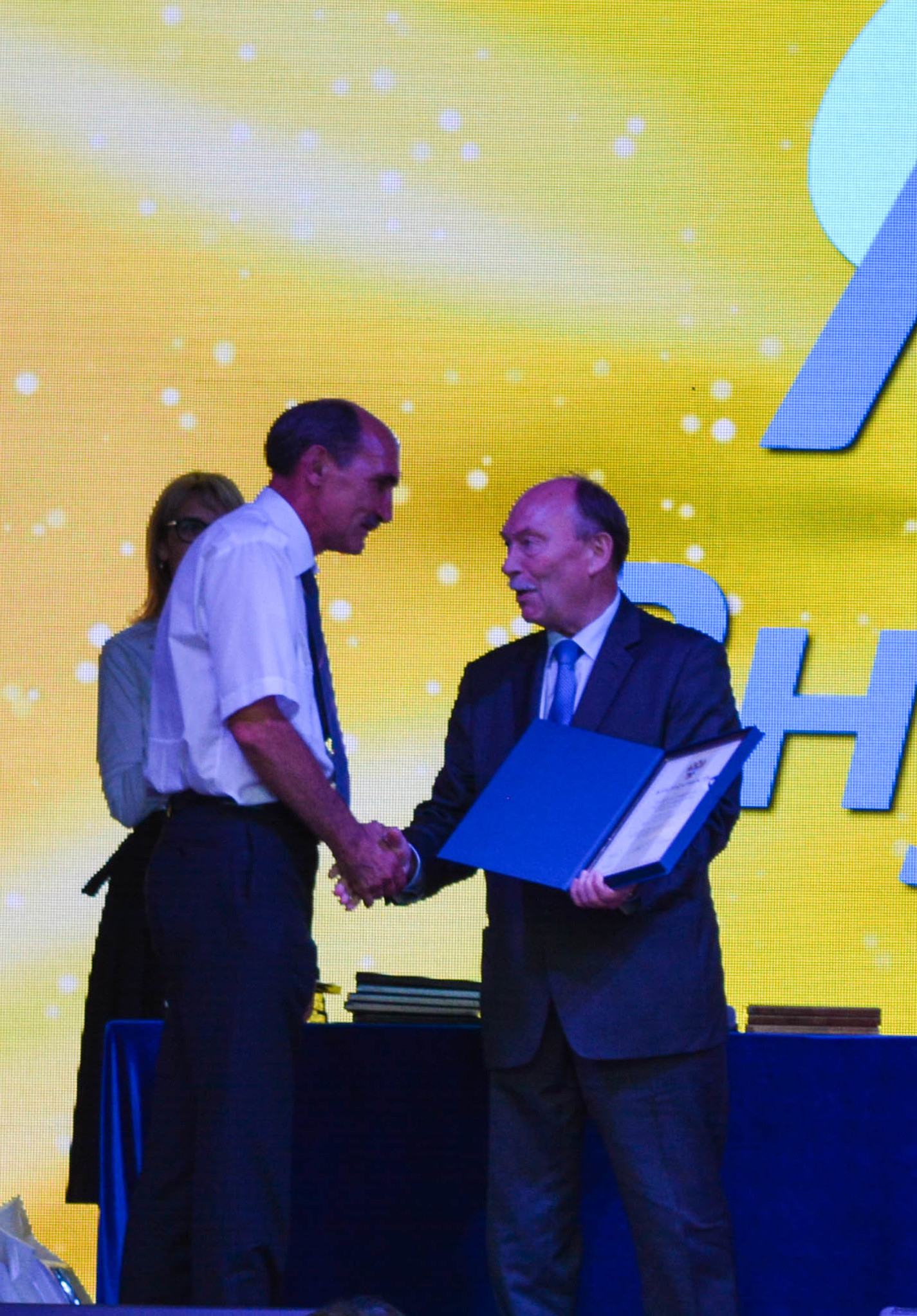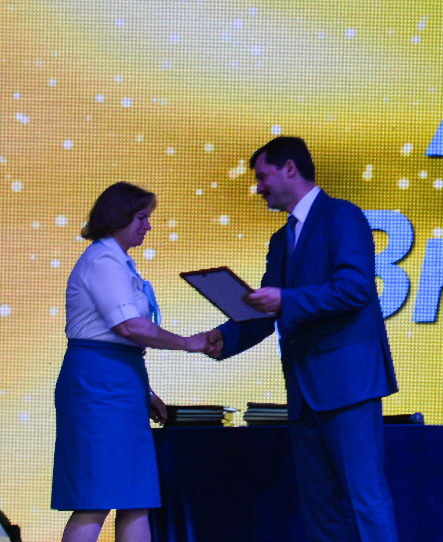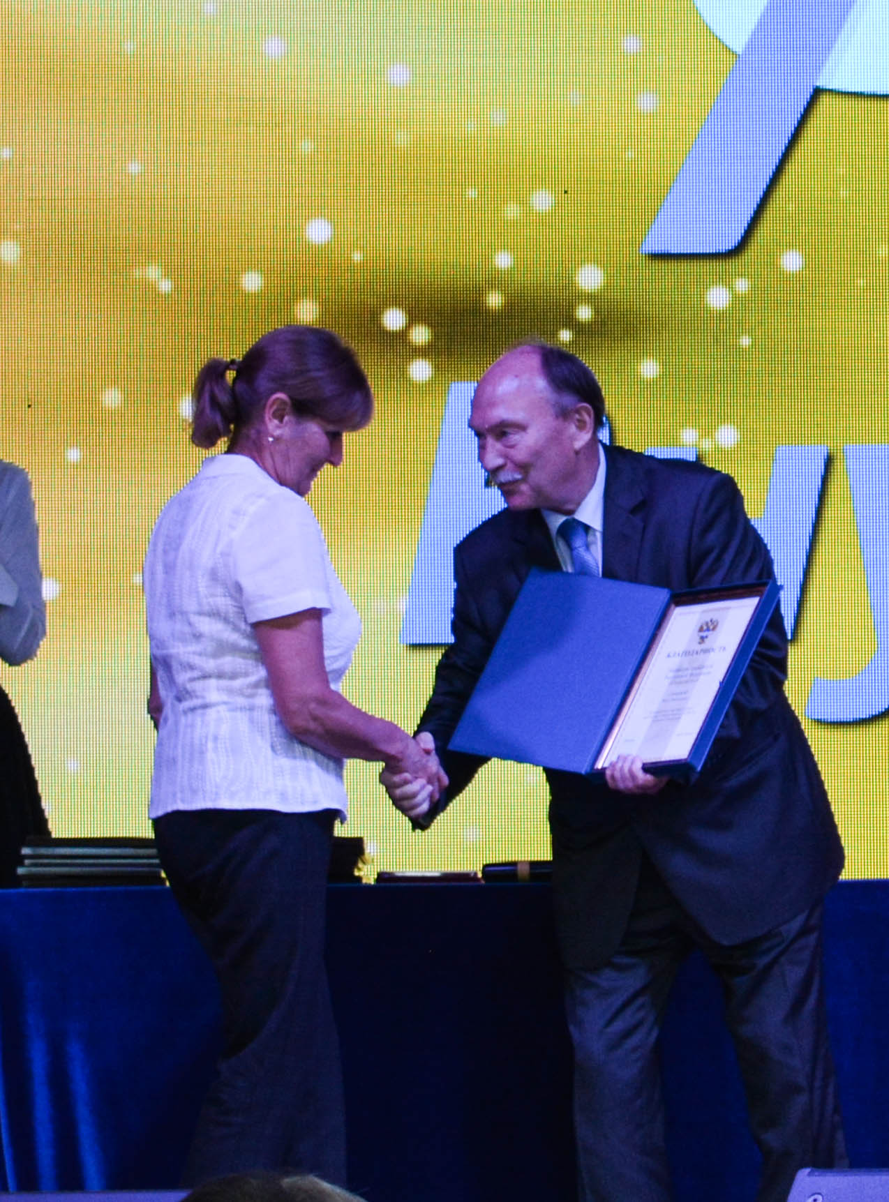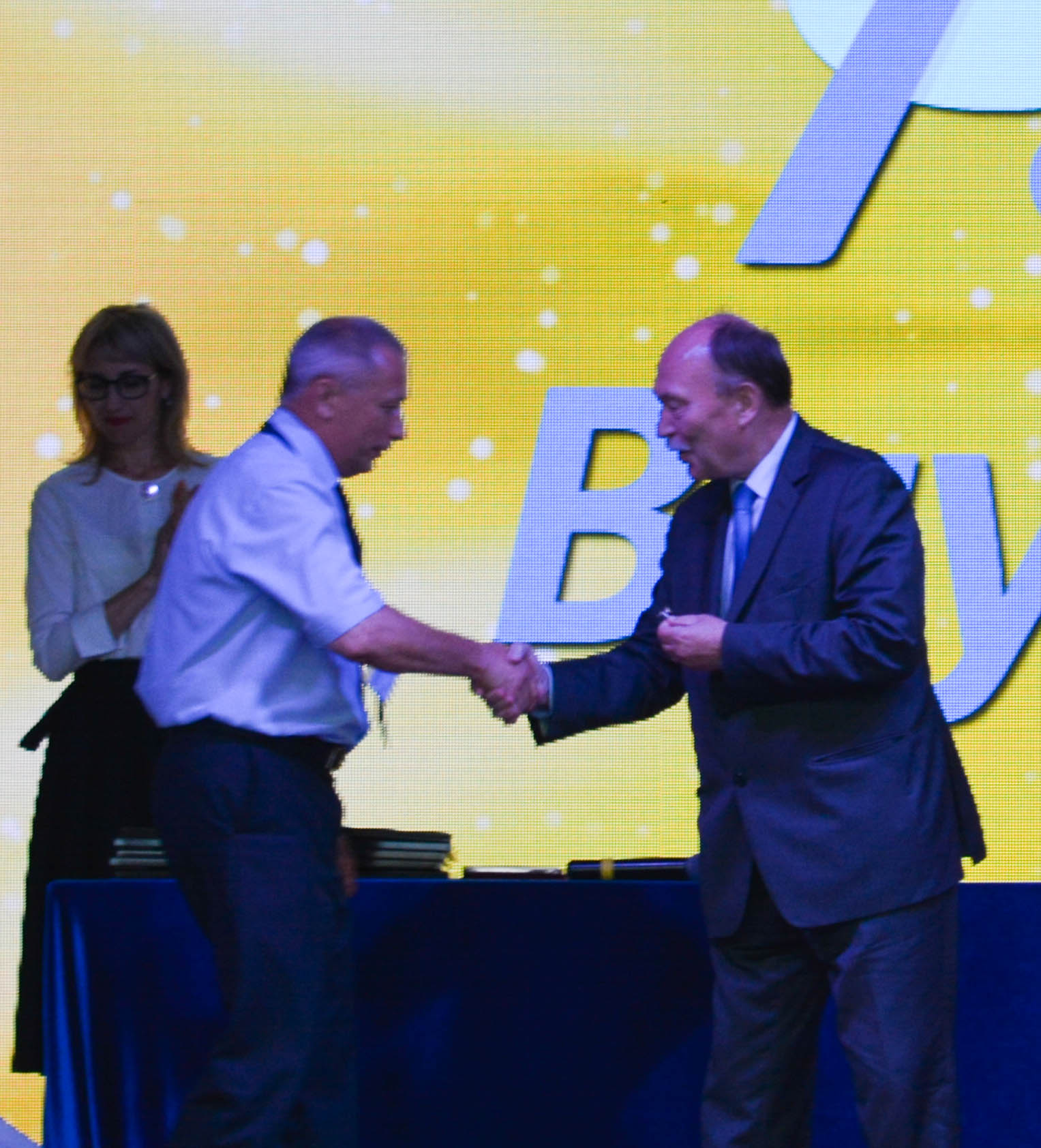 Торжественная часть началась с церемонии награждения работников аэропорта Внуково и Внуковского авиаремонтного завода № 400, которому также в этом году исполнилось 75 лет. Сотрудники получили награды Министерства транспорта Российской Федерации: нагрудные знаки «Почетный работник транспорта России» за достигнутые трудовые успехи и многолетнюю добросовестную работу на воздушном транспорте, нагрудные знаки «Отличник воздушного транспорта», почетные грамоты Министерства транспорта РФ, благодарности министра транспорта РФ, благодарности федерального агентства воздушного транспорта, награды Мэра Москвы.