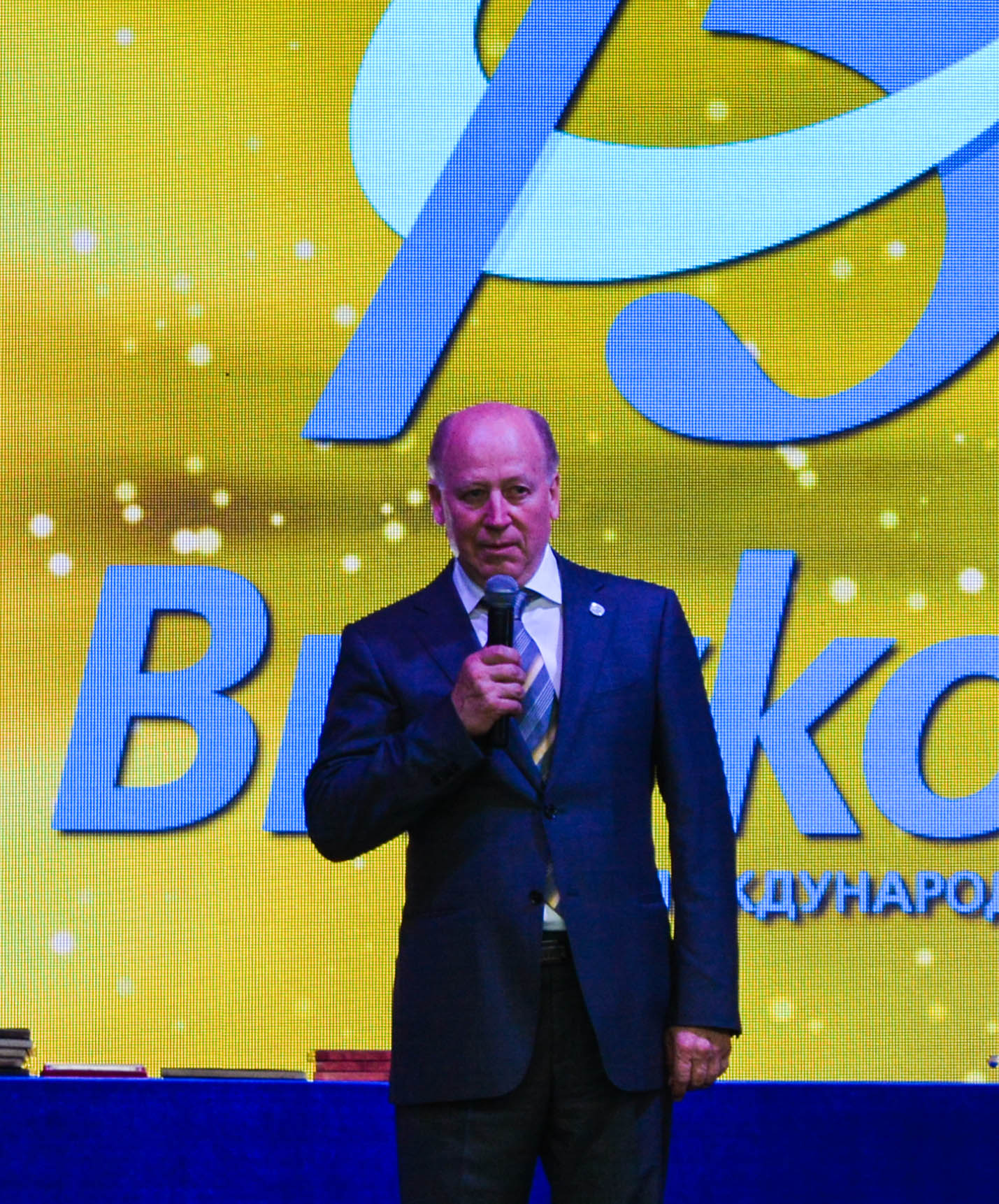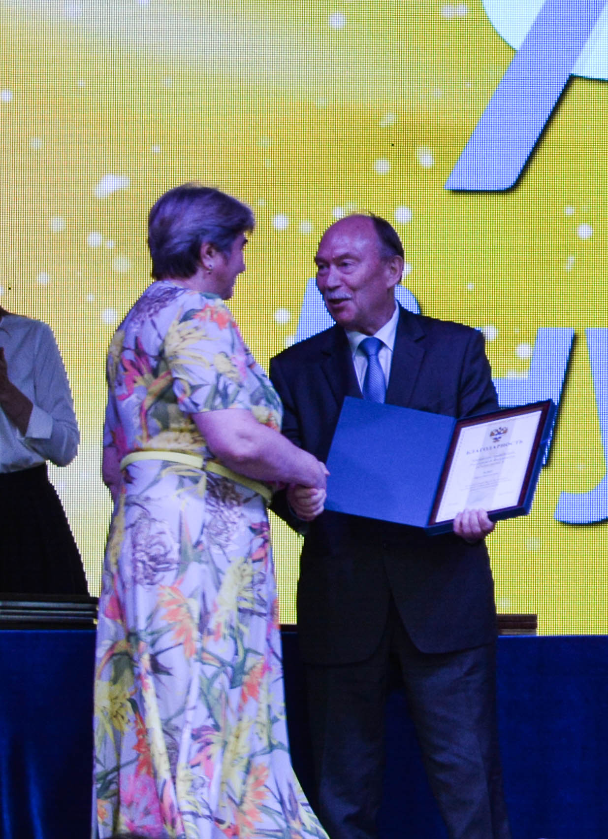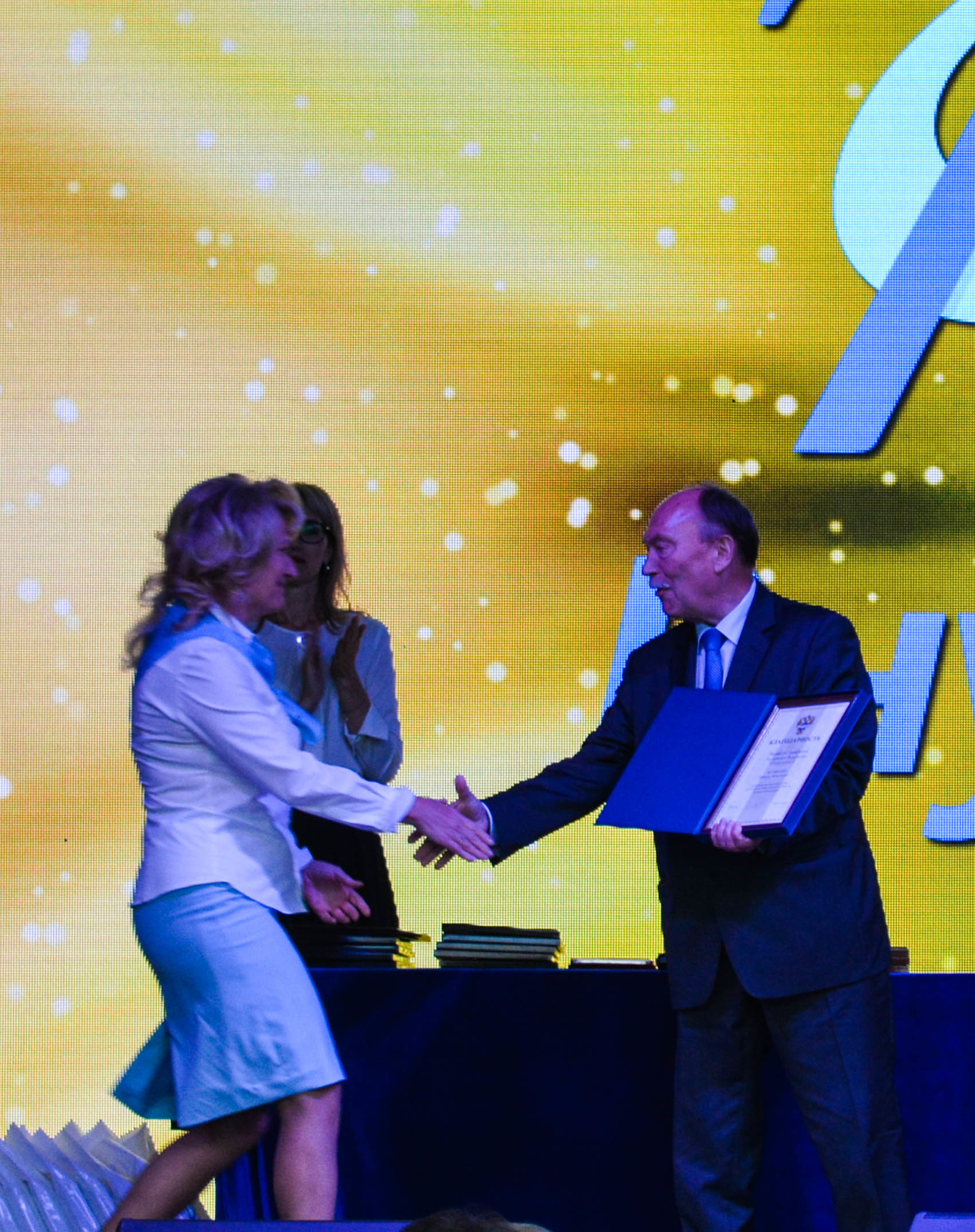 Помощник Президента Российской Федерации Игорь Евгеньевич Левитин зачитал Поздравительный адрес от имени Руководителя Администрации Президента Российской Федерации Сергея Борисовича Иванова.