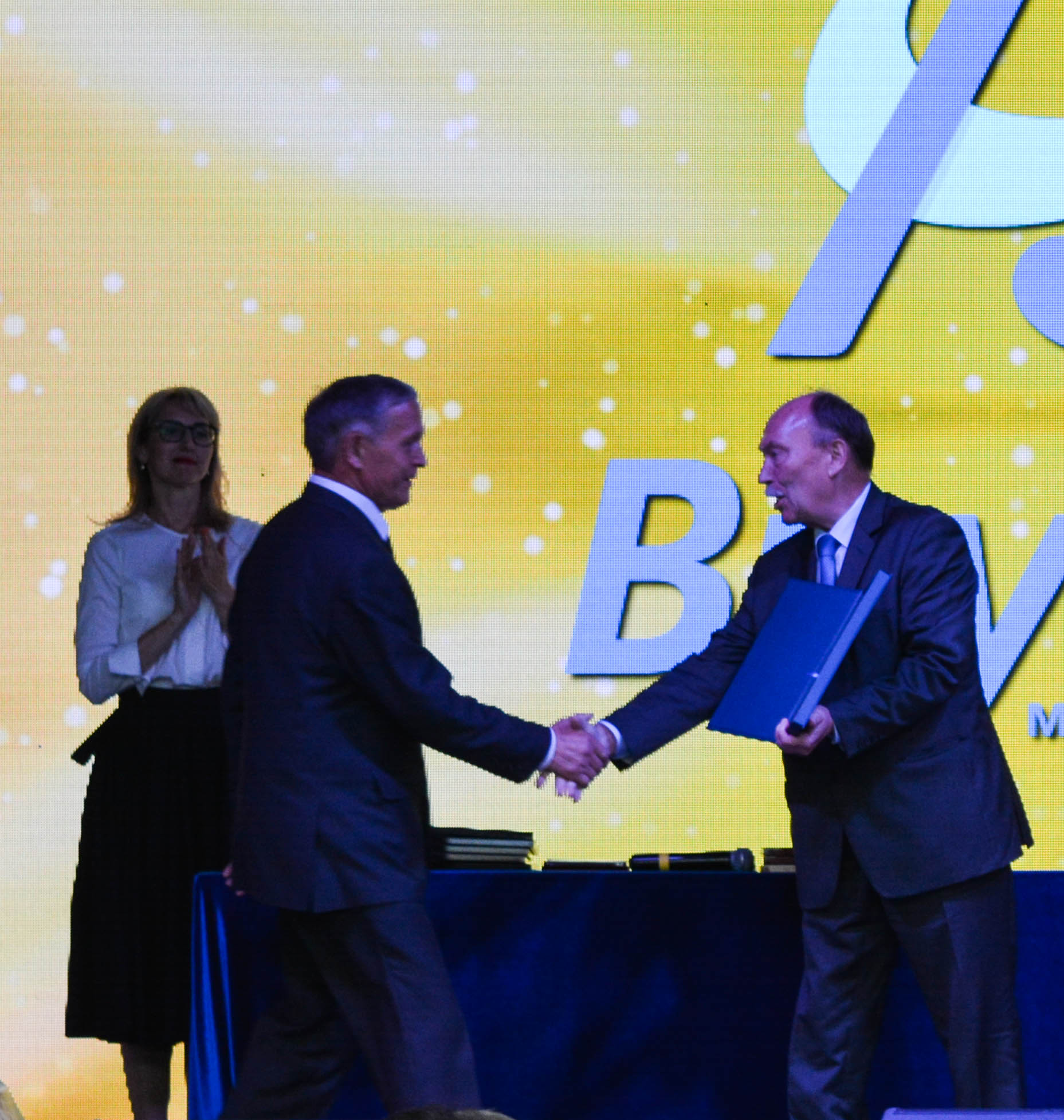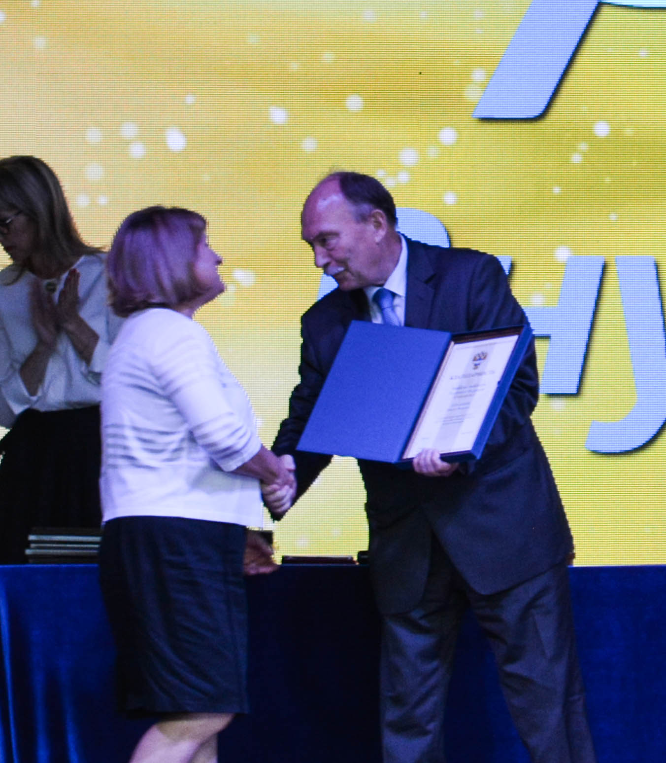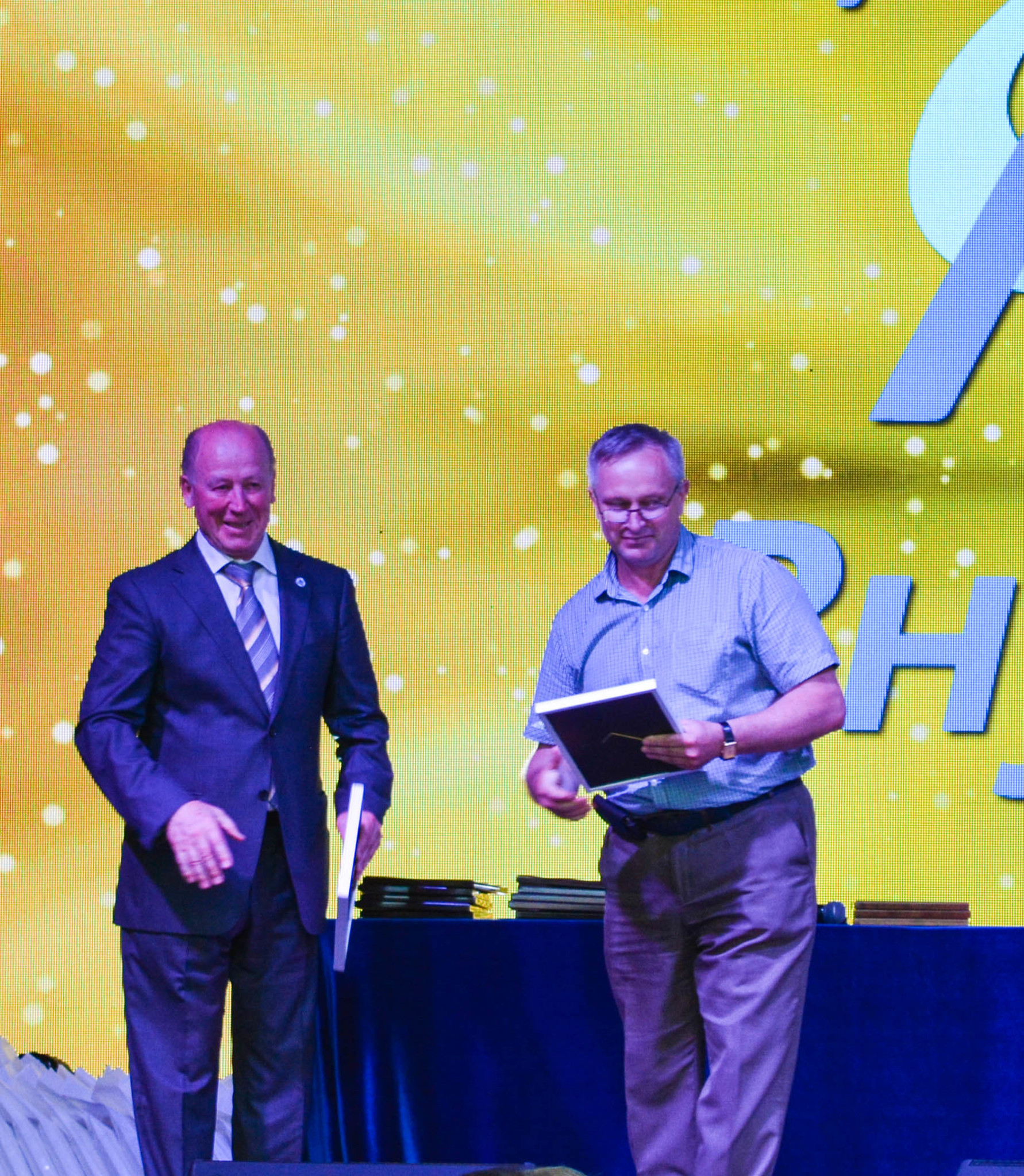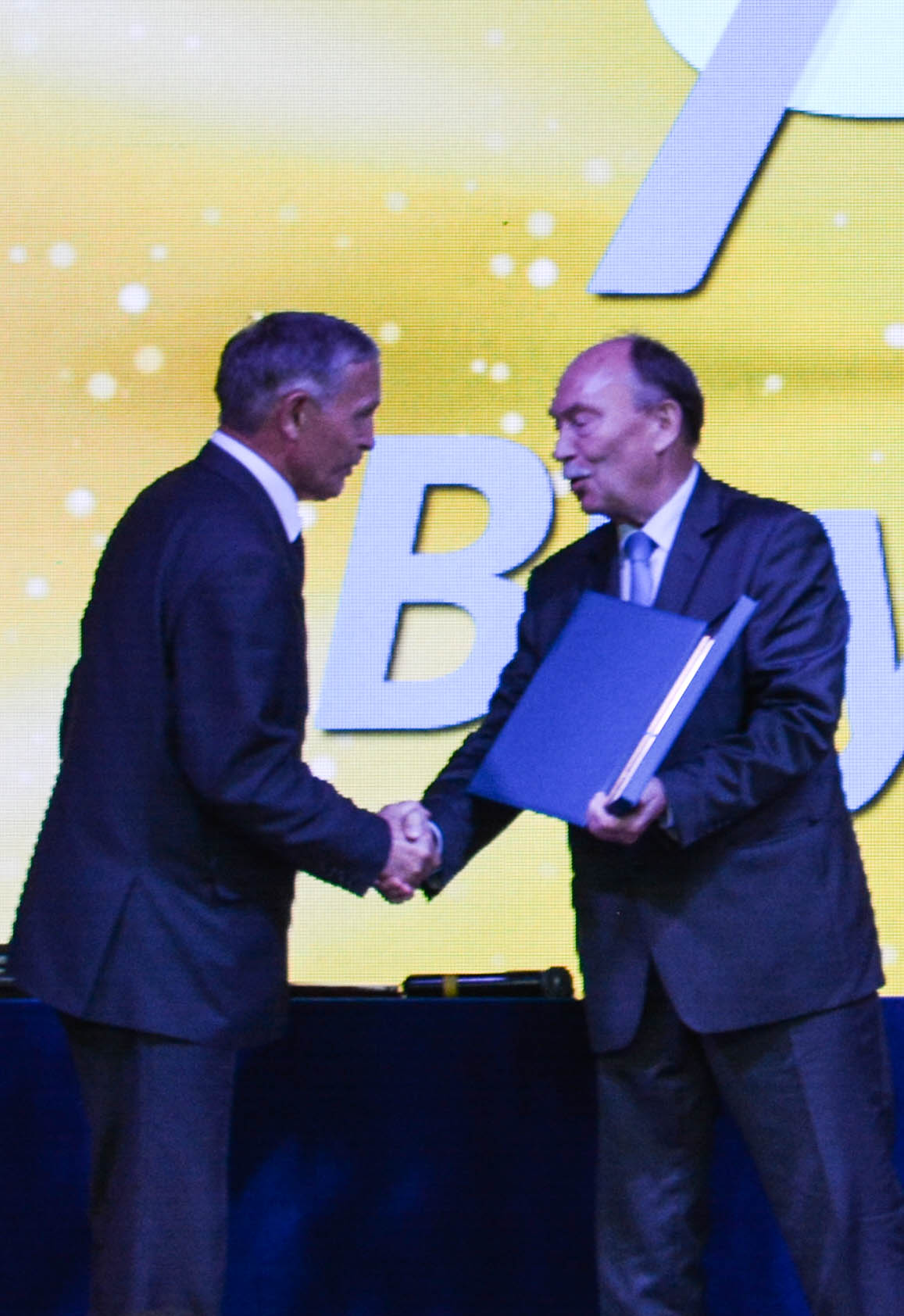 Помощник Президента Российской Федерации Игорь Евгеньевич Левитин зачитал Поздравительный адрес от имени Руководителя Администрации Президента Российской Федерации Сергея Борисовича Иванова.