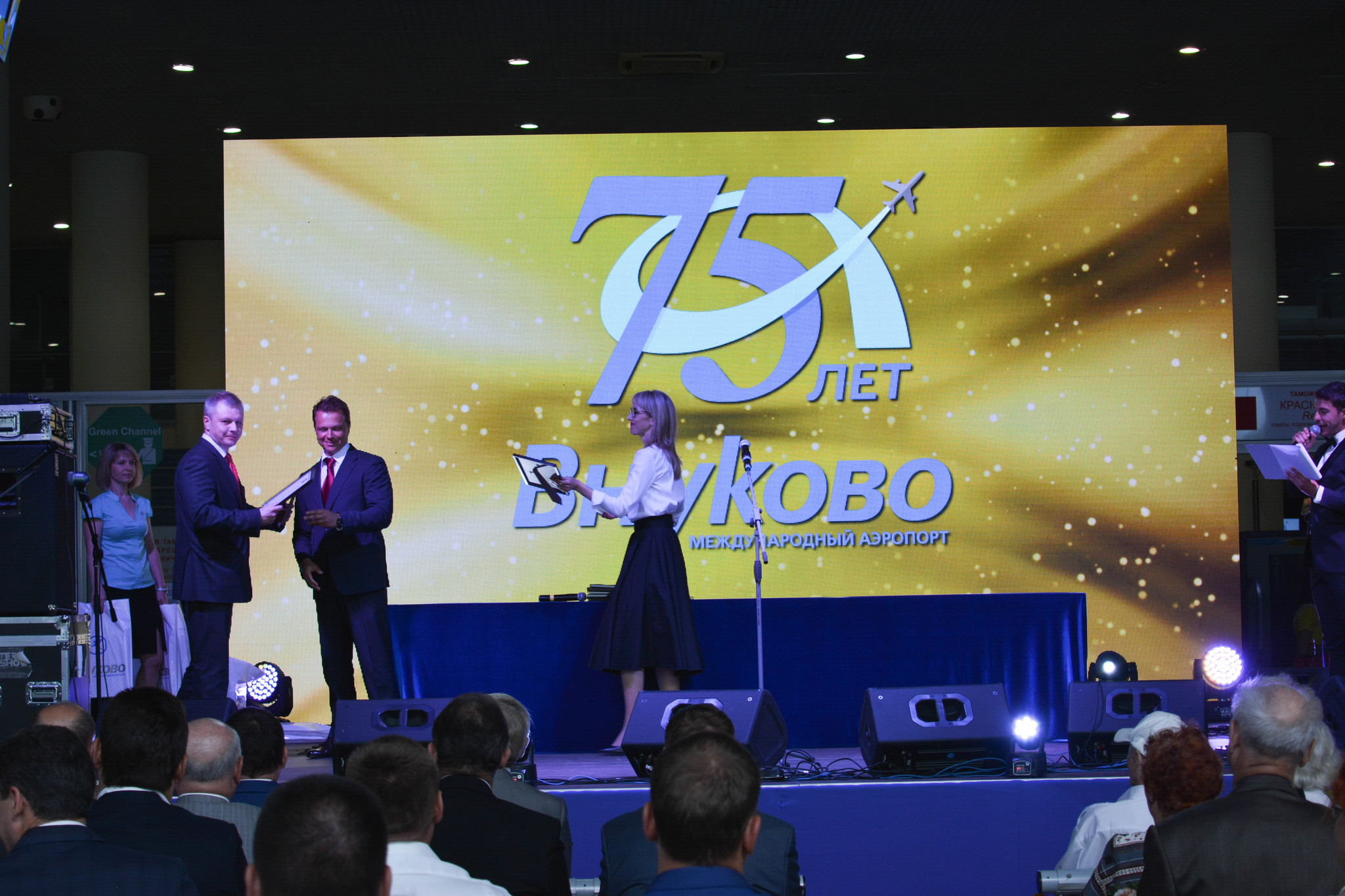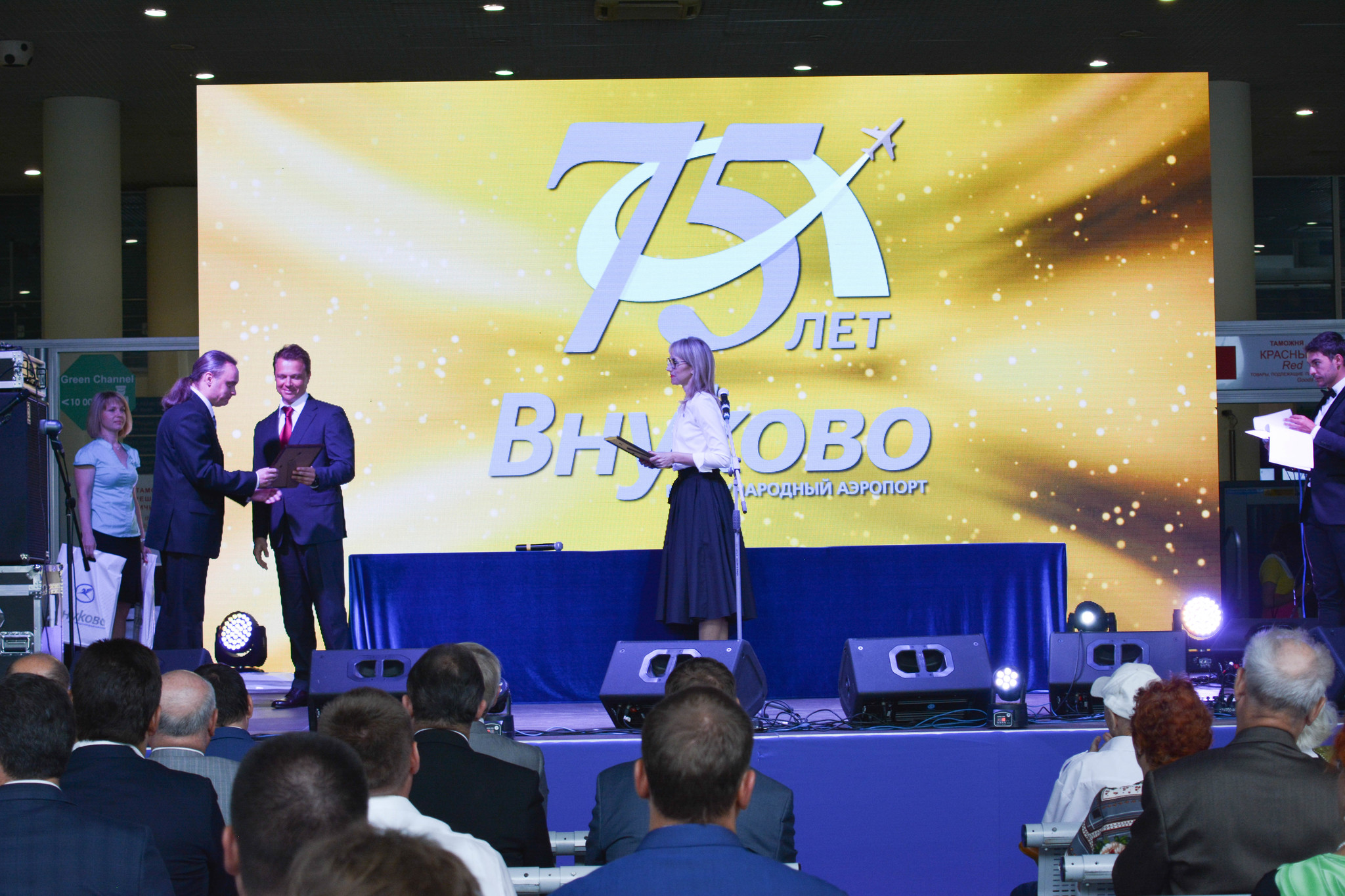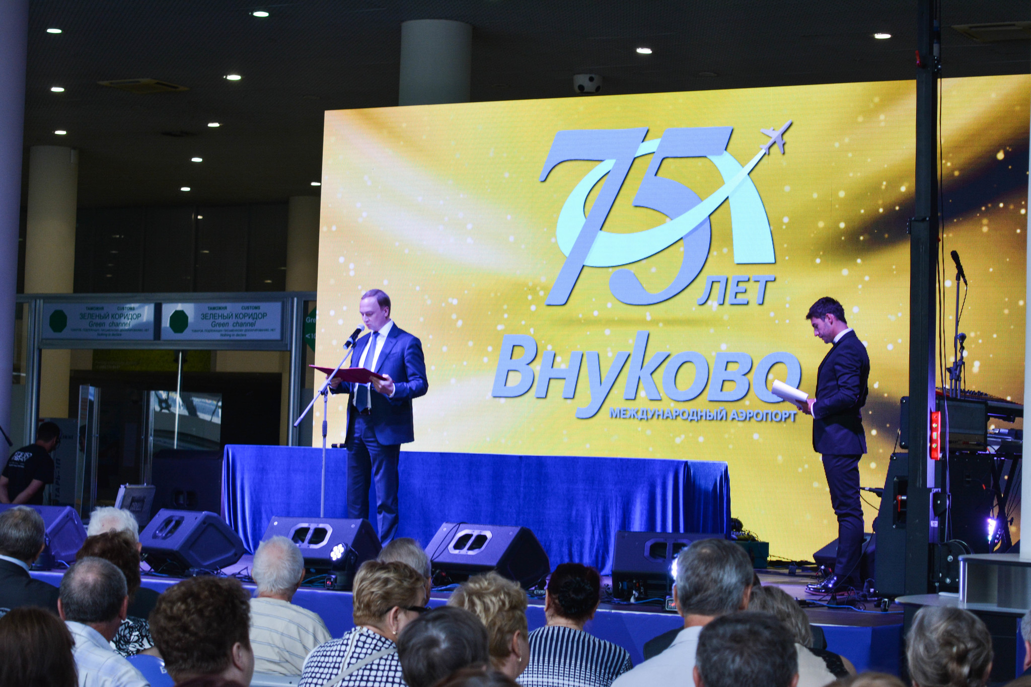 В этом году Международный аэропорт Внуково отмечает свой юбилей — 75 лет назад была принята в эксплуатацию 1-я очередь сооружений аэропорта. 4 июля 2016 года в терминале B состоялись торжественные мероприятия, посвященные Дню рождения аэропорта Внуково.