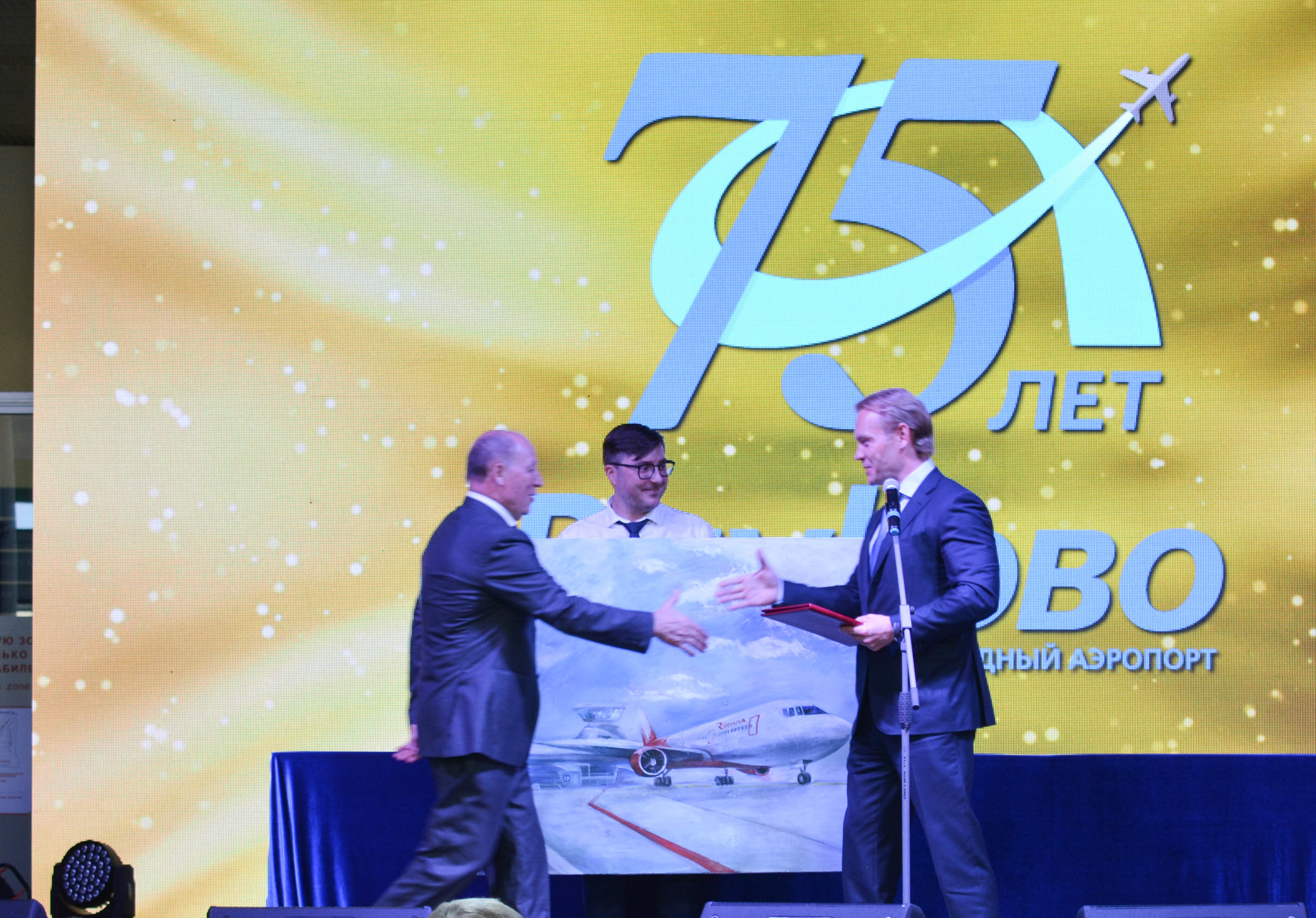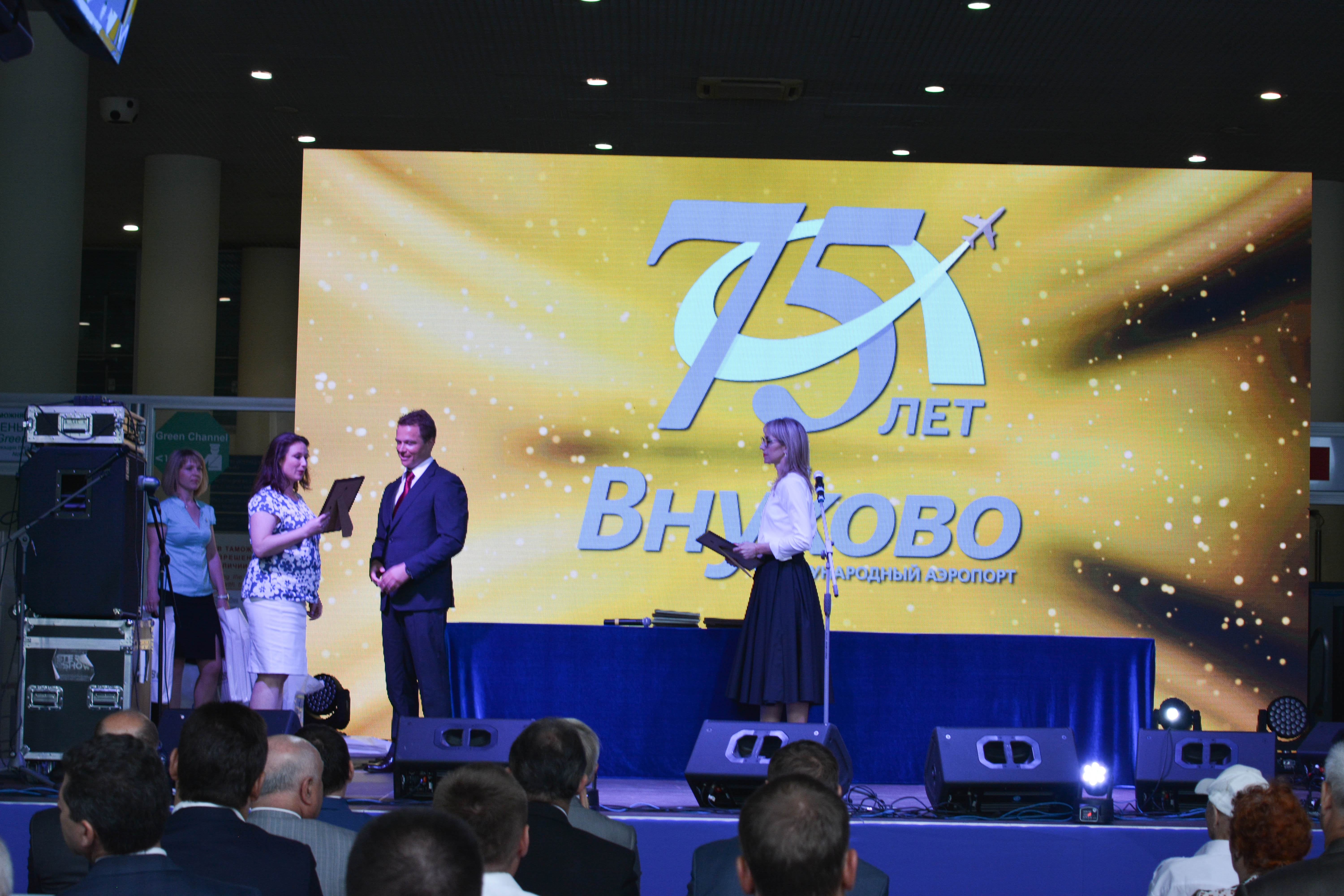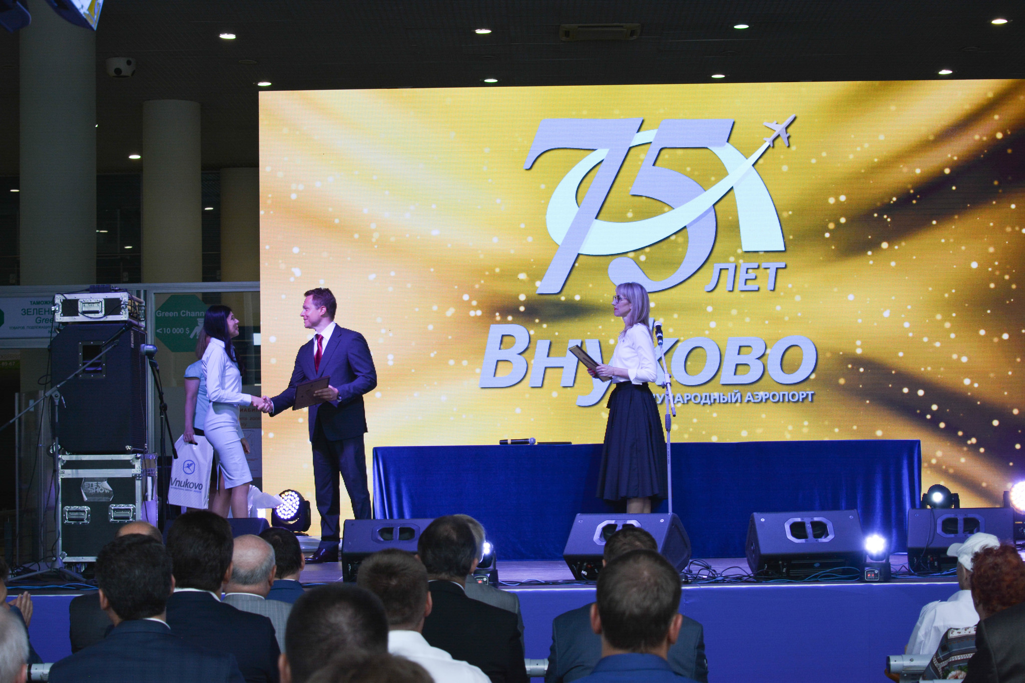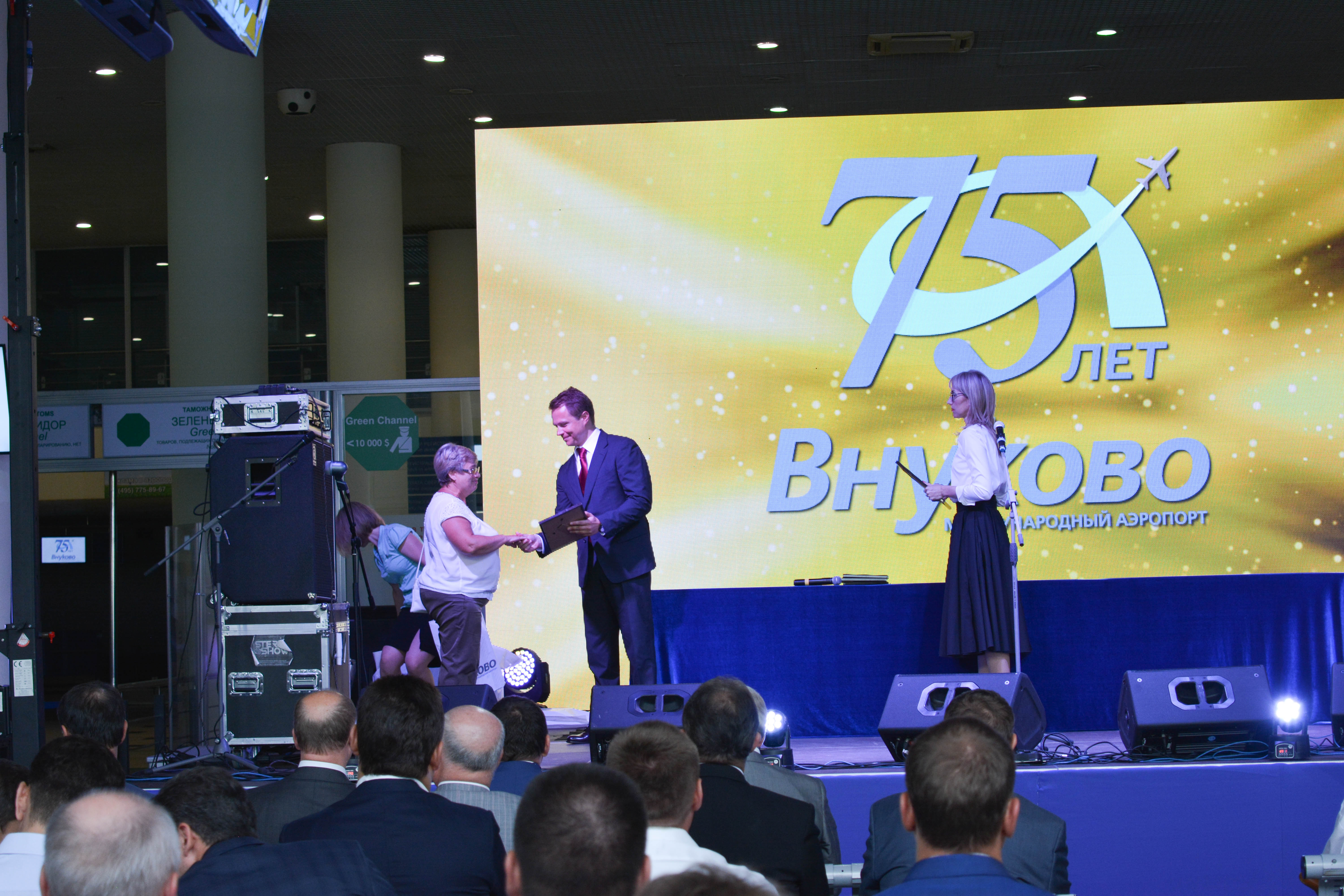 В этом году Международный аэропорт Внуково отмечает свой юбилей — 75 лет назад была принята в эксплуатацию 1-я очередь сооружений аэропорта. 4 июля 2016 года в терминале B состоялись торжественные мероприятия, посвященные Дню рождения аэропорта Внуково.