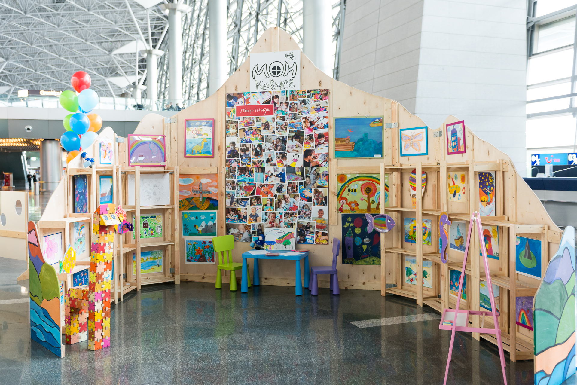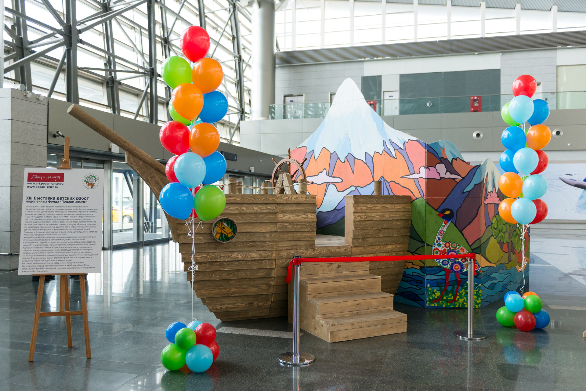 В Международном аэропорту Внуково открылась выставка творческих работ детей с онкологическими и гематологическими заболеваниями «Мой ковчег». Большая часть работ для выставки выполнена детьми из московских больниц, которых опекает фонд «Подари жизнь», а также детьми, закончившими курс лечения.