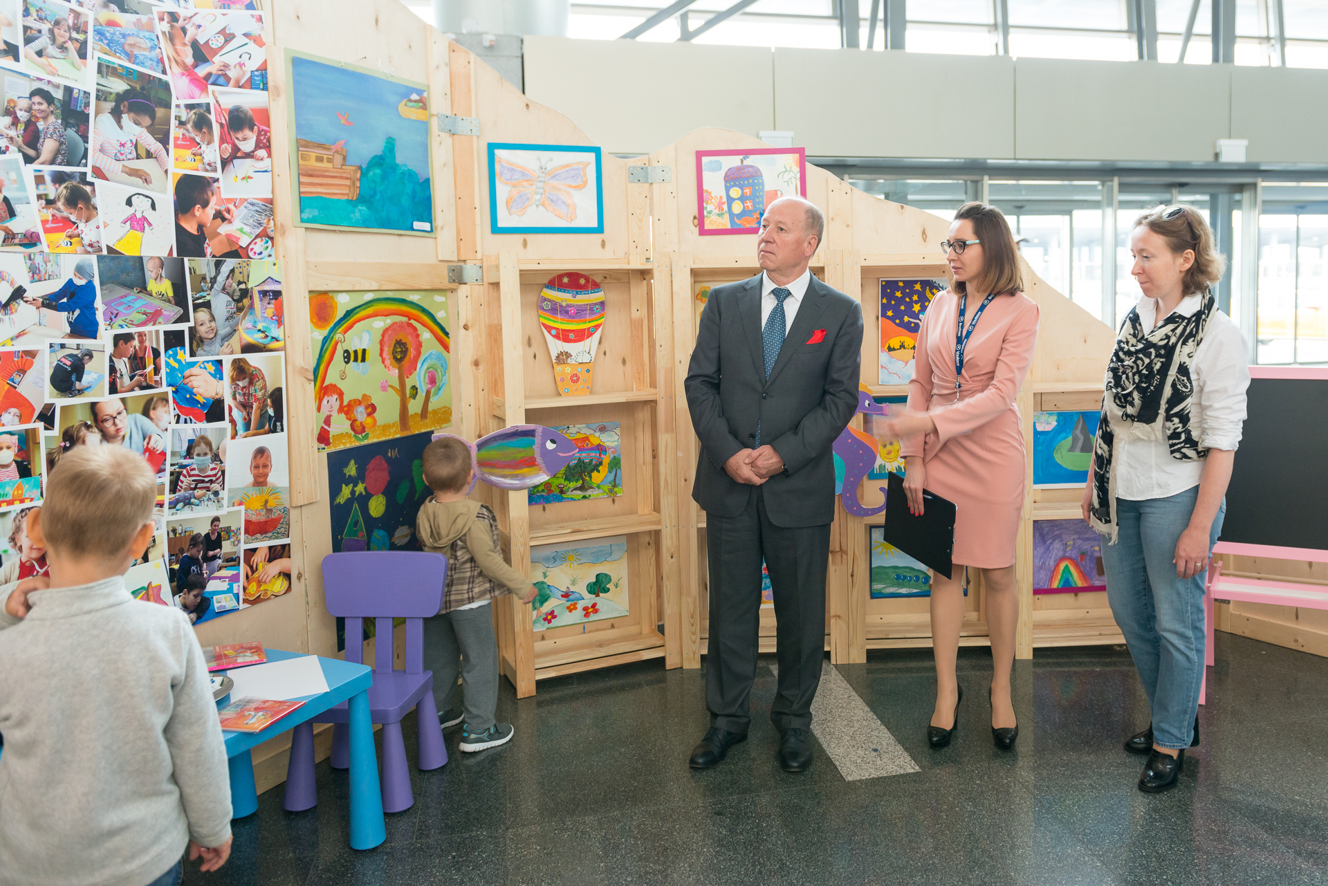 В торжественном открытии выставки приняли участие генеральный директор Международного аэропорта Внуково Василий Егорович Александров, директор по фандрейзингу Арина Викторовна Габа, заведующая детской комнаты аэропорта Внуково Валерия Николаевна Медведева. «Мы являемся свидетелями того, что впервые в истории развития аэропортов фонд „Подари жизнь“ открывает стенд и выставку в аэропорту. Для детей это будет интересно, и мы внесем свой вклад, популяризируя фонд, который помогает больным детям. Эта благородная миссия послужит хорошим стимулом и будет способствовать тому, чтобы обратить внимание общественности на тех, кто нуждается в помощи и поддержке. Спасибо фонду, что выбрали именно нас для размещения этой выставки, которая существенно дополнит эстетику аэропорта и привлечет внимание детей и взрослых к теме онкологических и других заболеваний», - отметил В.Е. Александров.