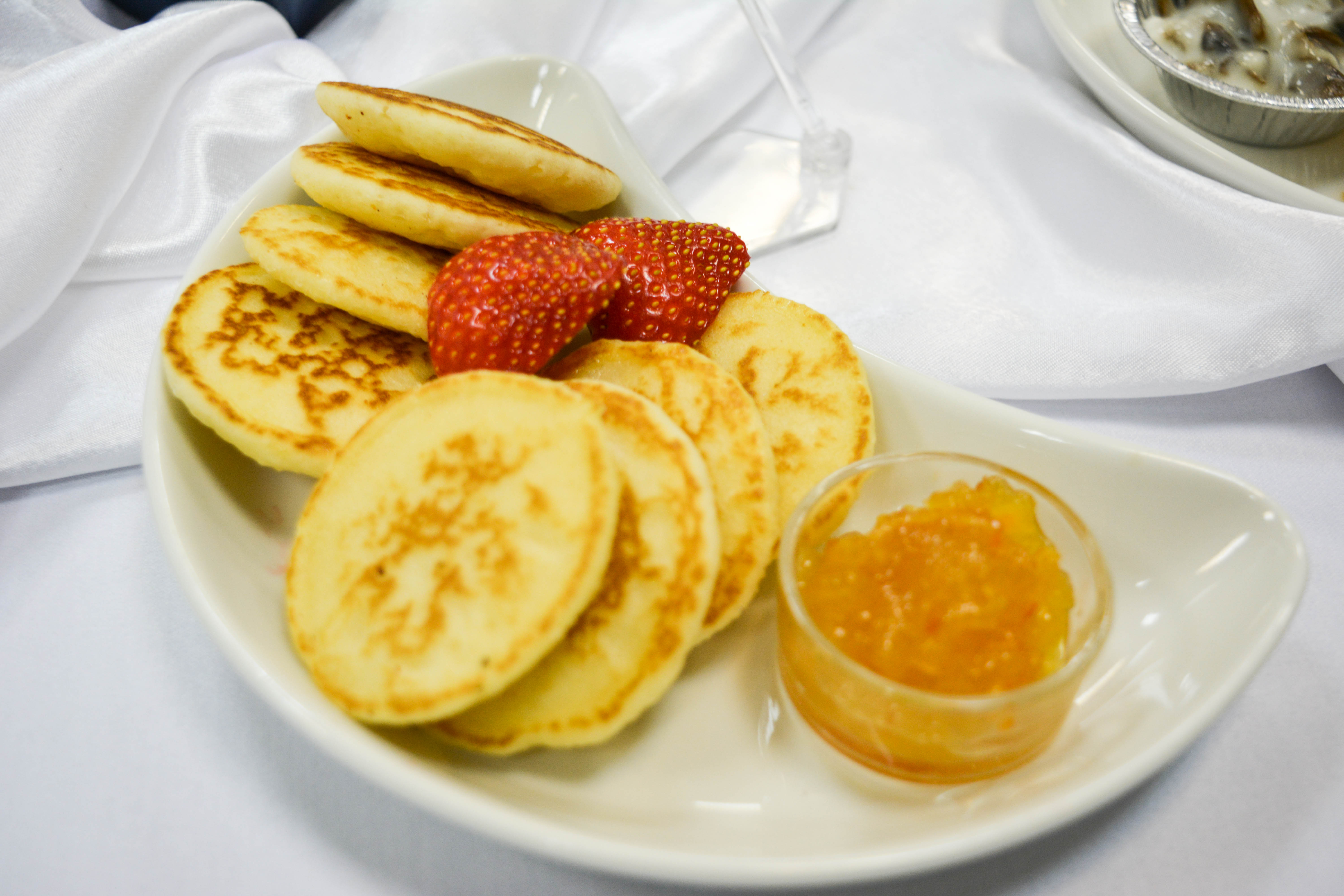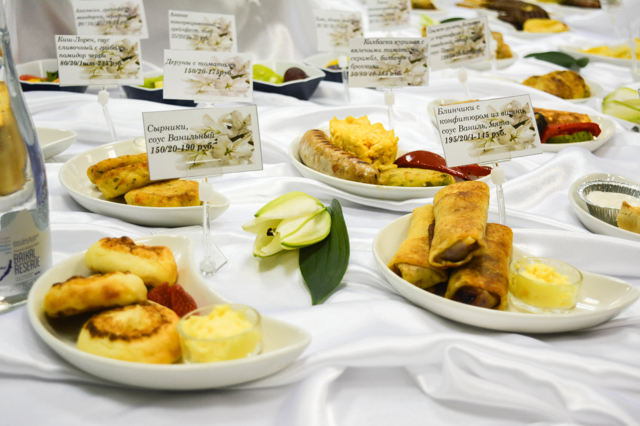 За основу меню «завтрак» принята классическая концепция с некоторыми добавлениями. Так, в классические завтраки, состоящие из омлетов или блинчиков, эксперты и повара «Внуково Кейтеринг» предложили добавить картофельные вафли.
