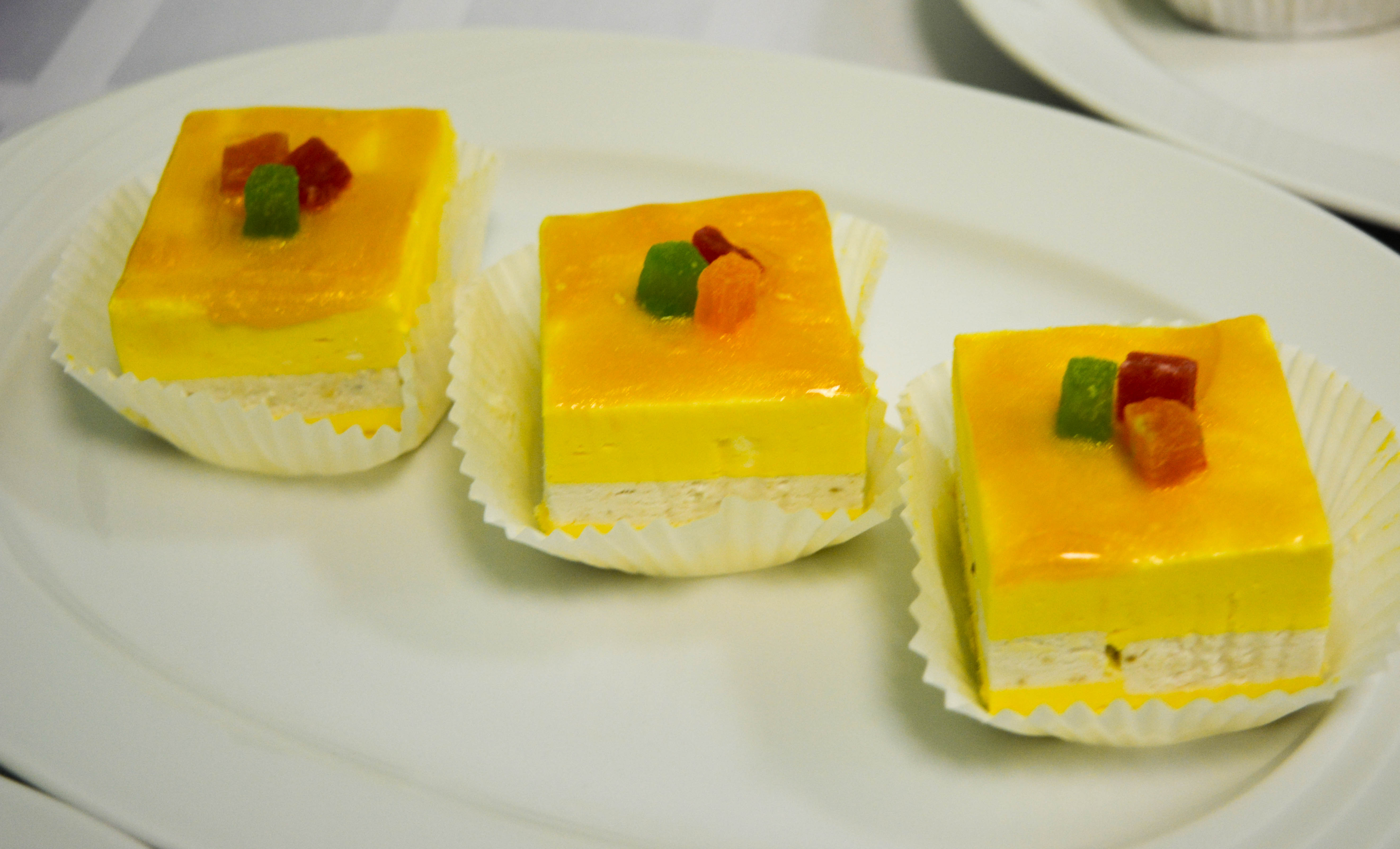 В обновленном меню представлена абсолютно новая линейка кондитерских изделий, а также новый ассортимент десертов для бизнес-класса. В него вошли пирожное чизкейк с клубникой, морковный десерт, серия нежных мятно-шоколадных муссов или муссов с бананом, а также различных суфле: из экзотических фруктов, освежающее мятное, и для любителей классики – с вареной сгущенкой. Для эконом-класса представлена новая линейка печенья: с темным шоколадом, ореховой начинкой, карамелью, йогуртом, миндалем или черносливом.