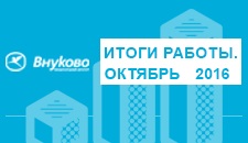 В октябре 2016 года в Международном аэропорту Внуково было обеспечено обслуживание 13 625 рейсов и 1 млн 297 тыс. пассажиров, что выше результата прошлого года на +6,3%. При этом среднее качество загрузки рейсов у авиакомпаний-партнеров было увеличено на +6,4 процентных пунктов.