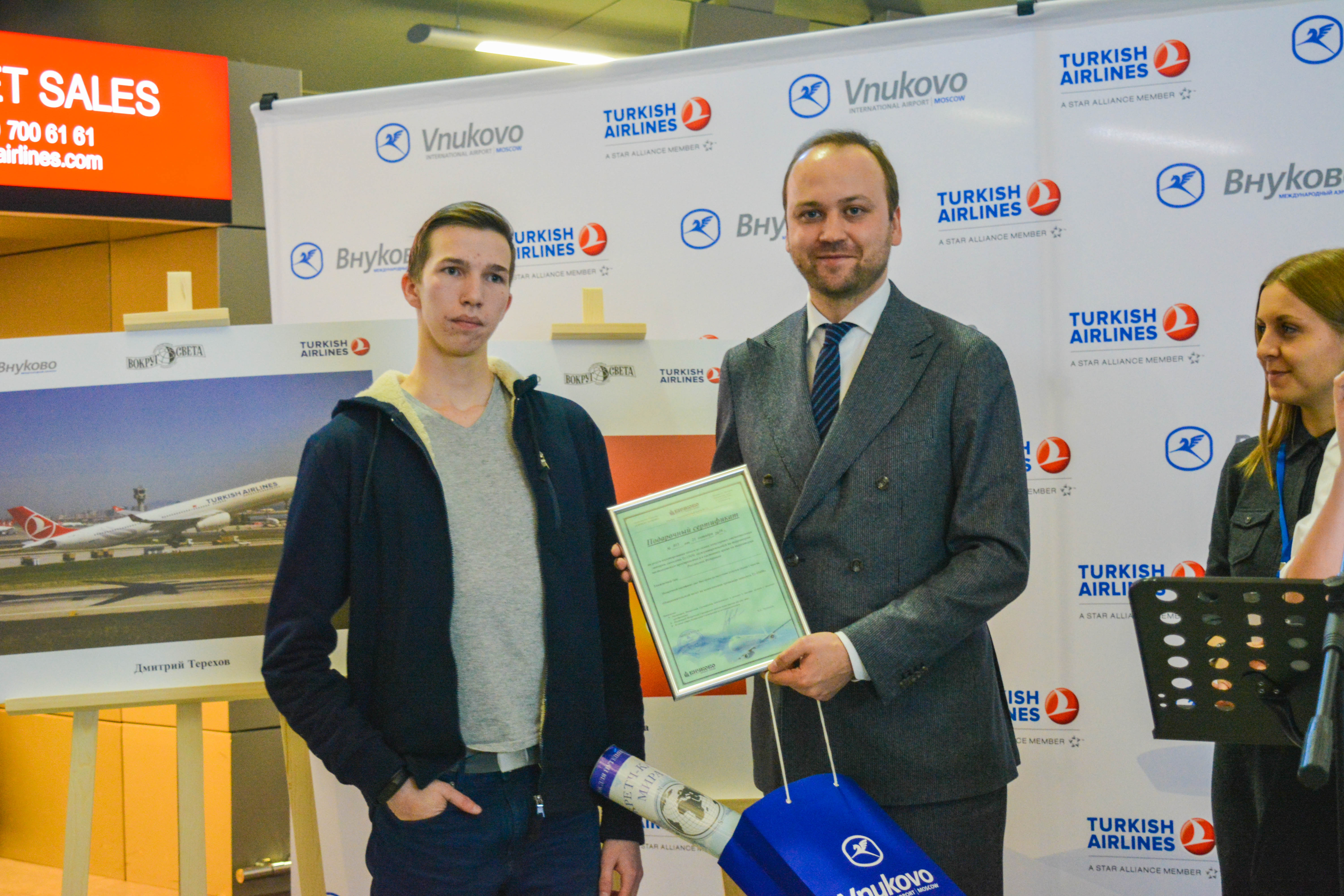 Обладатель первого места получил 2 авиабилета Turkish Airlines в любое направление Турции на его выбор. Участник, занявший второе место, получил годичную подписку на журнал «Вокруг света» и ознакомительный полет на тренажере Ту-154М, обладатель третьего места – подписку на журнал «Вокруг света» на 6 месяцев и фирменные сувениры от аэропорта Внуково.