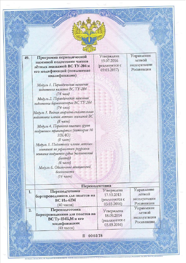 С 20 марта 2017 г. начинаются занятия по курсу первоначальной подготовки бортпроводников.