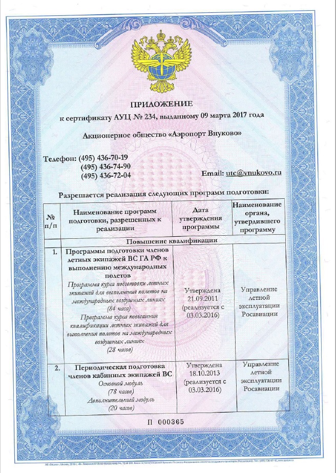 В учебно-тренировочном центре Внуково авиационные специалисты могут пройти обучение по около 50 программам повышения квалификации. В том числе по программе подготовки членов летных и кабинных экипажей.