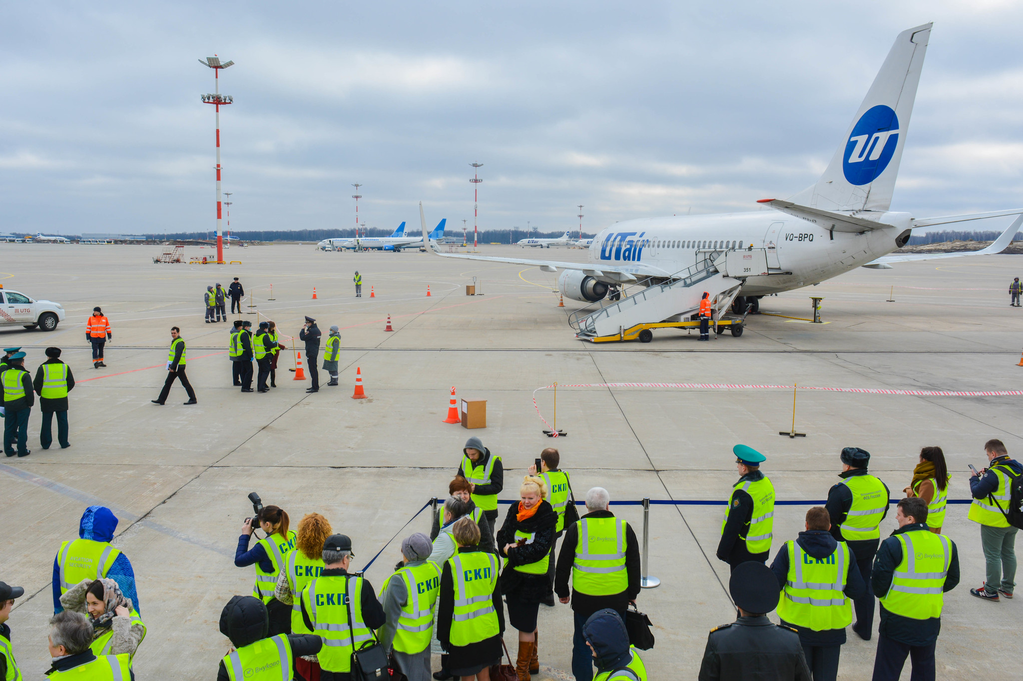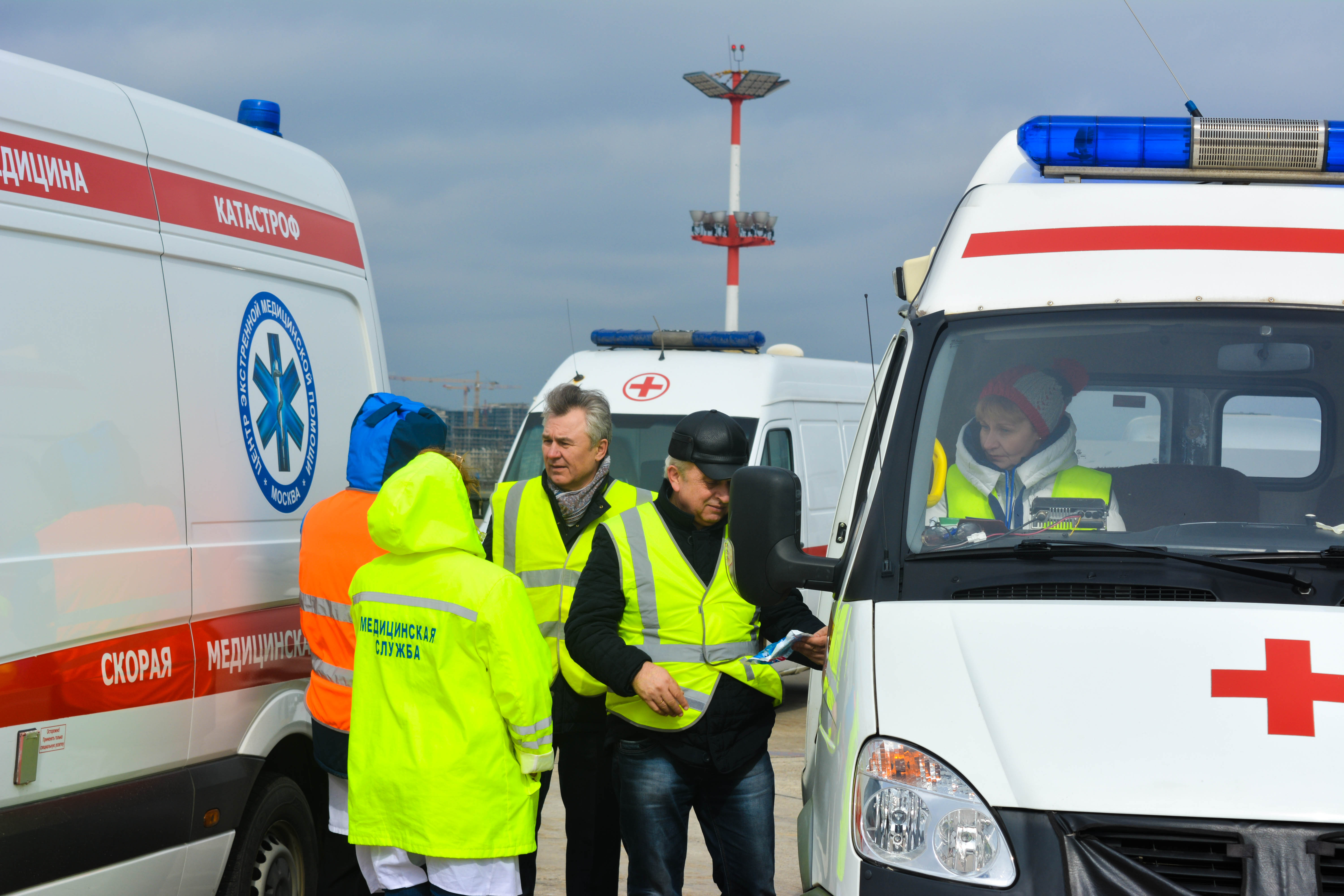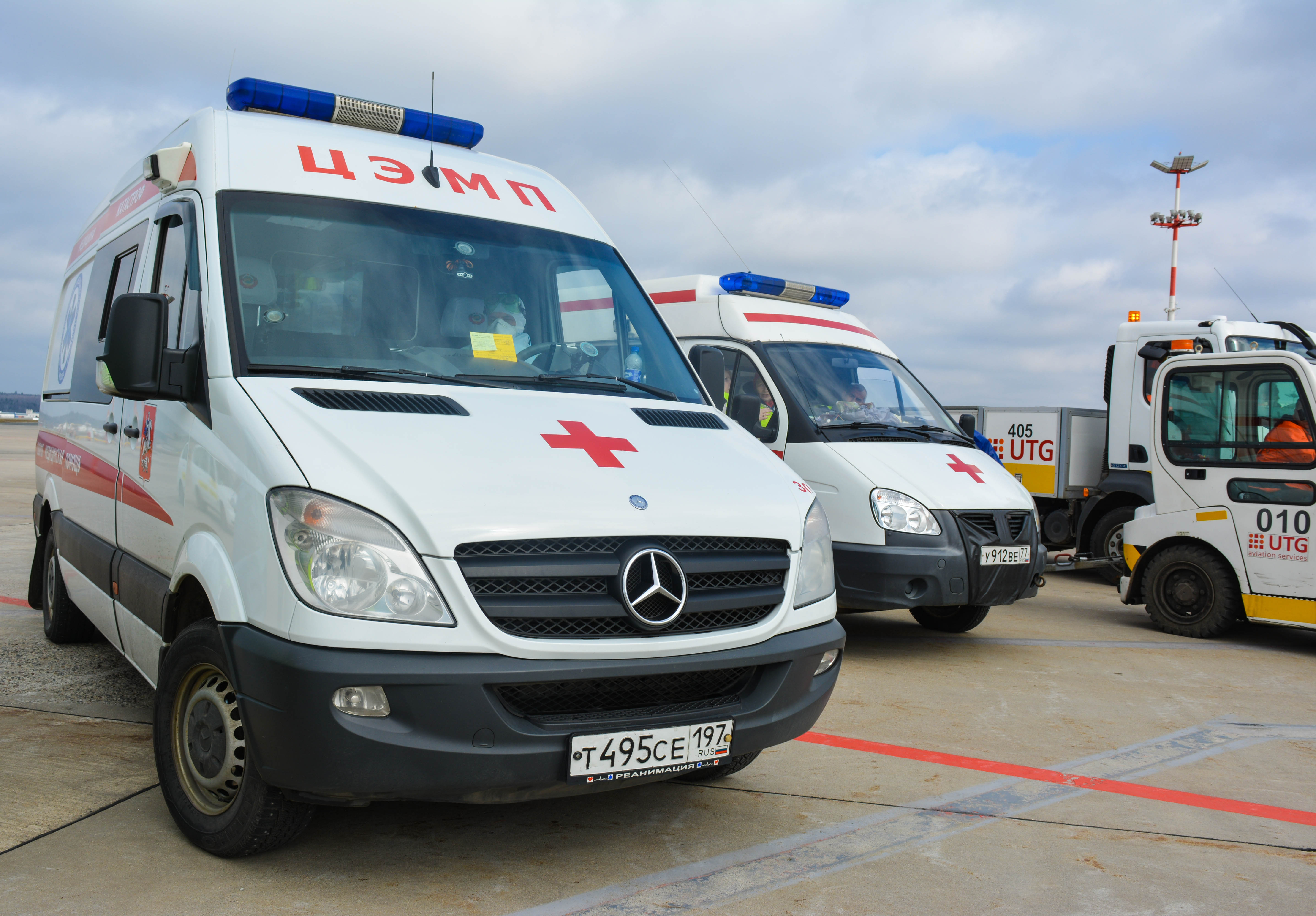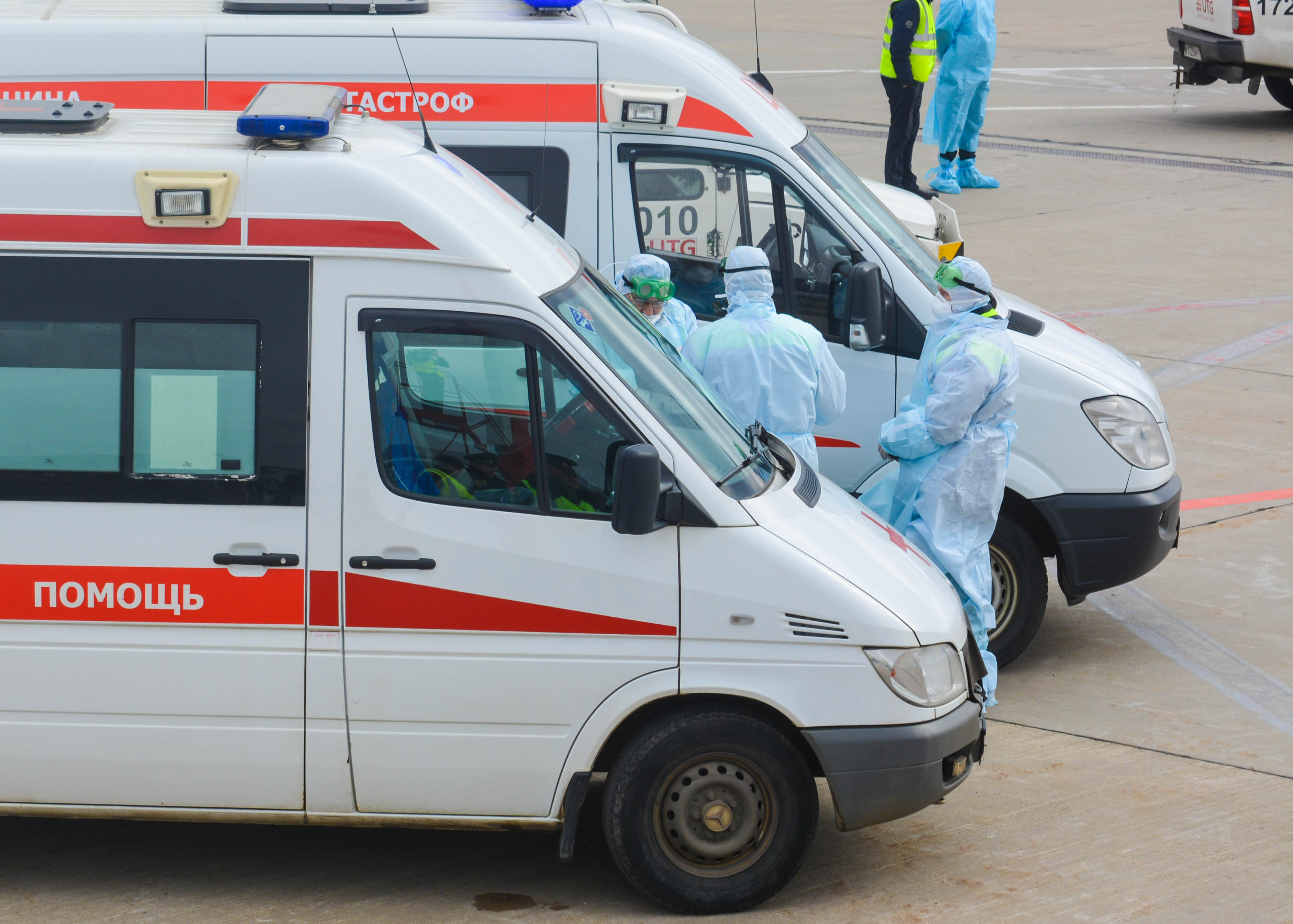К моменту посадки борта на санитарной стоянке уже находились машины скорой неотложной помощи, сотрудники СКП и врачи здравпункта аэровокзального комплекса Внуково, облачённые в защитные костюмы, место стоянки было оцеплено и выставлен пост охраны.