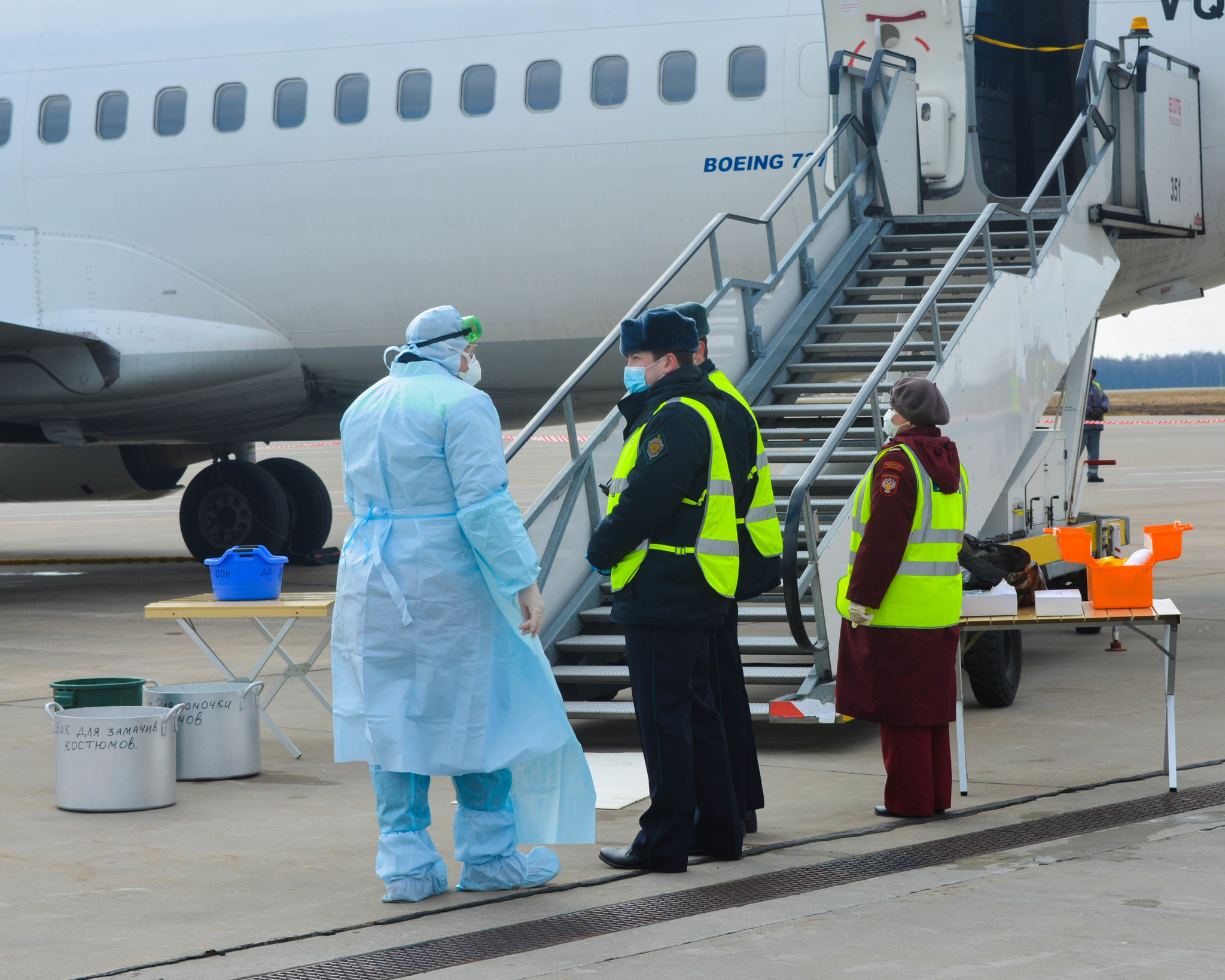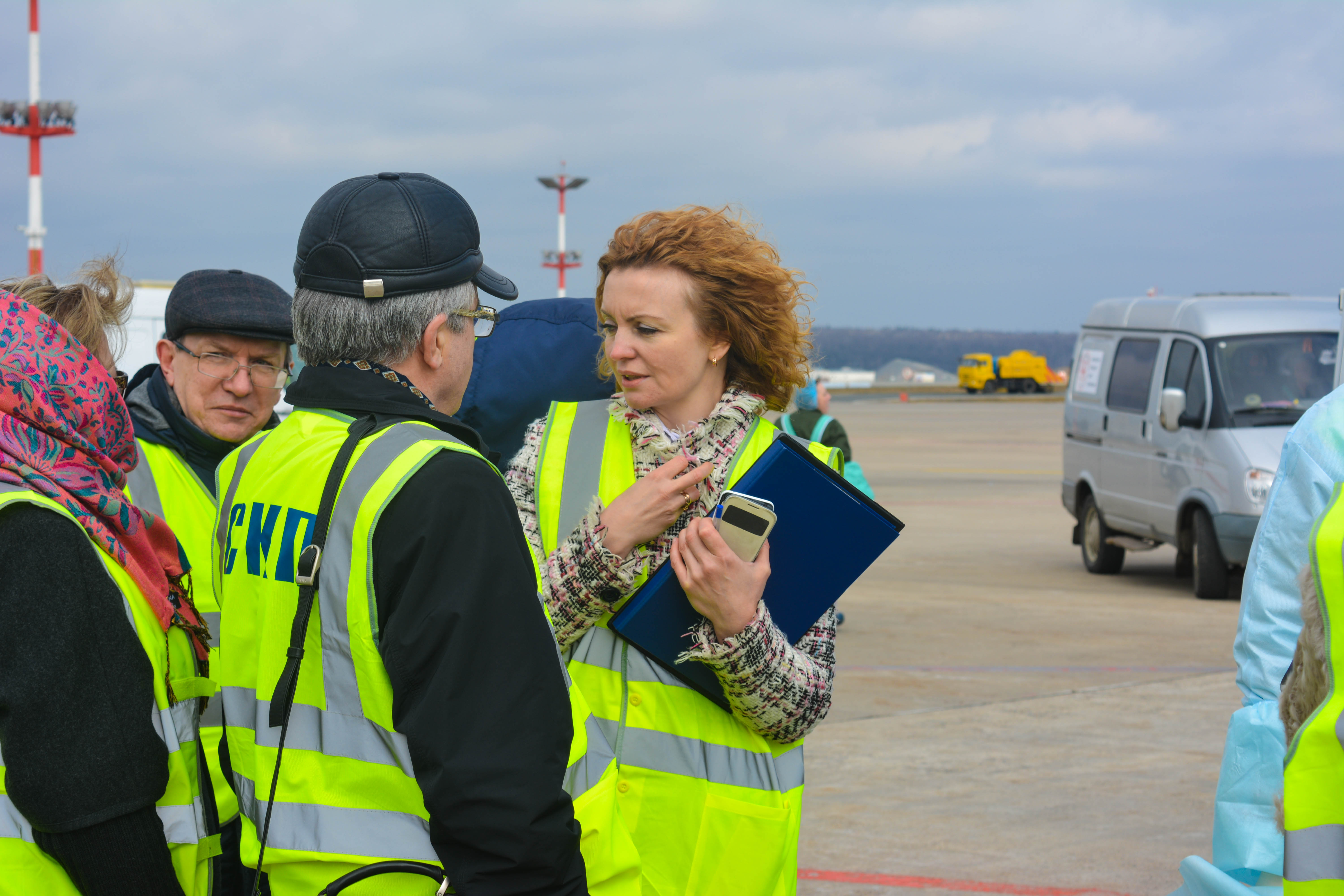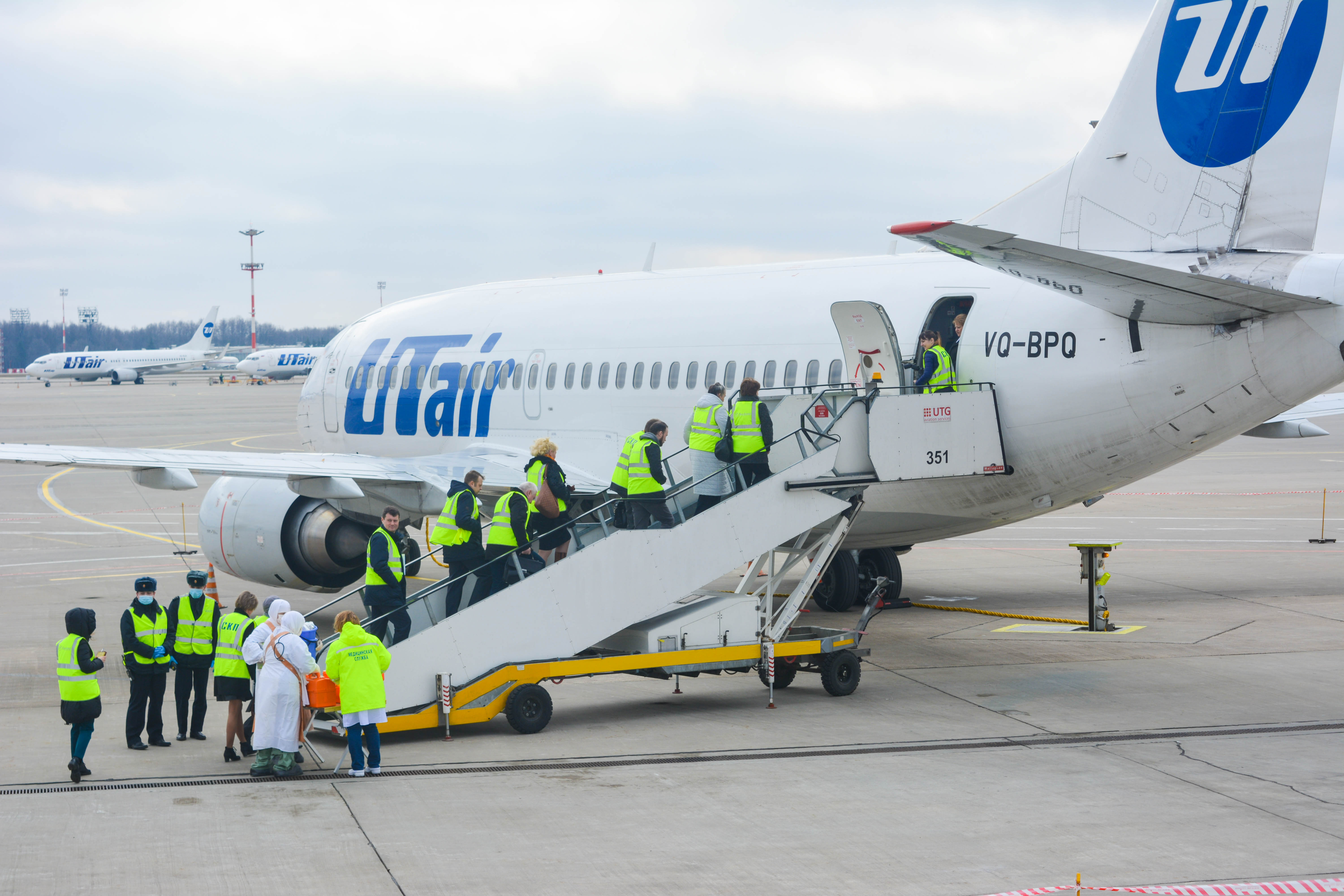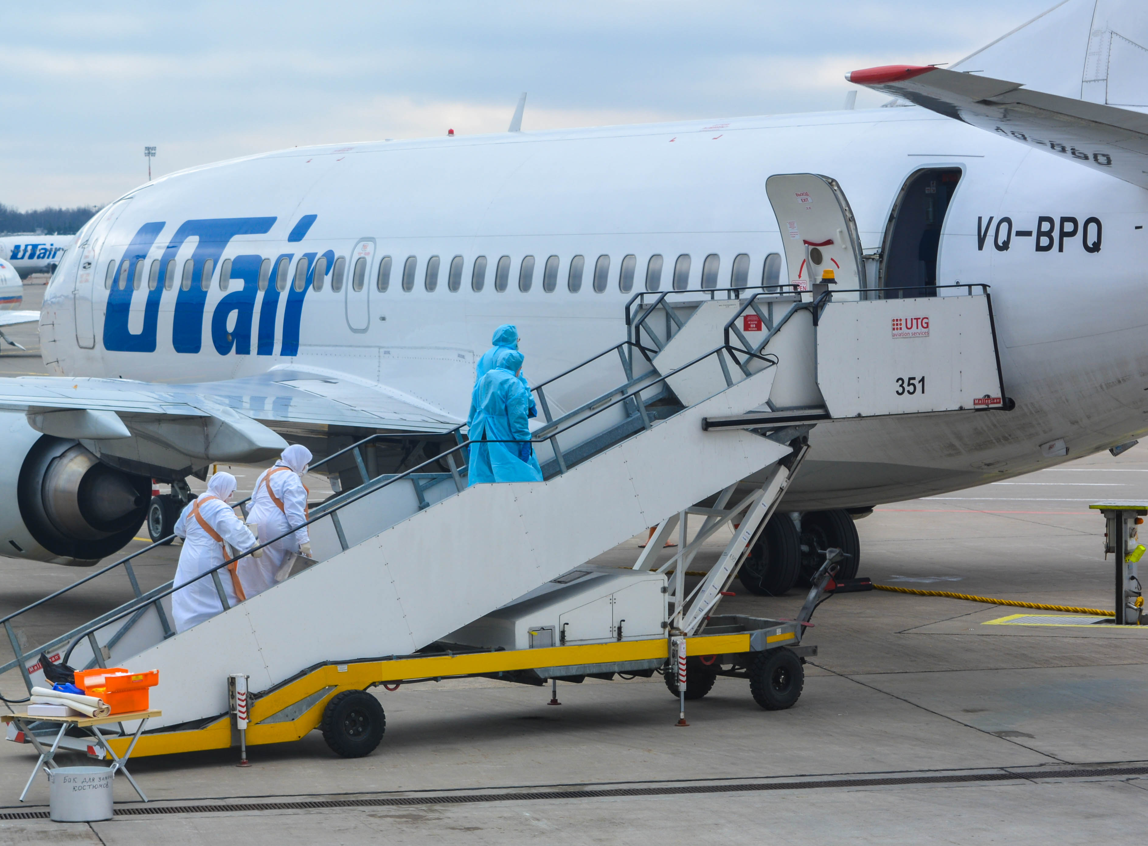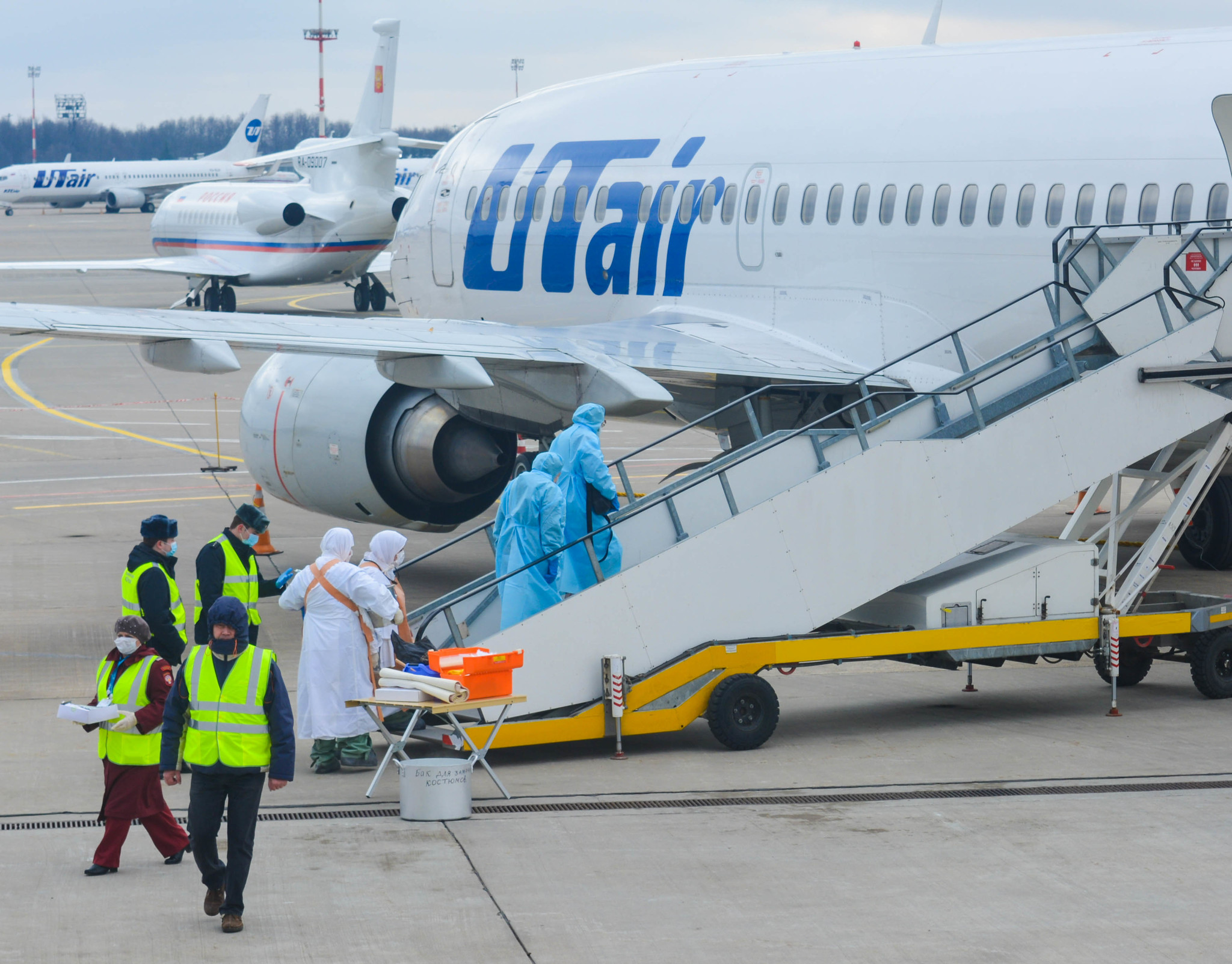 К моменту посадки борта на санитарной стоянке уже находились машины скорой неотложной помощи, сотрудники СКП и врачи здравпункта аэровокзального комплекса Внуково, облачённые в защитные костюмы, место стоянки было оцеплено и выставлен пост охраны.