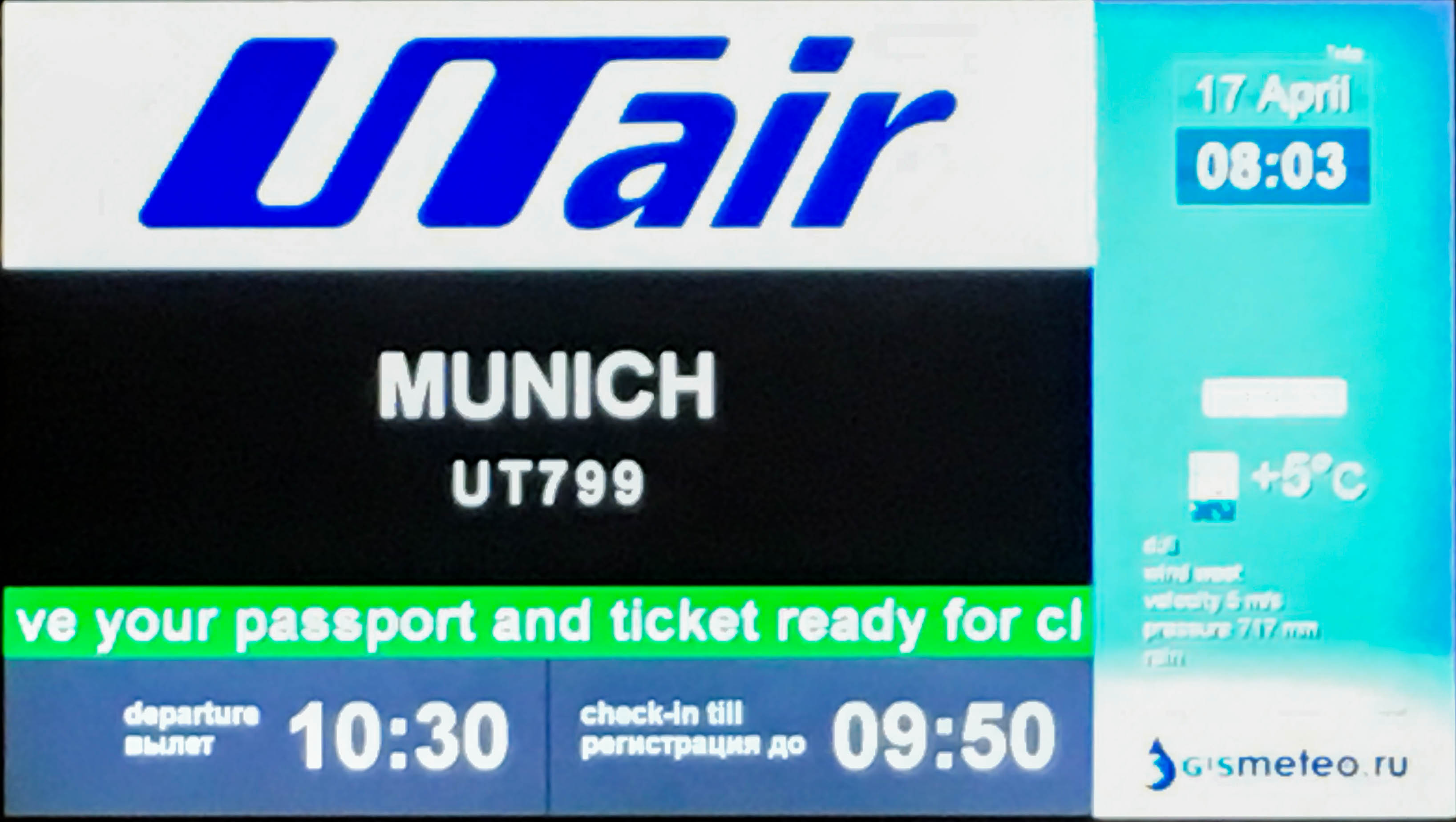 Полеты в столицу Баварии осуществляются на самолетах Boeing 737-500 в ежедневном режиме из московского аэропорта Внуково в 10:30, из Мюнхена – в 13:45. Минимальная стоимость билета в одну сторону составляет 5 675 руб.