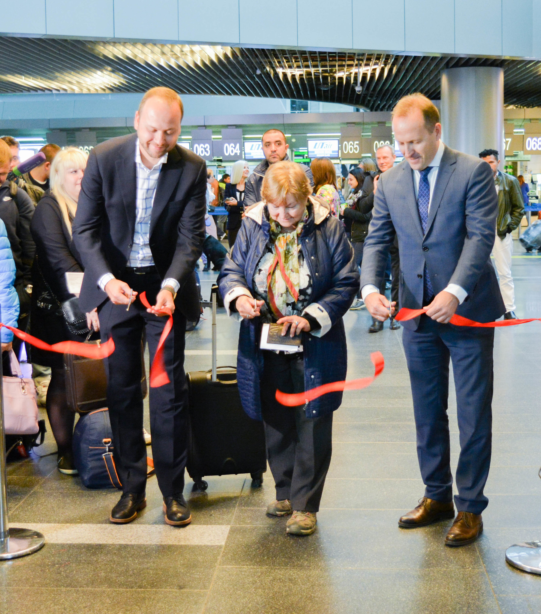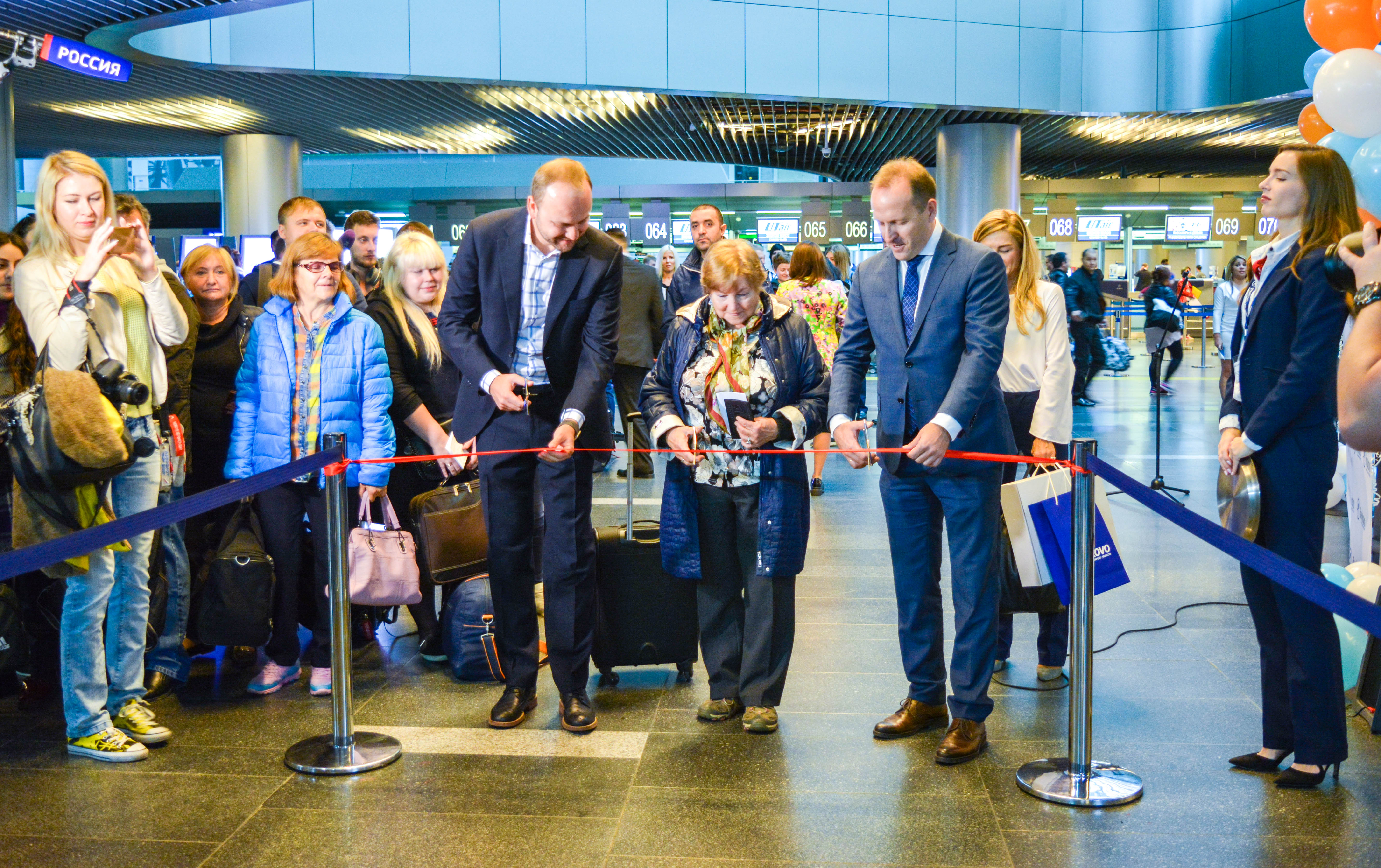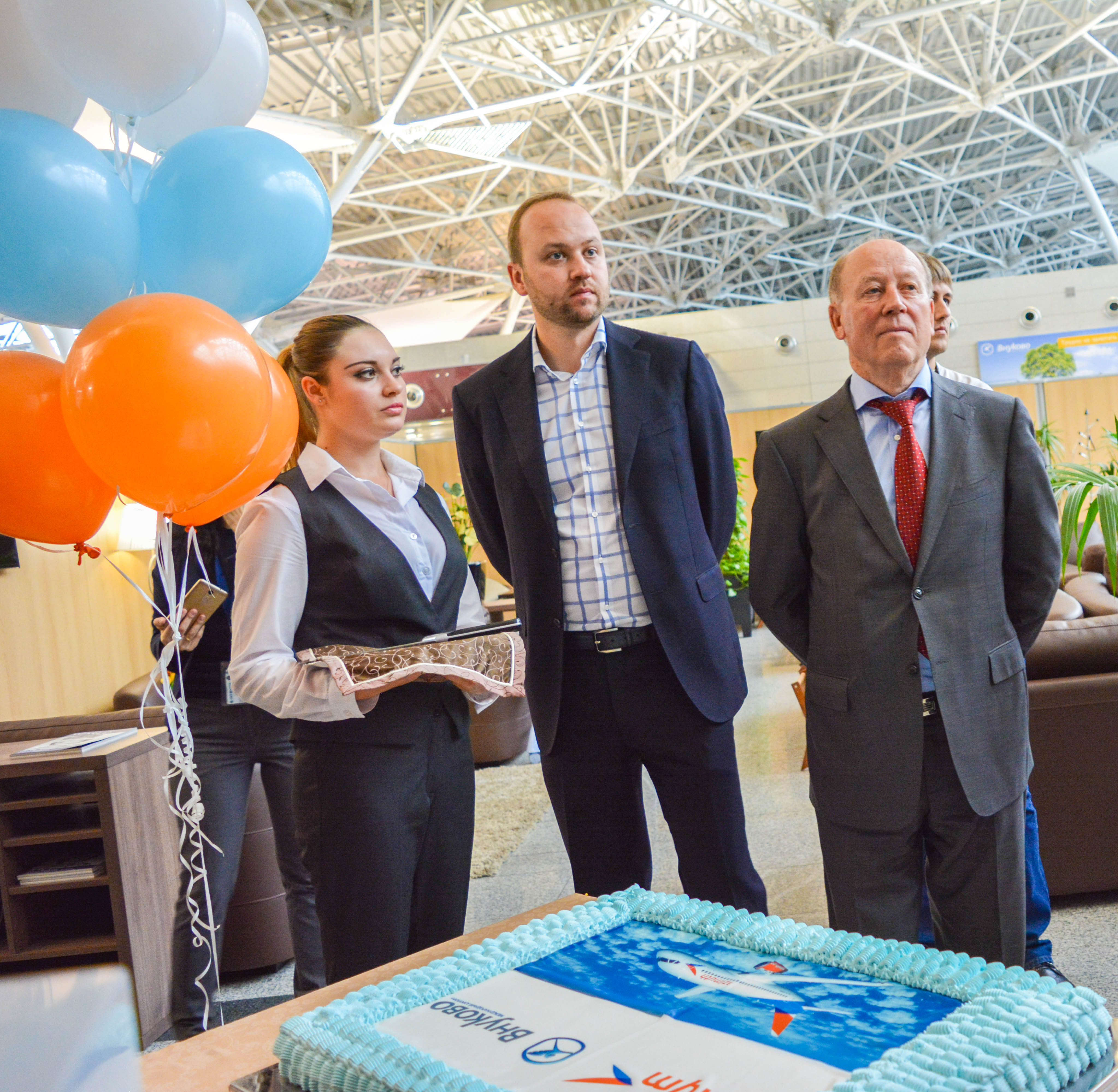 На торжественной церемонии открытия первого рейса Москва — Омск с приветственным словом выступил заместитель генерального директора по коммерции аэропорта Внуково Антон Викторович Кузнецов и директор по развитию авиакомпании «Азимут» Звонарев Дмитрий Евгеньевич. Первым зарегистрированным пассажиром стала Ольга Германовна Печникова — ей были вручены памятные подарки от аэропорта Внуково и авиакомпании «Азимут», после чего вместе с представителями авиакомпании и руководством аэропорта Внуково она перерезала красную ленту.