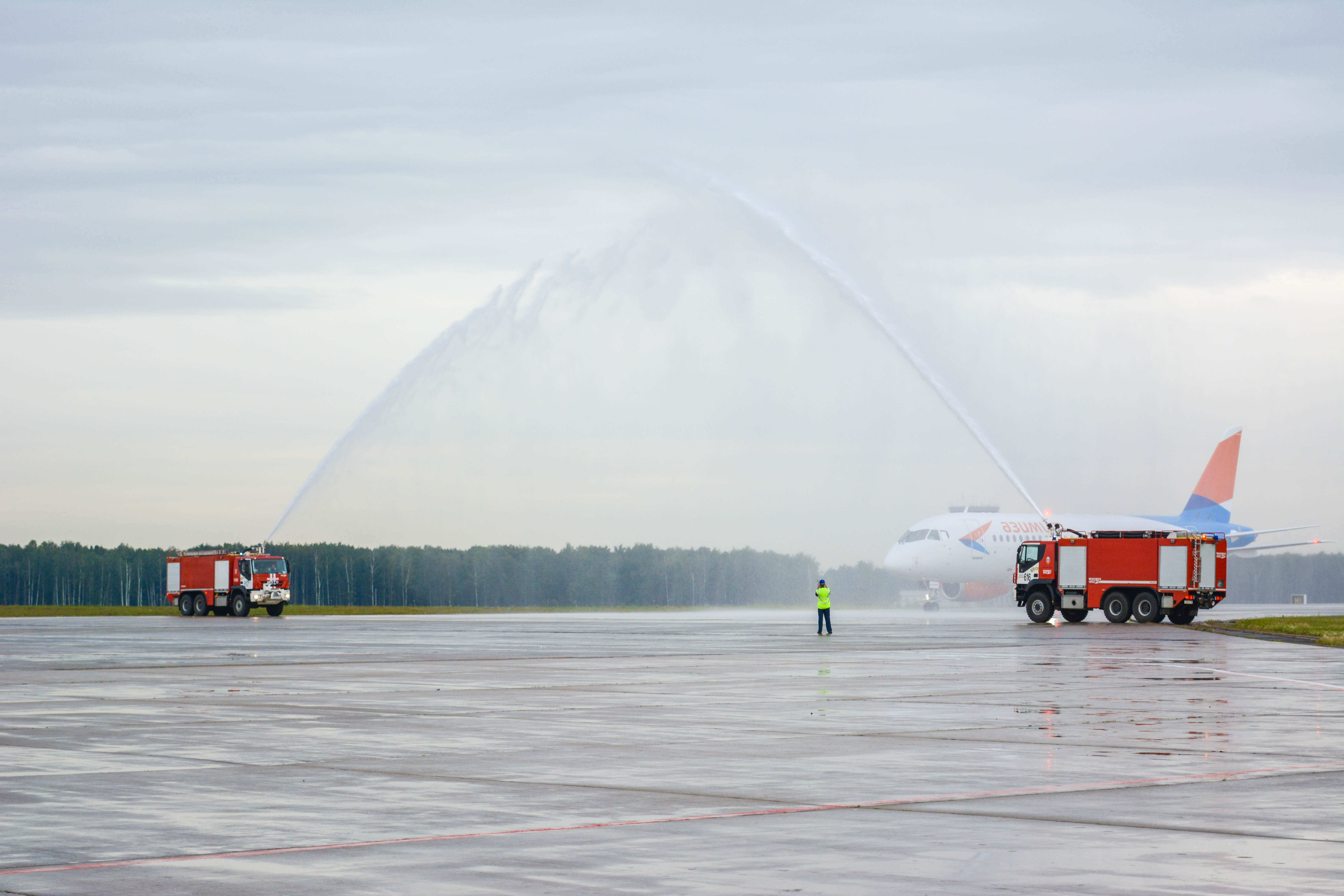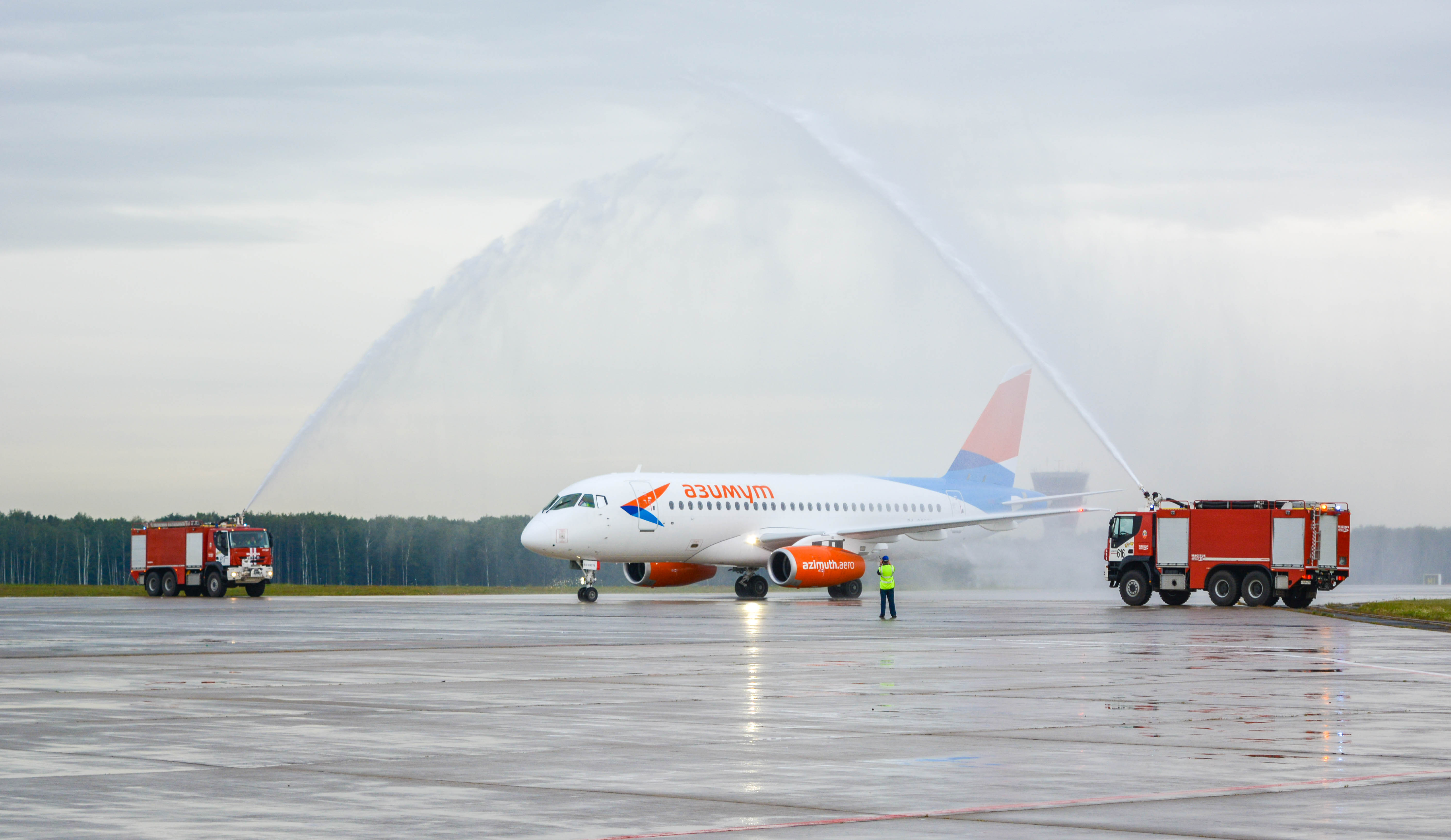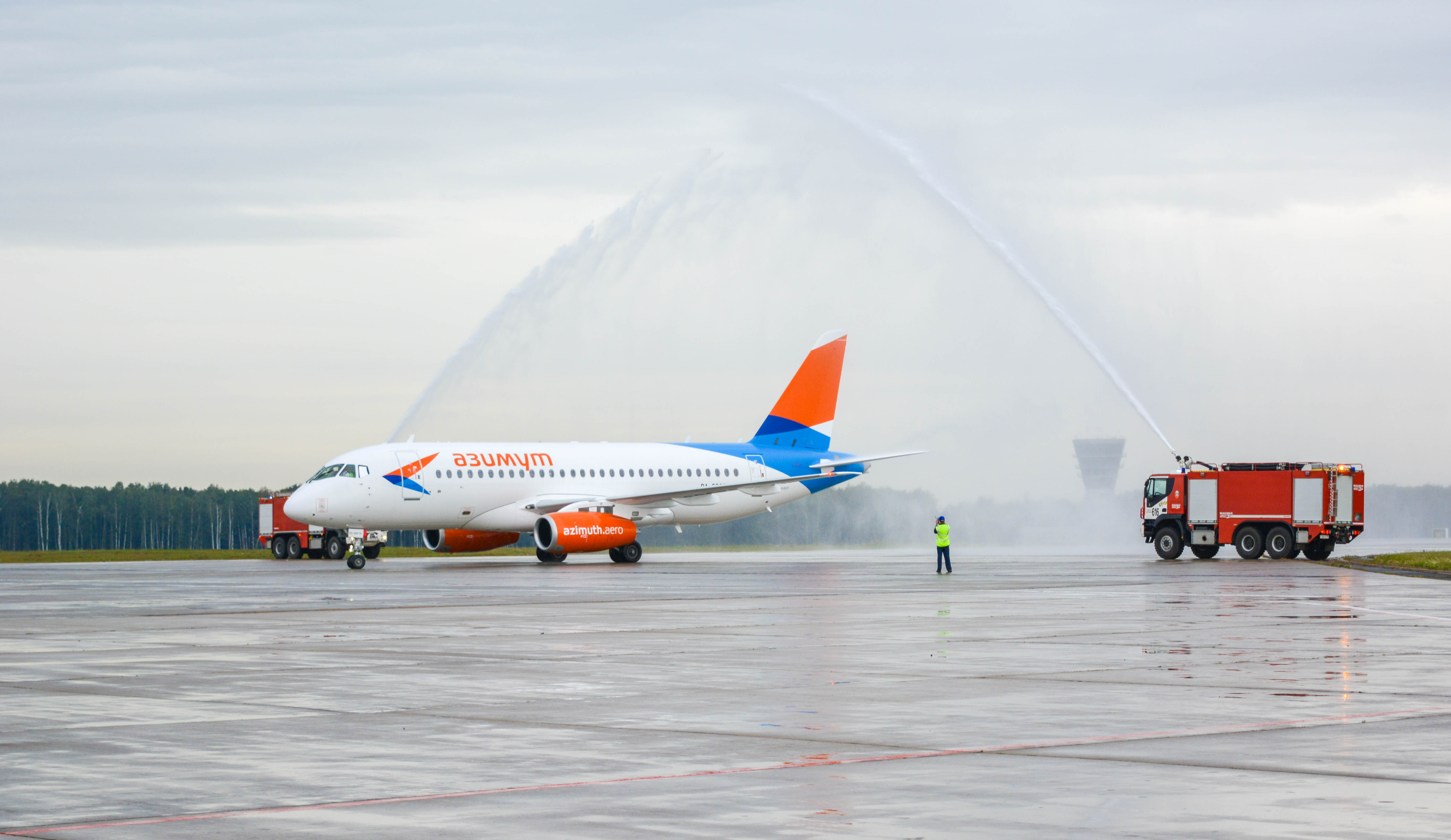 Авиакомпания «Азимут» 21 сентября начала выполнение рейсов из Ростова-на-Дону и Омска в Международный аэропорт Внуково. Первый рейс нового перевозчика встретили традиционной водной аркой приветствия.