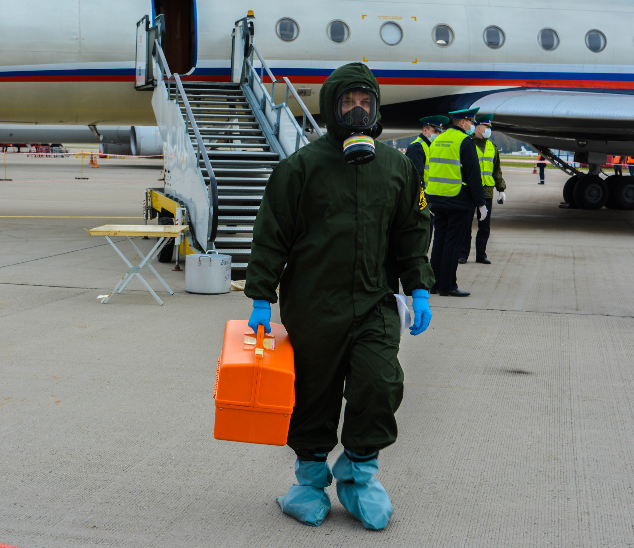 По легенде, больной с подозрением на тяжелый острый респираторный синдром (ТОРС) возвращается из Китая (г. Маоминь) в Москву. За время пути общее состояние больного быстро ухудшилось: поднялась высокая температура, появились озноб, сильный кашель и выраженная одышка. По прибытии самолет был поставлен на санитарную стоянку.