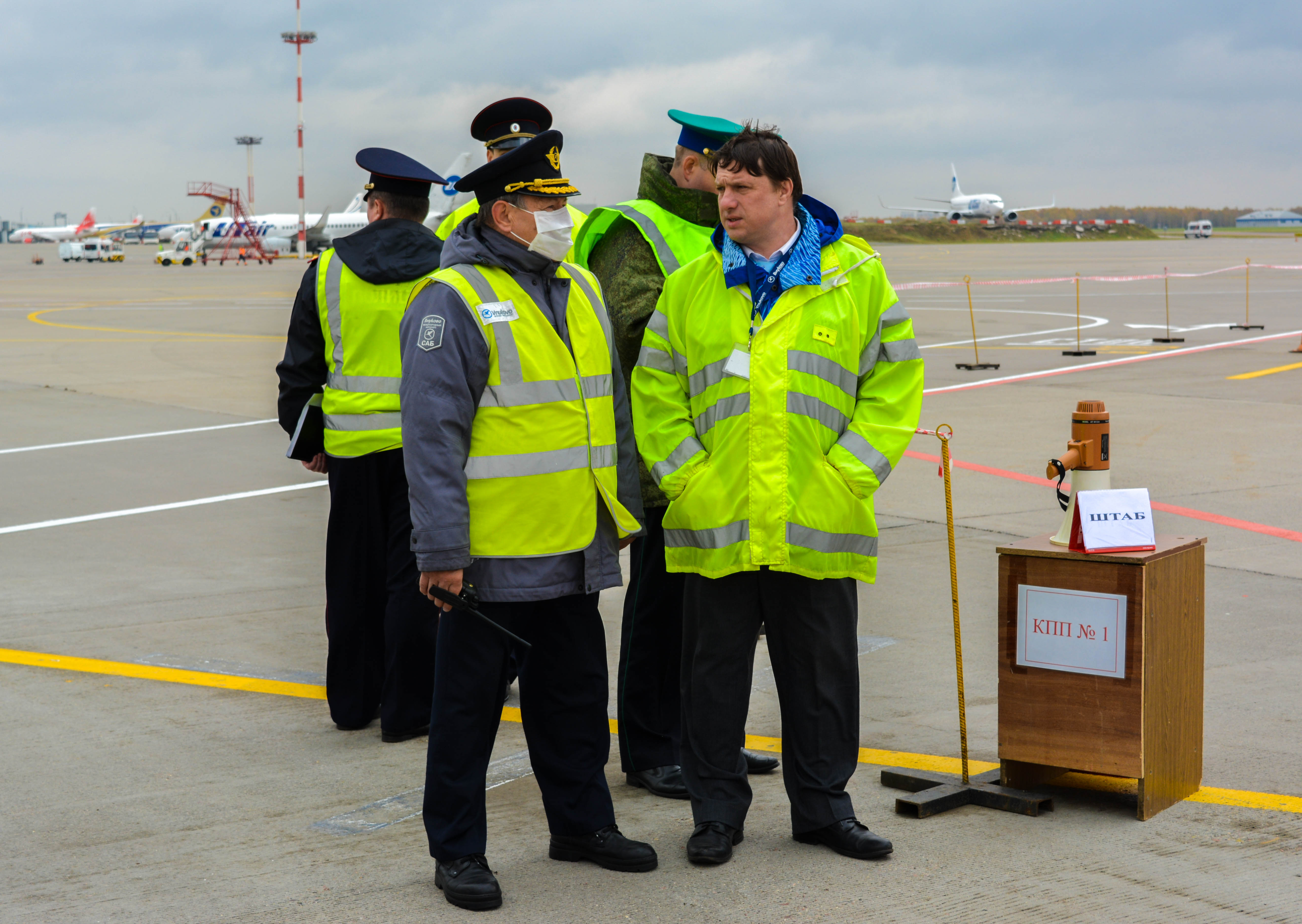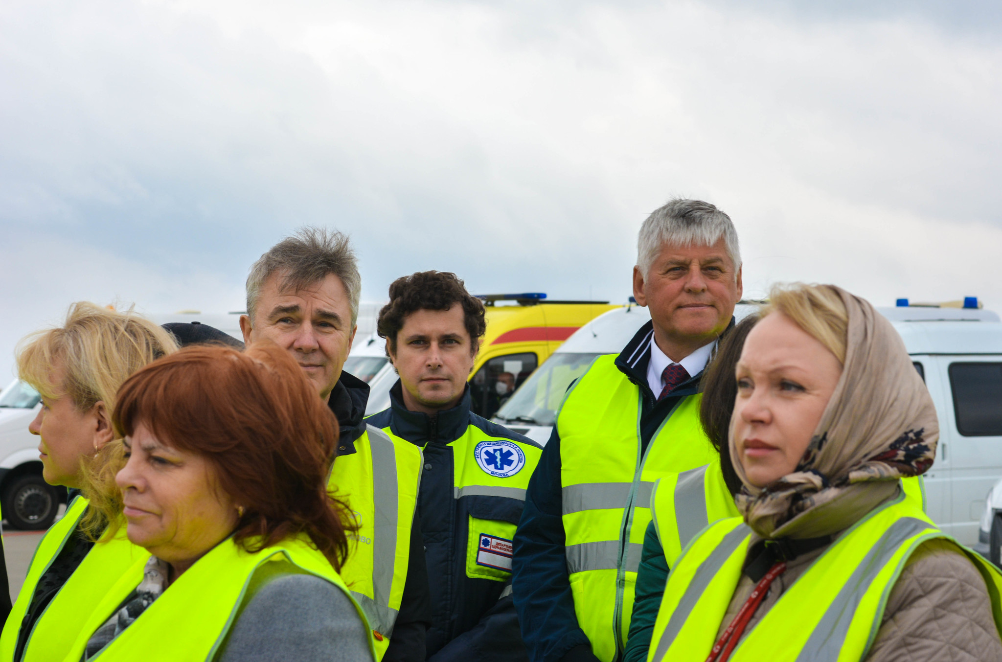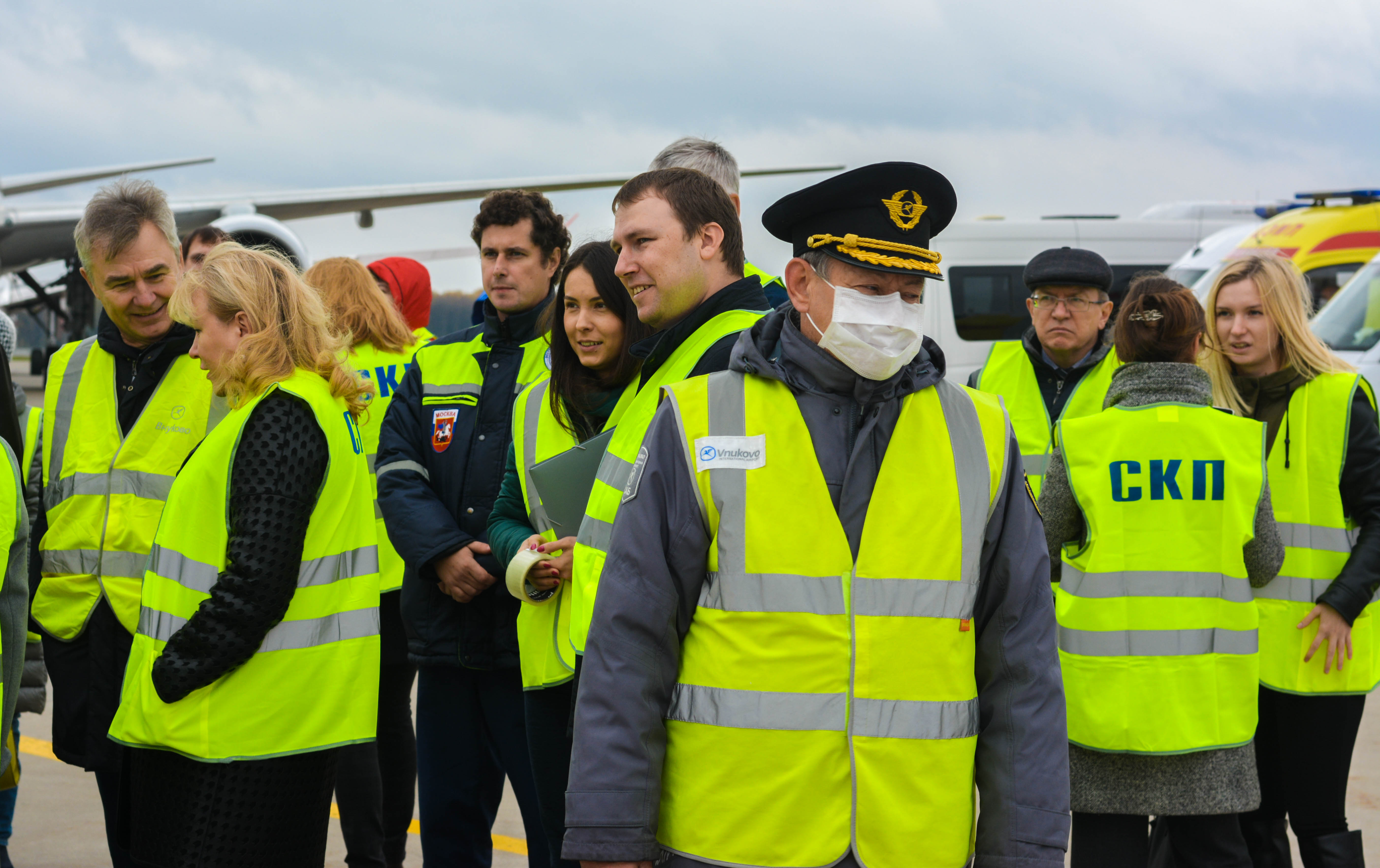 Учебно-тренировочные занятия были проведены с участием причастных служб аэропорта Внуково, Управления Роспотребнадзора по городу Москве, Отряда пограничного контроля ФСБ России в МАП Внуково, Внуковской таможни, Филиала ФБУЗ «Центр гигиены и эпидемиологии в г. Москве» на транспорте во Внуково, ГБУ ССиНМП им. А.С. Пучкова, ГУП МГЦД и ГКУЗ НПЦ ЭМП Департамента здравоохранения Москвы. Воздушное судно было представлено авиакомпанией «Меридиан», автобусы и спецтранспорт – ЗАО «Ю-Ти-Джи».