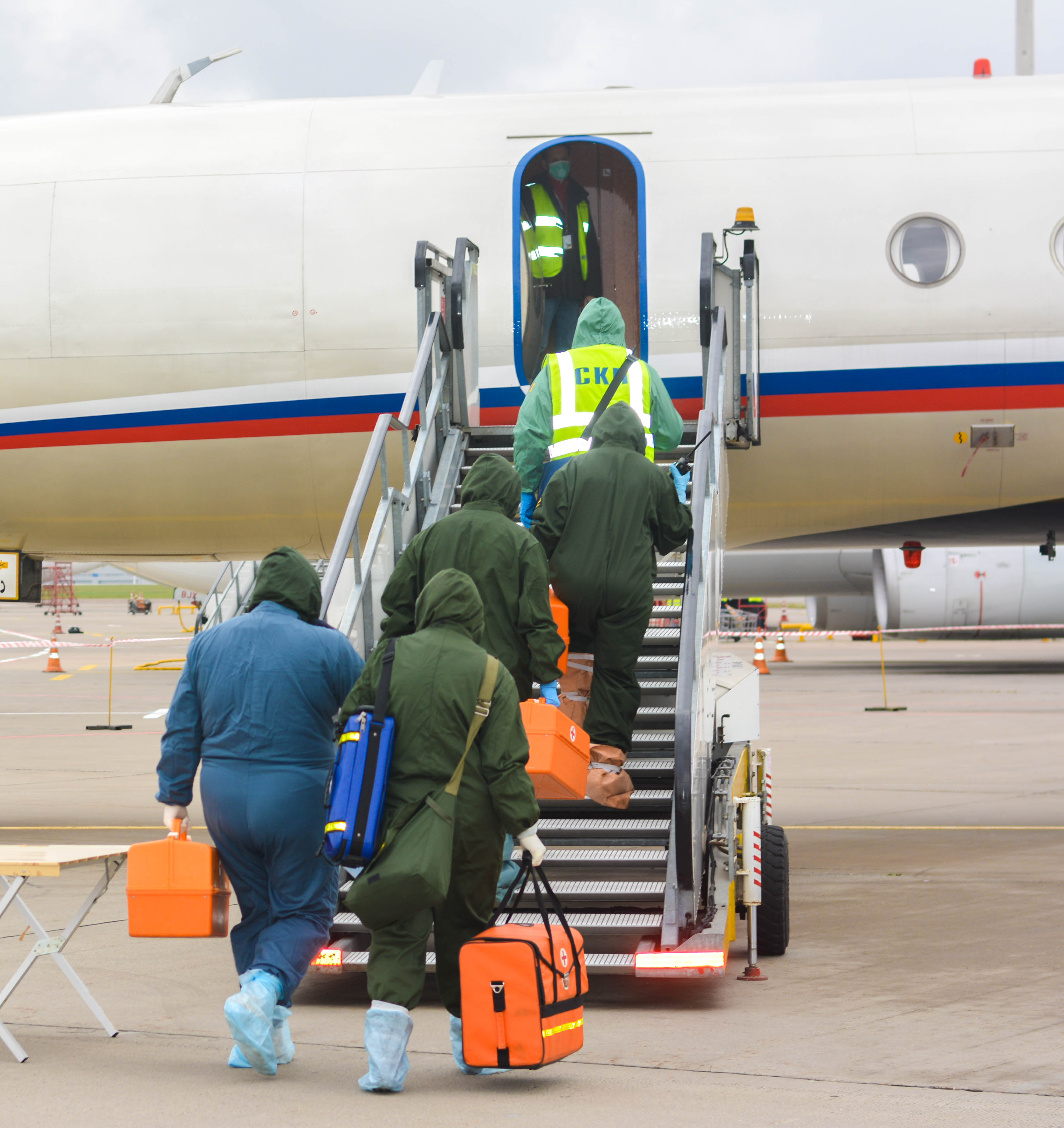 После осмотра больного врачами здравпункта и «Скорой помощи» и установления предварительного диагноза, больного эвакуировали с борта воздушного судна, поместили в защитный бокс и машиной «Скорой помощи» доставили в инфекционную больницу. Контактных лиц на отдельной машине также доставили в госпиталь.